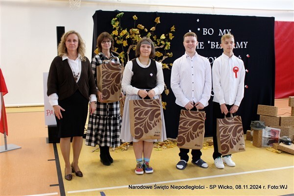 Podczas szkolnych obchodów Narodowego Święta Niepodległości w naszej szkole, 8 listopada 2024, podsumowano literacki konkurs patriotyczny, ogłoszony dla naszych uczniów przez szkolną bibliotekę. W trakcie uroczystego apelu nagrodzono teksty o patriotyzmie czterech uczniów SP Wicko: Błażeja Halasa z kl. VB, Antoniego Drzazgowskiego i Jana Lodzińskiego z kl. VIIB oraz Zuzanny Bikowskiej z kl. VIIIA. Nagrody rzeczowe dla naszych uczniów ufundowało Muzeum II Wojny Światowej w Gdańsku. Gorąco dziękujemy Fundatorom, a uczniom składamy serdeczne gratulacje!