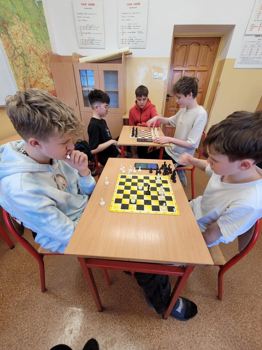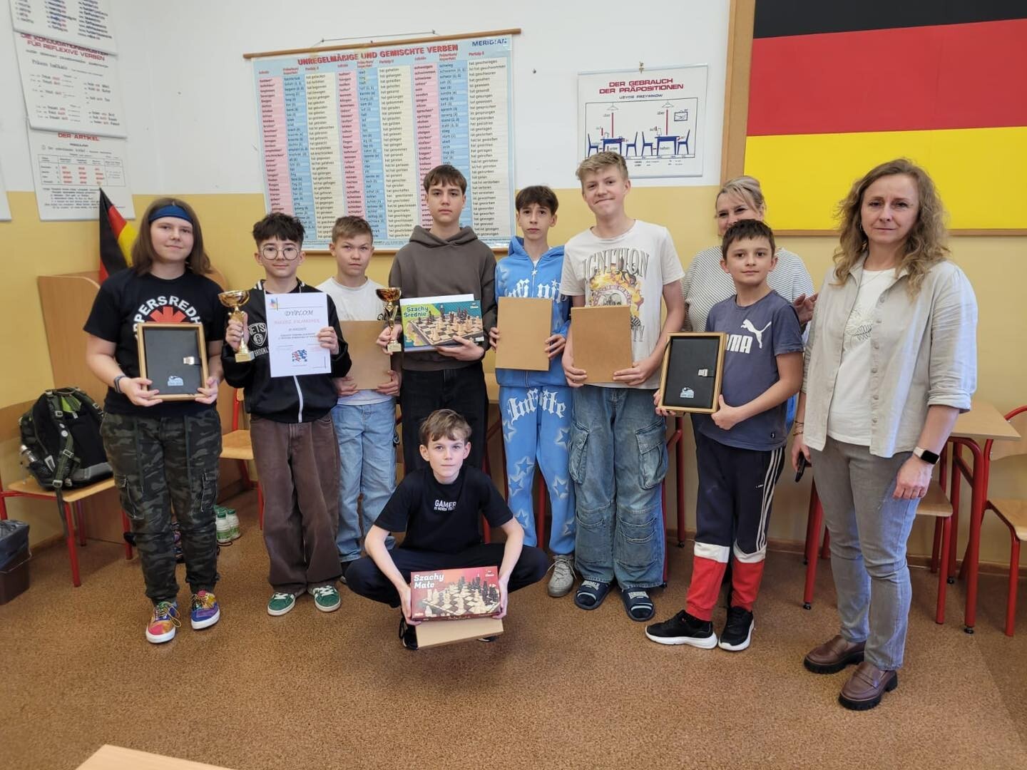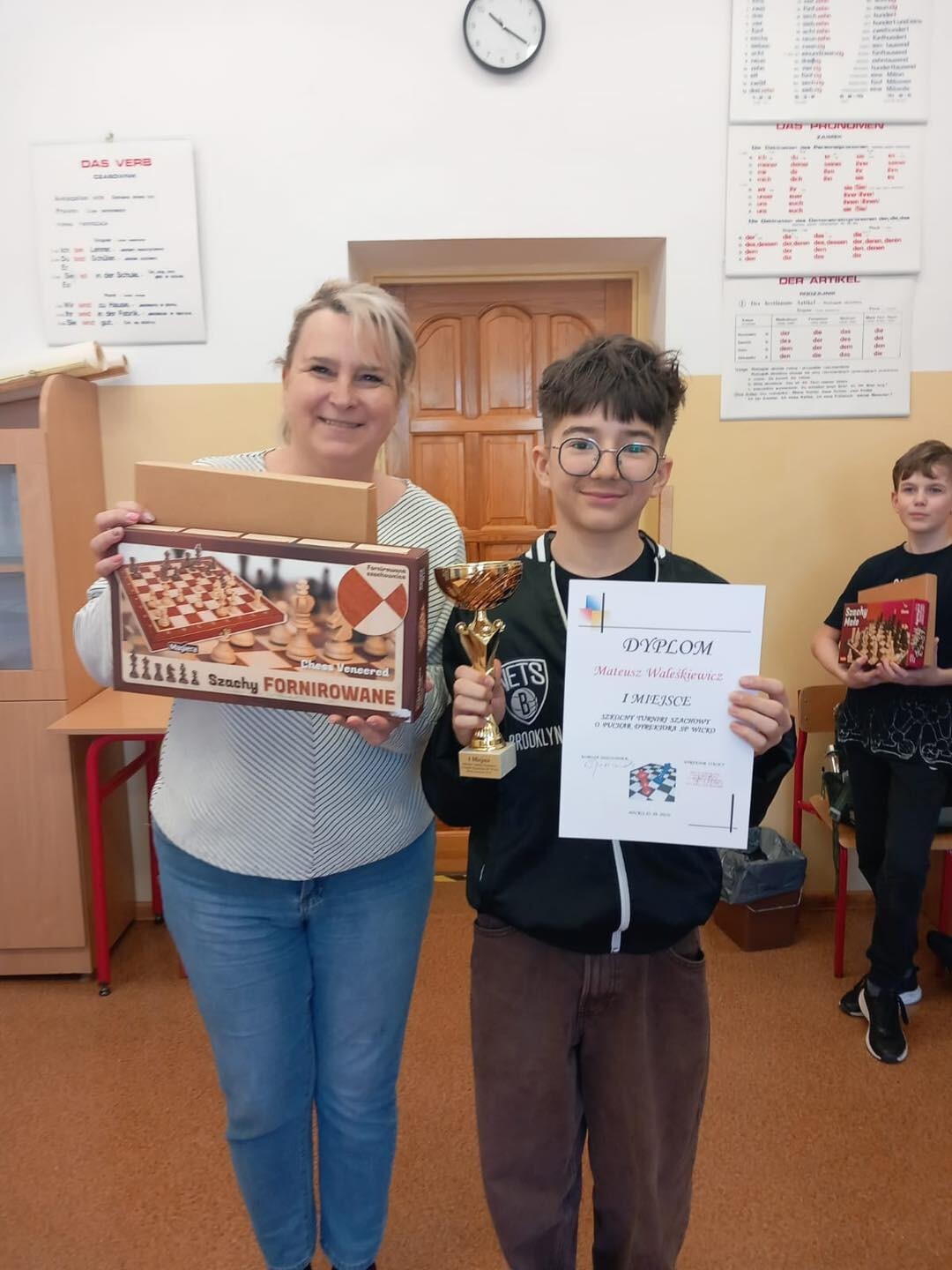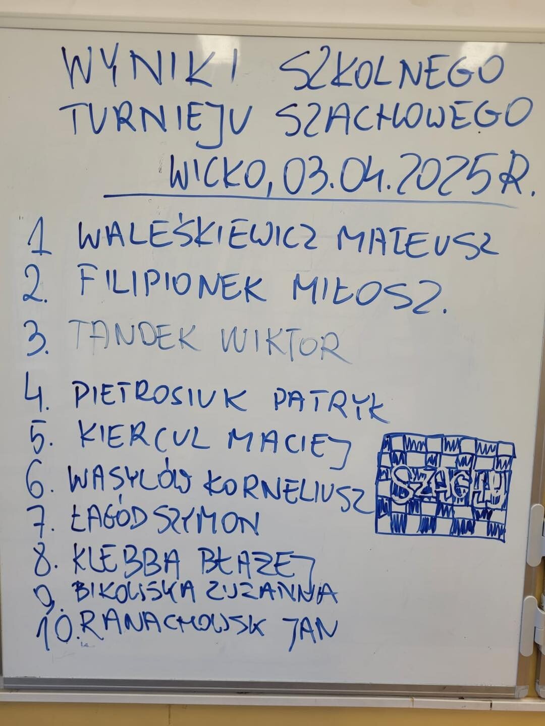 W czwartek, 03.04.2025, w naszej szkole odbył się turniej szachowy o Puchar Dyrektora SP Wicko. W turnieju wzięło udział 9 zawodników i 1 zawodniczka. Zawody zostały bardzo sprawnie przeprowadzone, poszczególne partie były bardzo emocjonujące. Zwycięzcą turnieju został Mateusz Waleśkiewicz, II miejsce zajął Miłosz Filipionek, III miejsce przypadło Wiktorowi Tandkowi, a IV Patrykowi Pietrosiukowi. Wszyscy startujący otrzymali nagrody rzeczowe, a zwycięzcy dodatkowo puchary, dyplomy i piękne drewniane szachy. Zawody odbyły się pod patronatem Dyrekcji SP Wicko oraz Wójta Gminy Wicko.