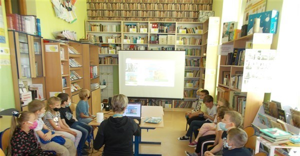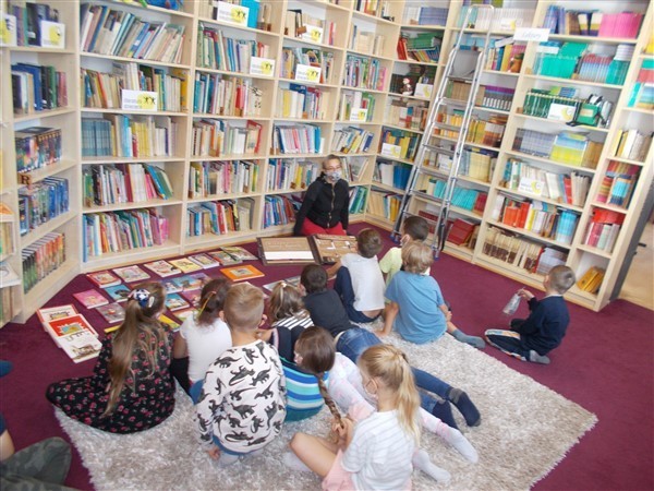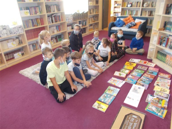 Drugoklasiści Szkoły Podstawowej im. Jana Brzechwy w Wicku odwiedzili swoją szkolną bibliotekę, aby na początku roku szkolnego wziąć udział w zajęciach o psich bohaterach literatury dziecięcej i młodzieżowej.
