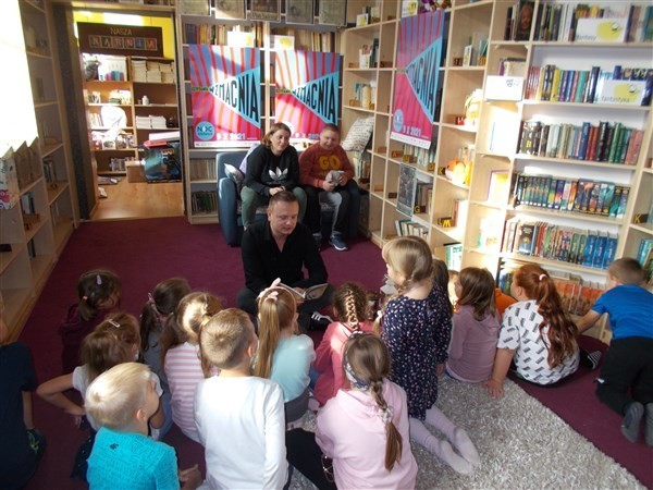 Uczniowie z kl. IB wysłuchały dziś w Bibliotece Szkolnej w Wicku najpiękniejszych wierszy dla dzieci Juliana Tuwima. Nie zabrakło słynnej "Lokomotywy", "Spóźnionego słowika" czy "Rzepki". W rolach lektorów wystąpili: Pan Dyrektor, Michał Sałata wraz z Panią Aleksandrą Brzeźnicką. Na koniec czytelniczego spotkania przy klepsydrze dzieci zapoznały się z niemiecką, włoską oraz angielską wersją Tuwimowych wierszy, a potem wysłuchały portugalskiej recytacji "Lokomotywy". Następne wspólne czytanie przy klepsydrze już niebawem:)