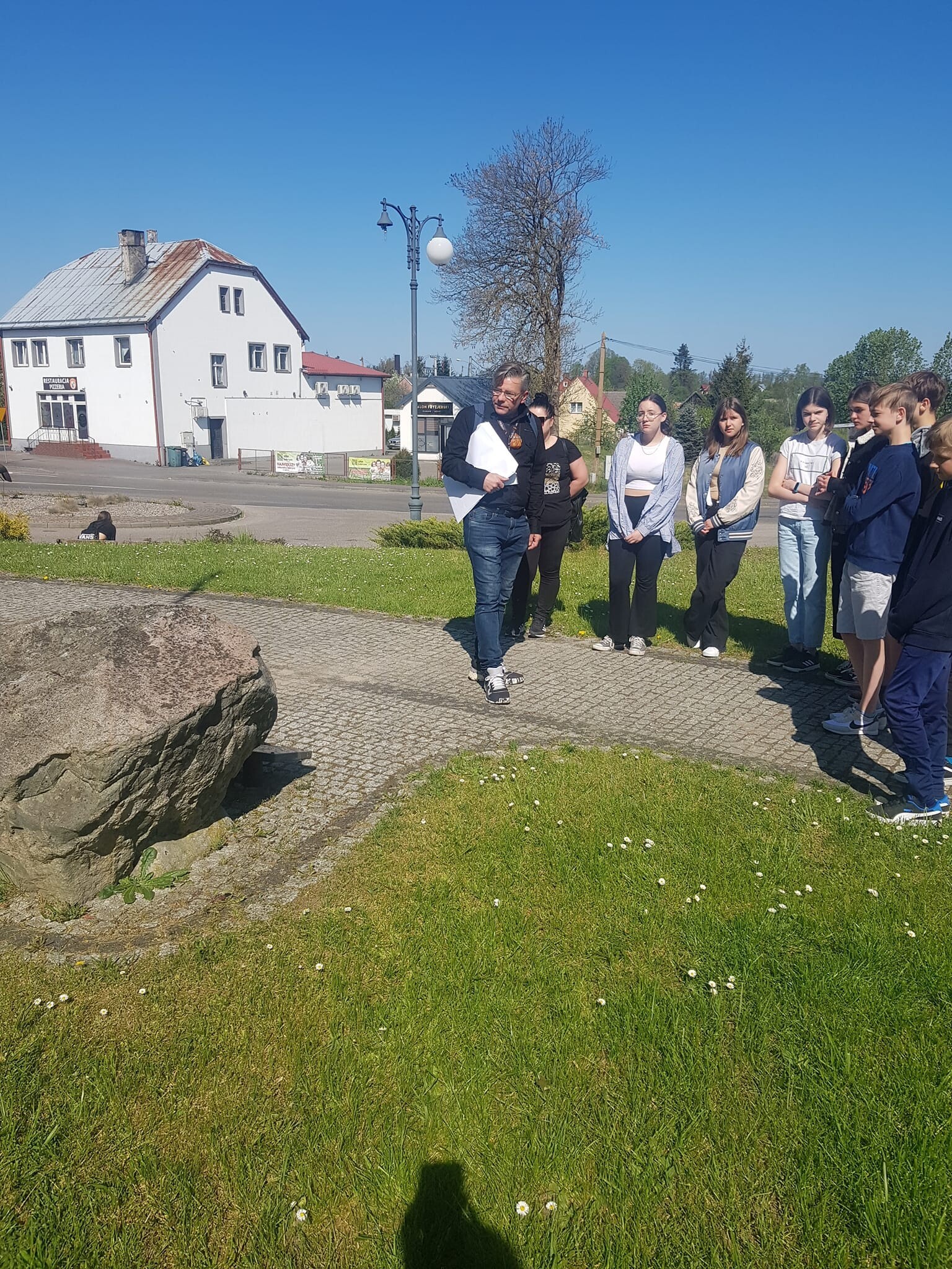 Przewodnik Pan Mariusz Baar oprowadził grupę uczniów z SP Wicko po naszej wiosce i przedstawił rys historyczny miejscowości.