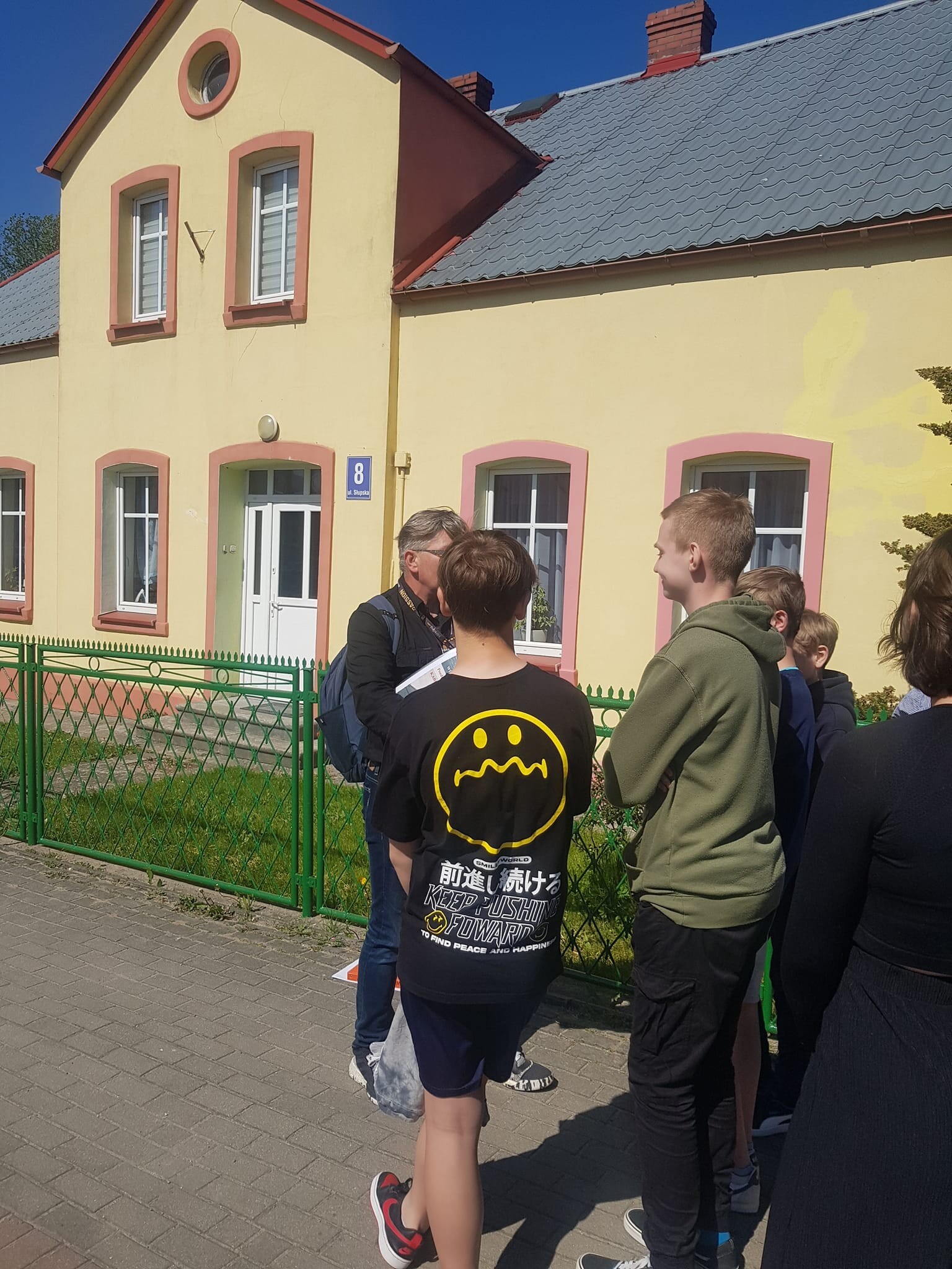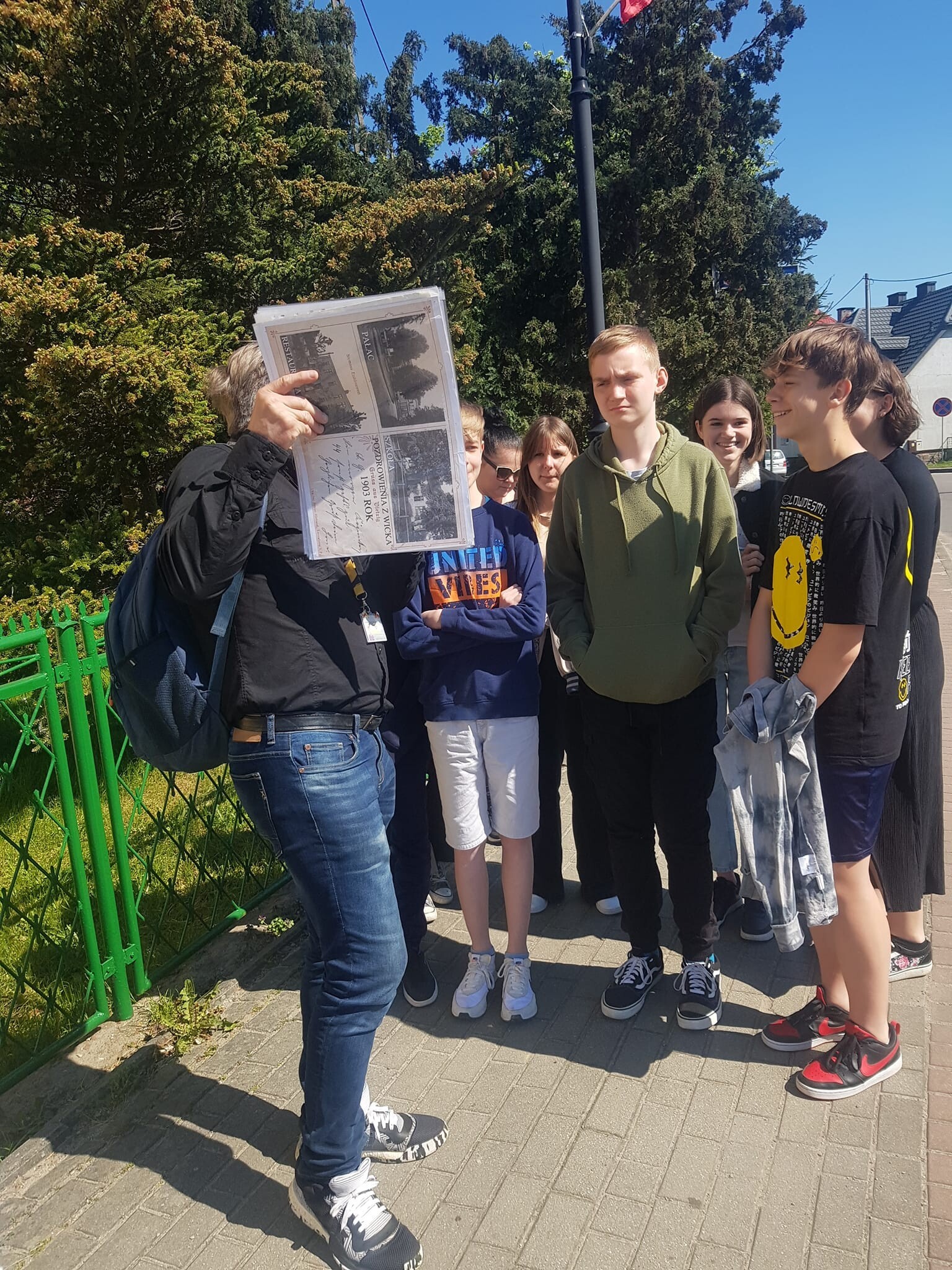 Oczywiście, zaczęliśmy od kamienia granicznego, który obecnie znajduje się przed budynkiem GOKiS-u. Młodzież poznała też historię swojej szkoły, która była pałacem należącym do rodziny Wejherów. Dowiedzieli się, co mieściło się w pomieszczeniach obecnej biblioteki, a także gdzie była mleczarnia, poczta, restauracja, stacja benzynowa i wiele innych ciekawych rzeczy związanych z historią Wicka.