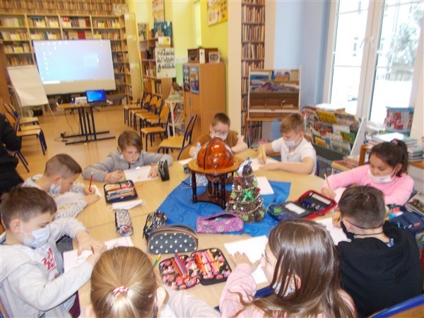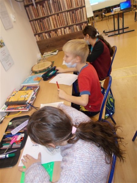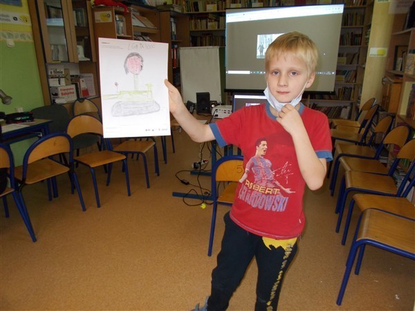 Trzecioklasiści z klasy B SP Wicko podczas zajęć bibliotecznych inspirowanych „Bajkami robotów” - w ramach kończącego się właśnie Roku Stanisława Lema w Polsce - wykazali się wielką pomysłowością w tworzeniu własnych projektów robotów oraz w kreowaniu mieszkańców innych planet.