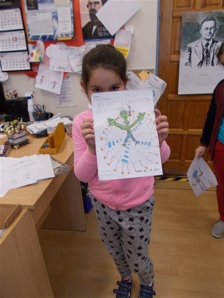 Zainspirowani opowieścią o konstruktorach Klapaucjuszu i Trurlu oraz o maszynie, która tworzyła wszystko na literę n, trzecioklasiści zaczęli wymyślać i rysować własne projekty zautomatyzowanych postaci, które zamieszkały na innych, wymyślonych przez naszych uczniów, planetach. Zainteresowanie wśród dzieci wzbudziła także gra komputerowa upamiętniająca twórczość Stanisława Lema, stworzona przez międzynarodową grupę miłośników książek autora "Cyberiady". Trzecioklasiści nie tylko rysowali projekty robotów oraz innych mieszkańców Kosmosu, opisywali również na forum klasy, z czego zbudowane są wymyślone przez nich machiny i postacie, do czego one służą lub kim są i jakie noszą nazwy. Nie po raz pierwszy udowodnili, że dziecięca wyobraźnia nie zna granic.