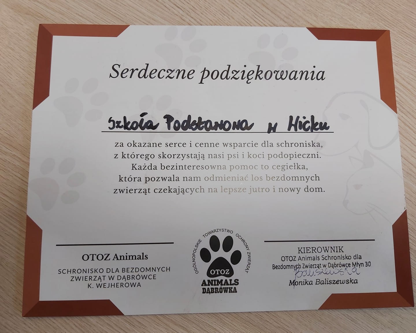 Dziś wspólnie z samorządem uczniowskim odwiedziliśmy schronisko OTOZ "Animals" - Schronisko w Dąbrówce koło Wejherowa. Przekazaliśmy około 105 kilogramów dobrej jakości karmy mokrej i suchej dla psów i kotów oraz wiele koców i kołder.