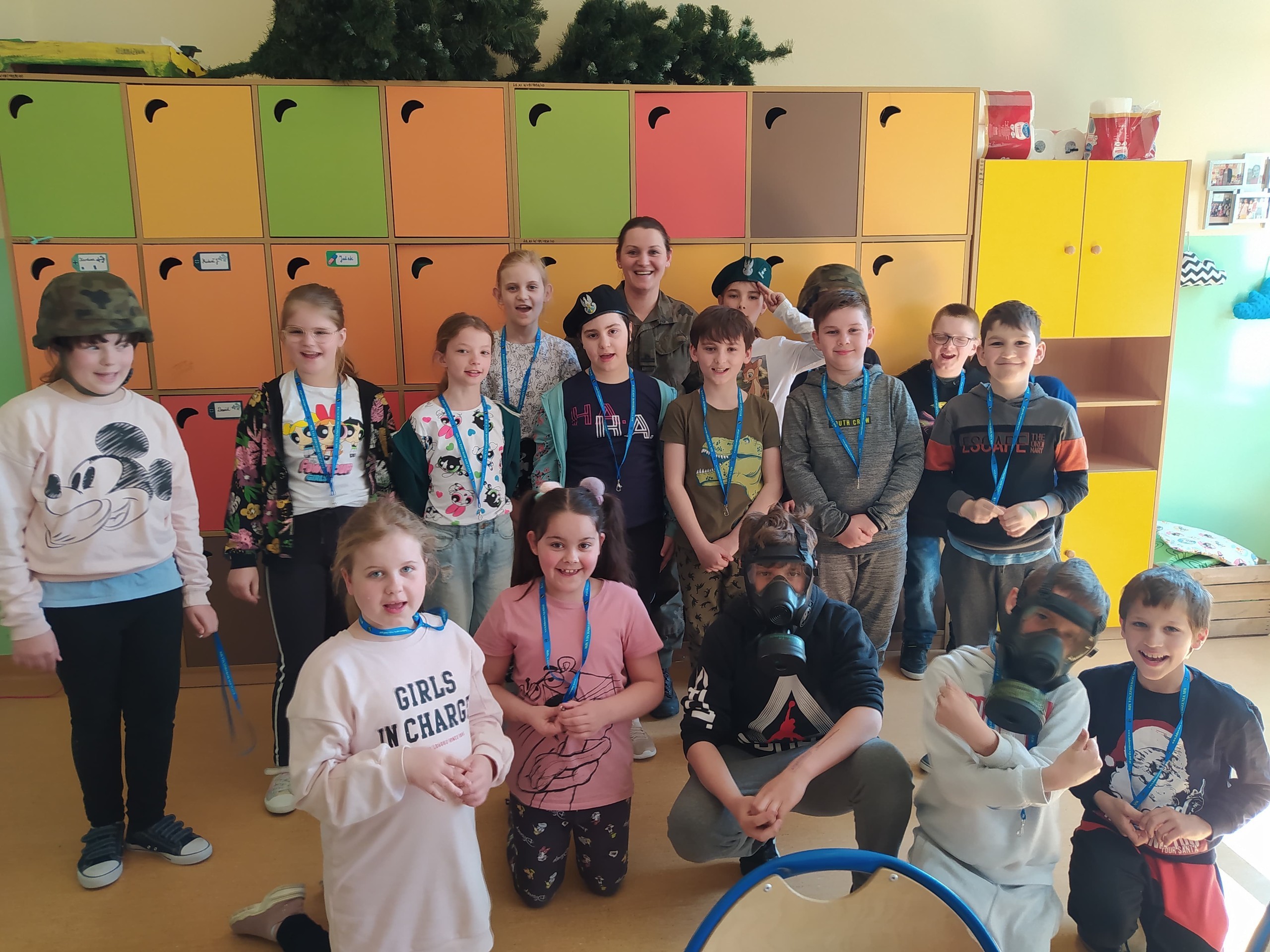 Uczniowie klasy IIIb omawiali dziś książkę Joanny Papuzińskiej "Asiunia", której akcja dzieje się w czasie II wojny światowej i opowiada o losach oraz przeżyciach małej dziewczynki w czasie wojny. Ten bardzo aktualny temat po wykonaniu wszystkich zadań został podsumowany wizytą Pani Anny Miszk-Krzyżanowskiej - mamy jednej z naszych uczennic, która jest żołnierzem zawodowym i podzieliła się z nami swoją wiedzą, doświadczeniem oraz przyniosła kilka wojskowych gadżetów. Bardzo serdecznie dziękujemy Pani Ani za poświęcony nam czas!