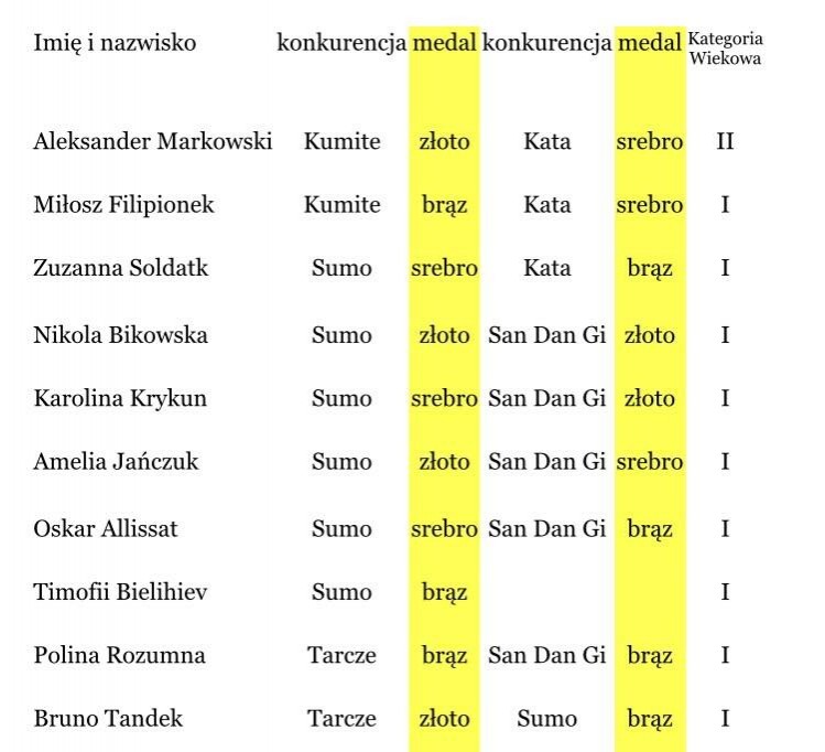 Nasz klub reprezentowało dziesięcioro zawodników, a wśród nich uczniowie Szkoły Podstawowej im. Jana Brzechwy w Wicku. Niestety, pozostałych unieruchomiła grypa. Łącznie zdobyliśmy 19 medali: 6 złotych, 6 srebrnych i 7 brązowych.