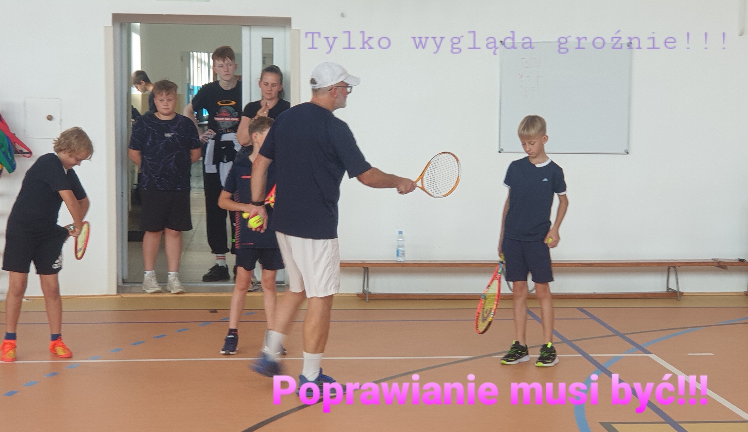 W poniedziałek, 16 października 2023, czwartoklasiści SP Wicko, wzięli udział w pokazowych zajęciach sportowych w naszej dużej sali gimnastycznej, promujących tenis ziemny w naszej szkole. Instruktorami prowadzącymi zajęcia tenisowe dla naszych uczniów, byli Pan Piotr Ernest oraz Pani Monika Formela - niedawni uczestnicy tenisowego turnieju wielobranżowego w Warszawie. Zajęcia tenisowe w Wicku odbyły się z wykorzystaniem sprzętu sportowego pozyskanego w ramach akcji "Dzieciaki do rakiet". Fotorelacja nie kłamie - zarówno duzi, jak i mali uczestnicy poniedziałkowych zajęć czerpali dużą frajdę podczas tenisowej zabawy. Przy okazji warto dodać, że zdjęcia oraz nagrania z treningu wykonali uczniowie klasy ósmej w ramach "Laboratoriów przyszłości".