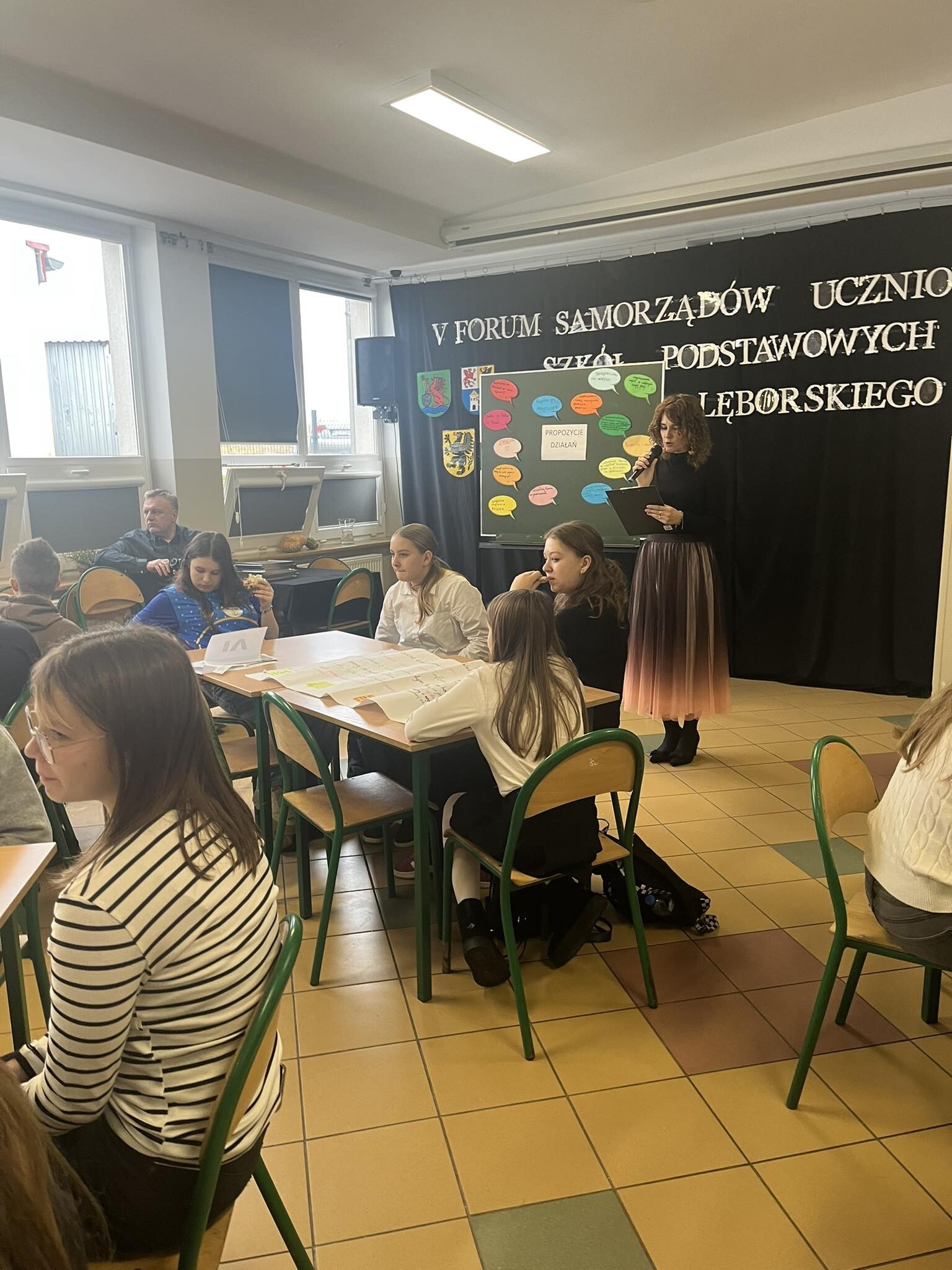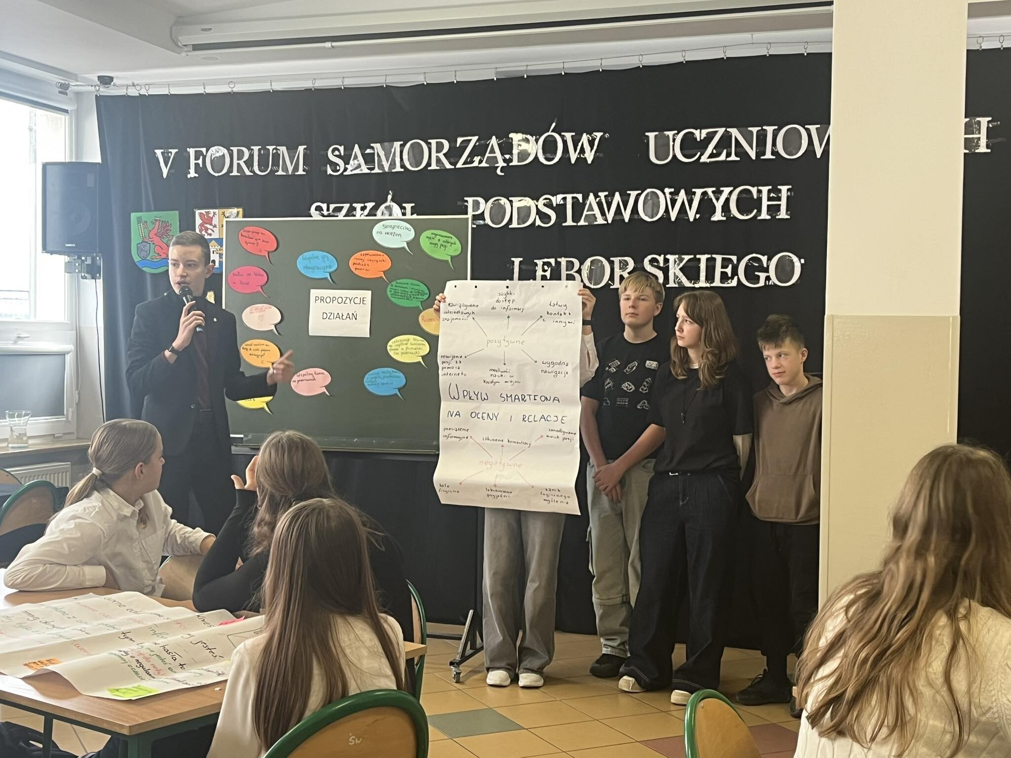 Spotkanie rozpoczęło się od prezentacji szkół, podczas których uczniowie przedstawiali działania i inicjatywy podejmowane w ramach pracy swoich samorządów.