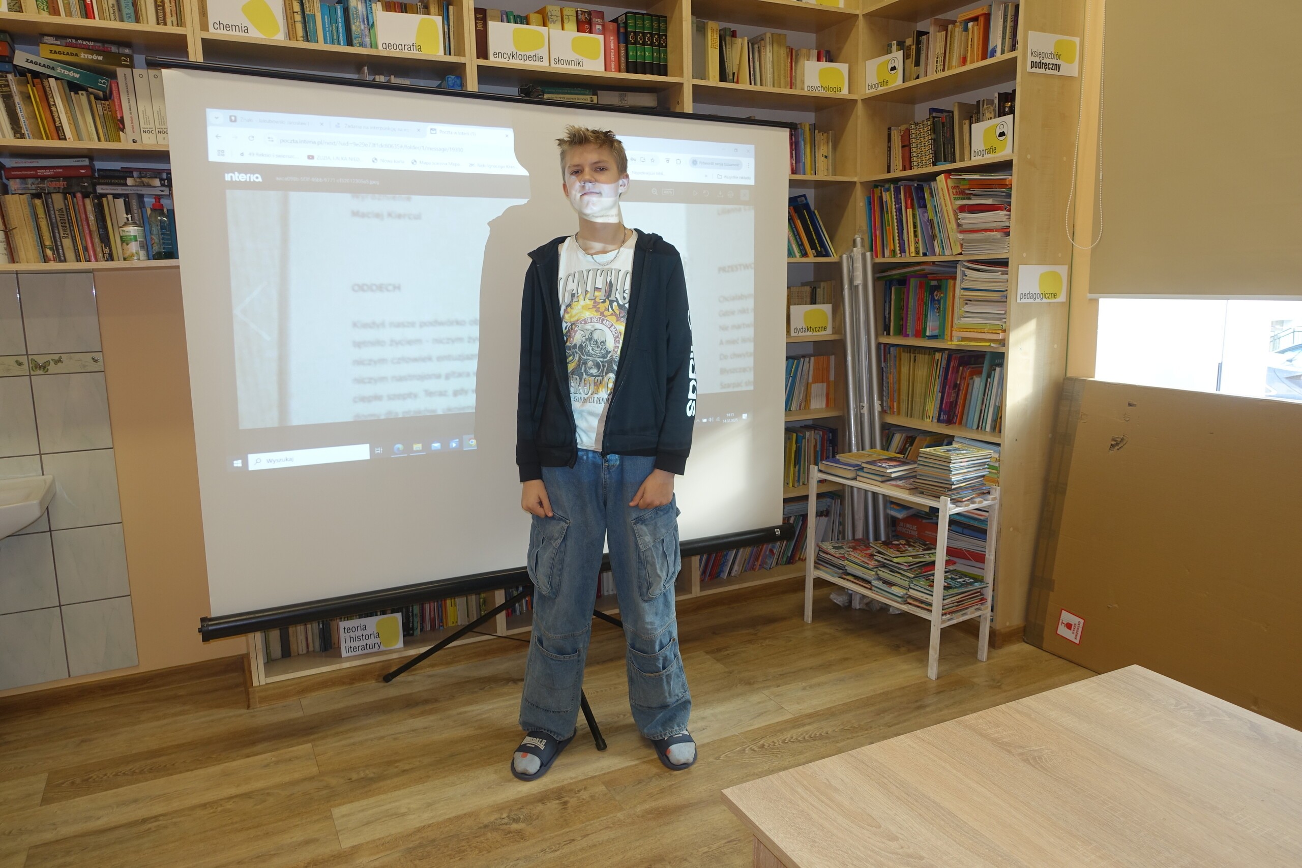 Z radością pragniemy poinformować, że nasi ósmoklasiści zaangażowani w zajęcia projektowe z języka polskiego zostali docenieni podczas tegorocznej edycji konkursu poetyckiego "Szeptem", zorganizowanego przez Bibliotekę Miejską w Lęborku. Wiersze powstałe w ramach zajęć projektowych zostały przesłane na lęborski konkurs. Liliana Czech za wiersz "Przestworza" otrzymała nagrodę za udział w konkursie, a Maciek Kiercul otrzymał wyróżnienie za wiersz pt. "Oddech". Oba teksty naszych uczniów doczekały się również druku w tamtejszym periodyku bibliotecznym.