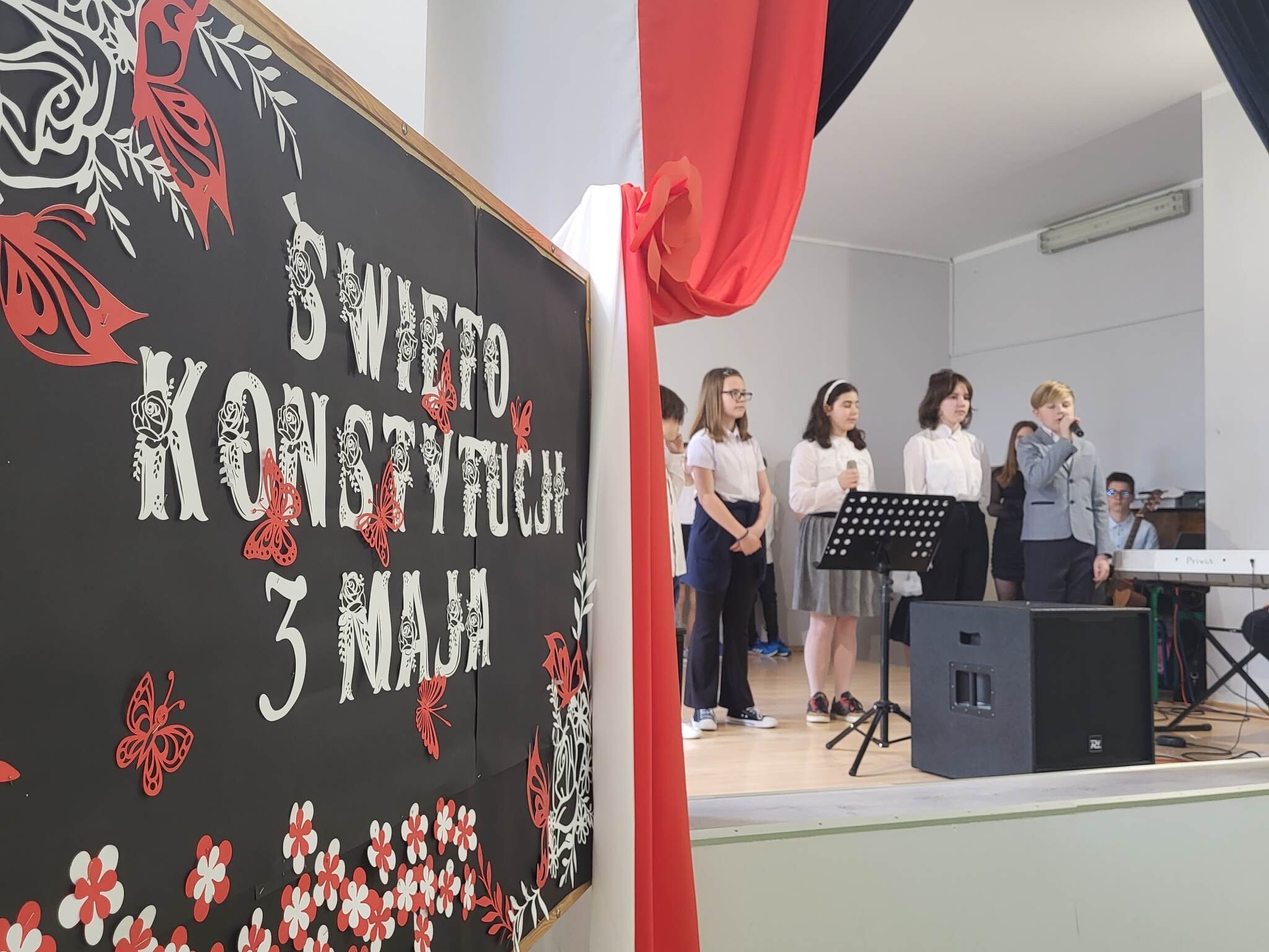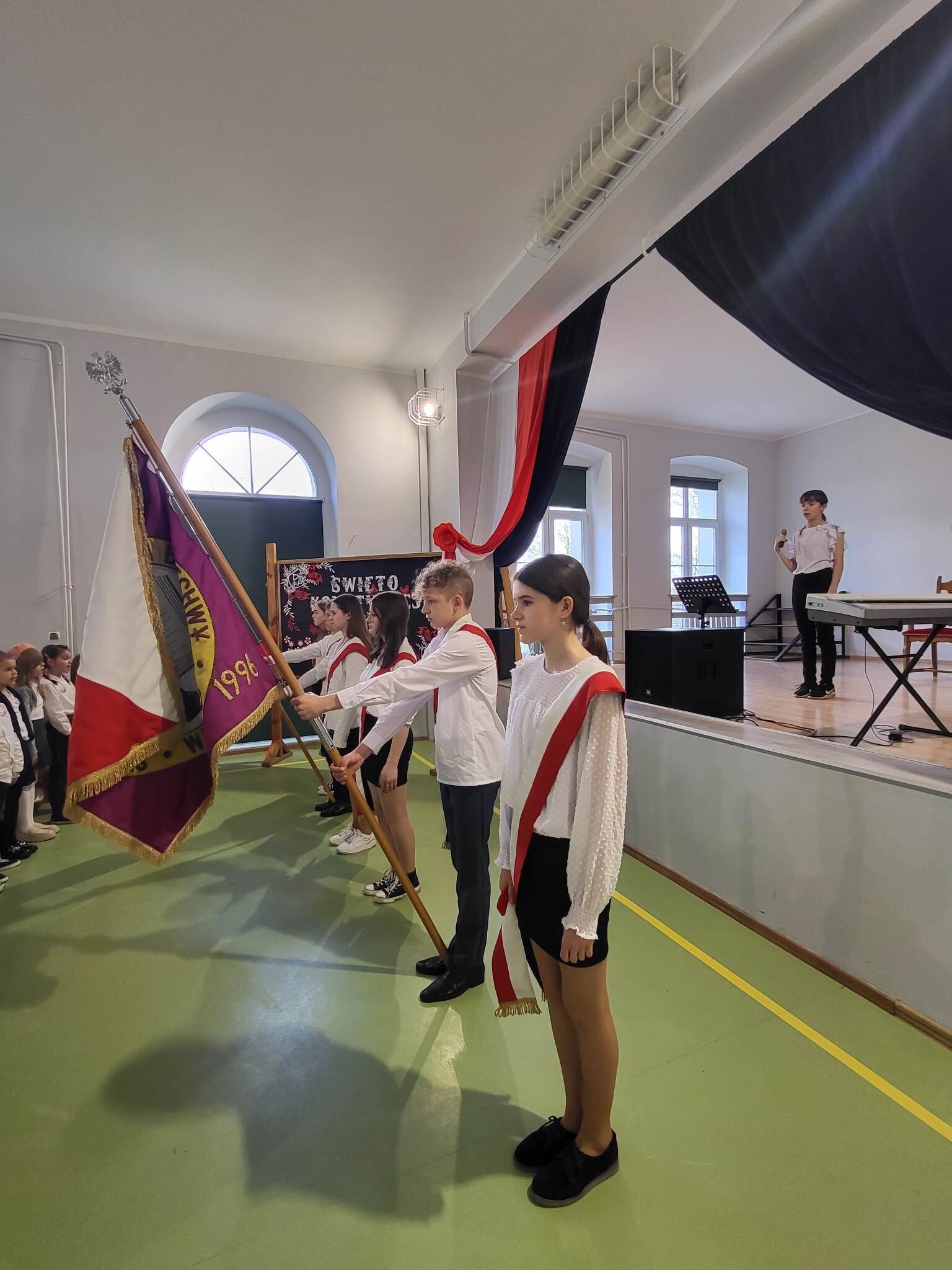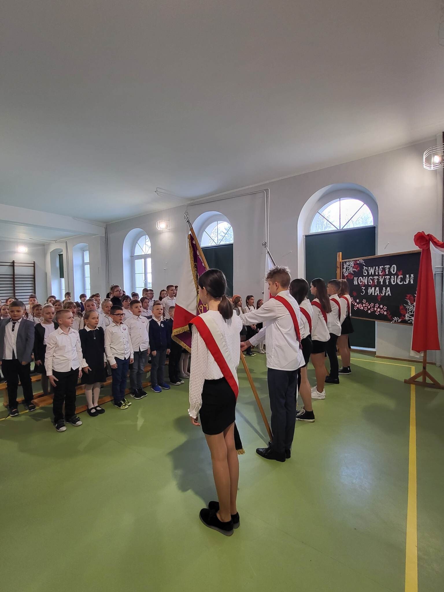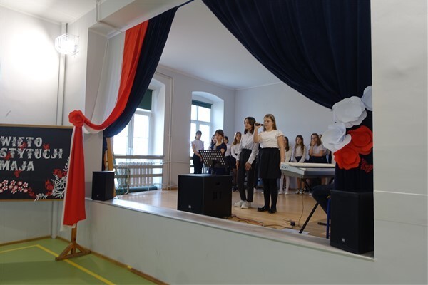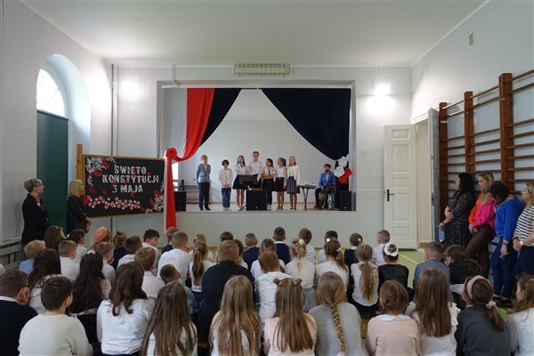 Już w czwartek, 27 kwietnia 2023, w Szkole Podstawowej im. Jana Brzechwy w Wicku odbyły się uroczyste apele z okazji rocznicy Konstytucji Trzeciomajowej 1791 roku. Do występów artystycznych zaangażowali się utalentowani aktorsko i muzycznie uczniowie klas IV-VIII. Odpowiedzialnym za występy był reżyser przedstawienia, Pan Piotr Neumüller, nasz historyk. Dodatkowym atutem tegorocznych apeli konstytucyjnych była piękna oprawa muzyczna, łącząca tradycyjne trzeciomajowe pieśni i melodie ze współczesnymi refleksyjnymi utworami, przygotowana pod kierunkiem naszego nauczyciela muzyki, Pana Piotra Fugiela.