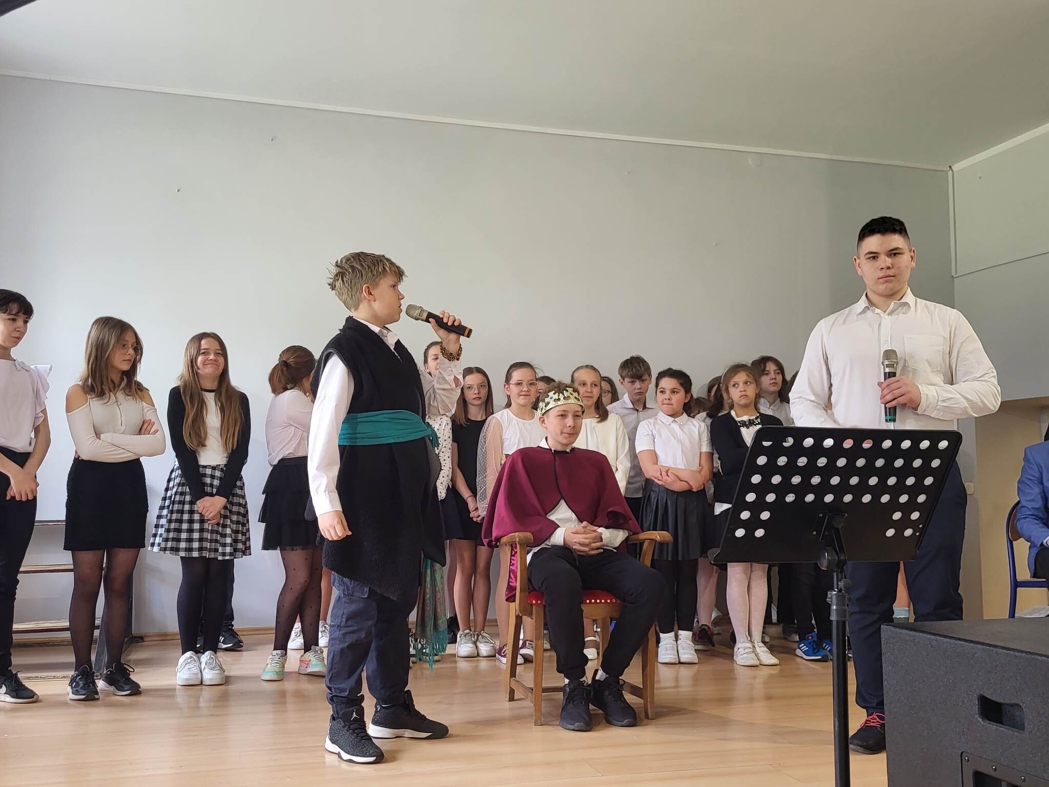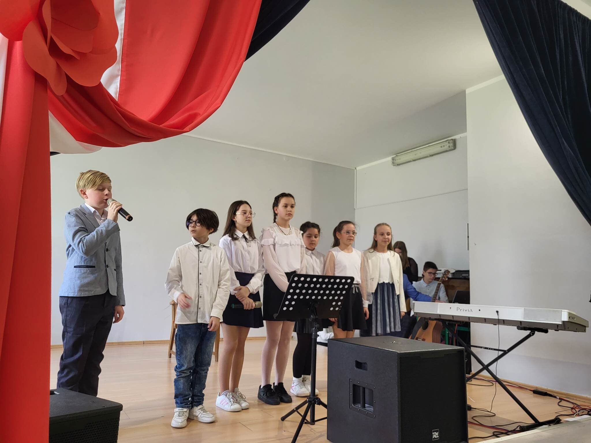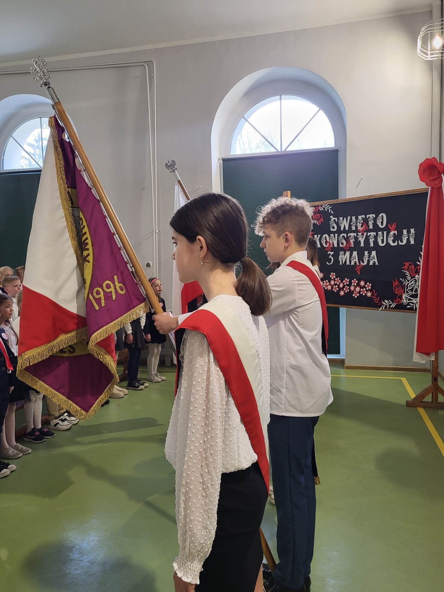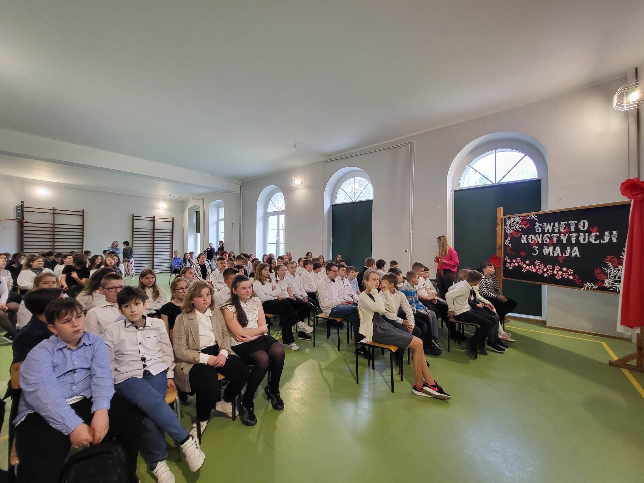 Już w czwartek, 27 kwietnia 2023, w Szkole Podstawowej im. Jana Brzechwy w Wicku odbyły się uroczyste apele z okazji rocznicy Konstytucji Trzeciomajowej 1791 roku. Do występów artystycznych zaangażowali się utalentowani aktorsko i muzycznie uczniowie klas IV-VIII. Odpowiedzialnym za występy był reżyser przedstawienia, Pan Piotr Neumüller, nasz historyk. Dodatkowym atutem tegorocznych apeli konstytucyjnych była piękna oprawa muzyczna, łącząca tradycyjne trzeciomajowe pieśni i melodie ze współczesnymi refleksyjnymi utworami, przygotowana pod kierunkiem naszego nauczyciela muzyki, Pana Piotra Fugiela.