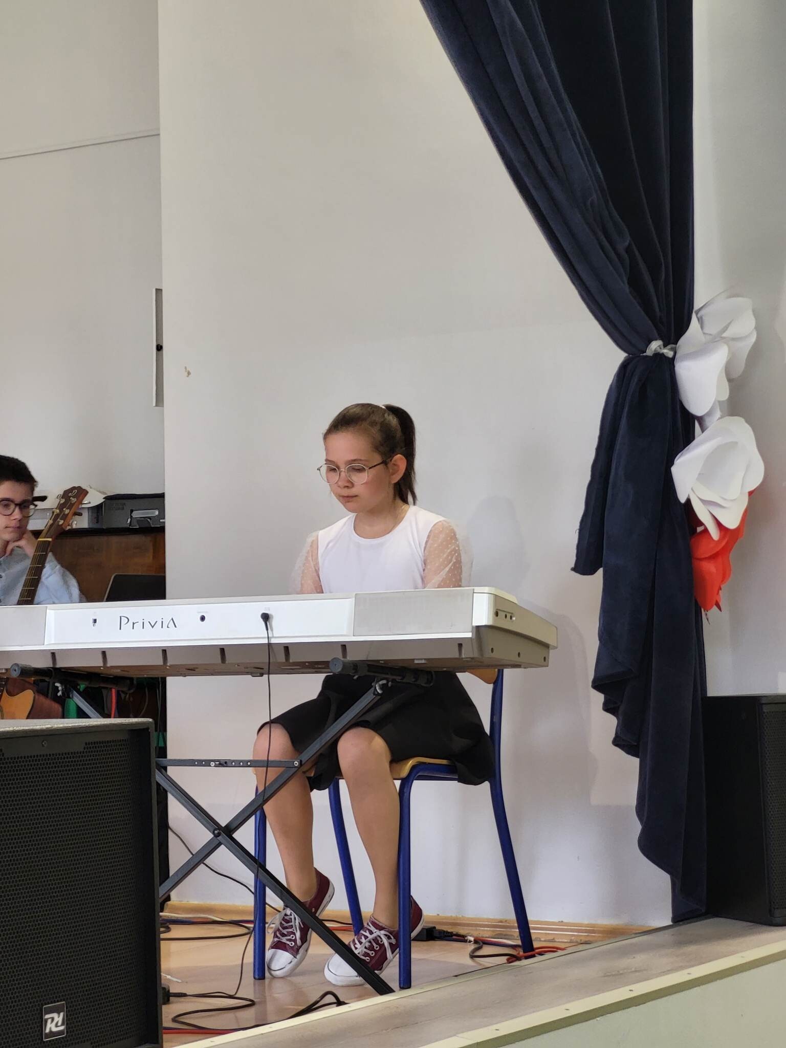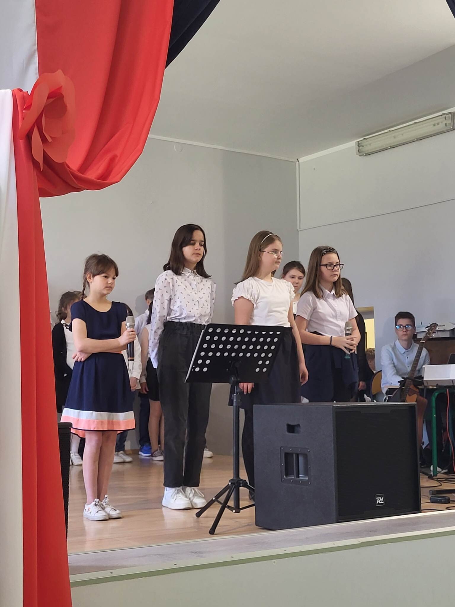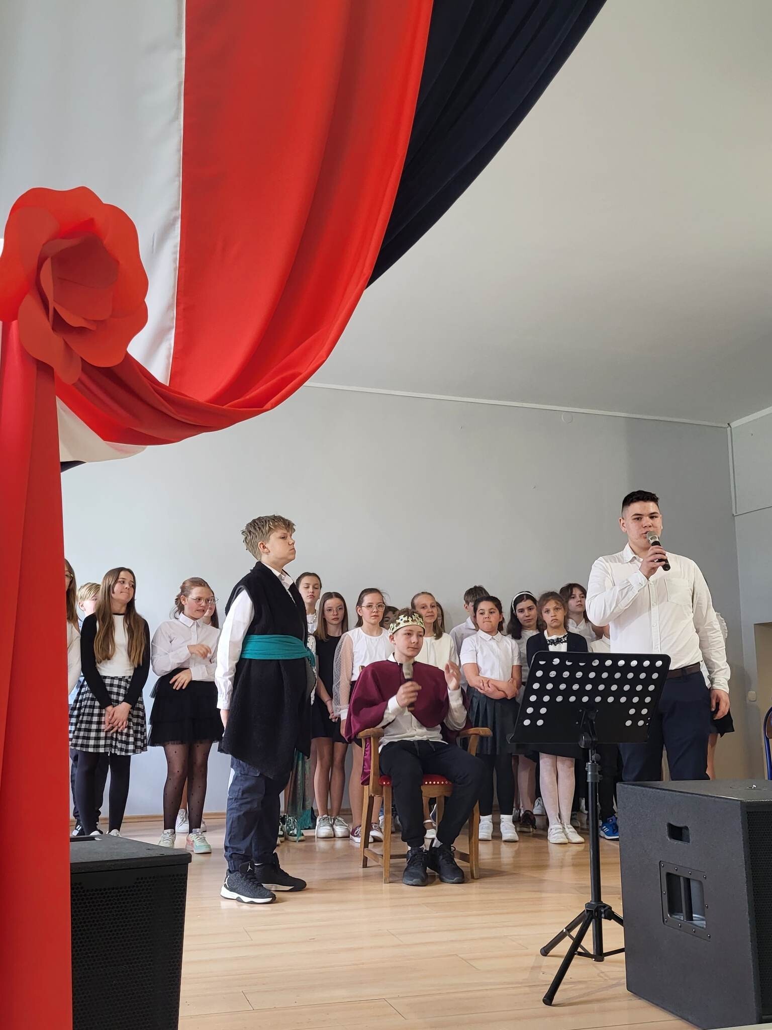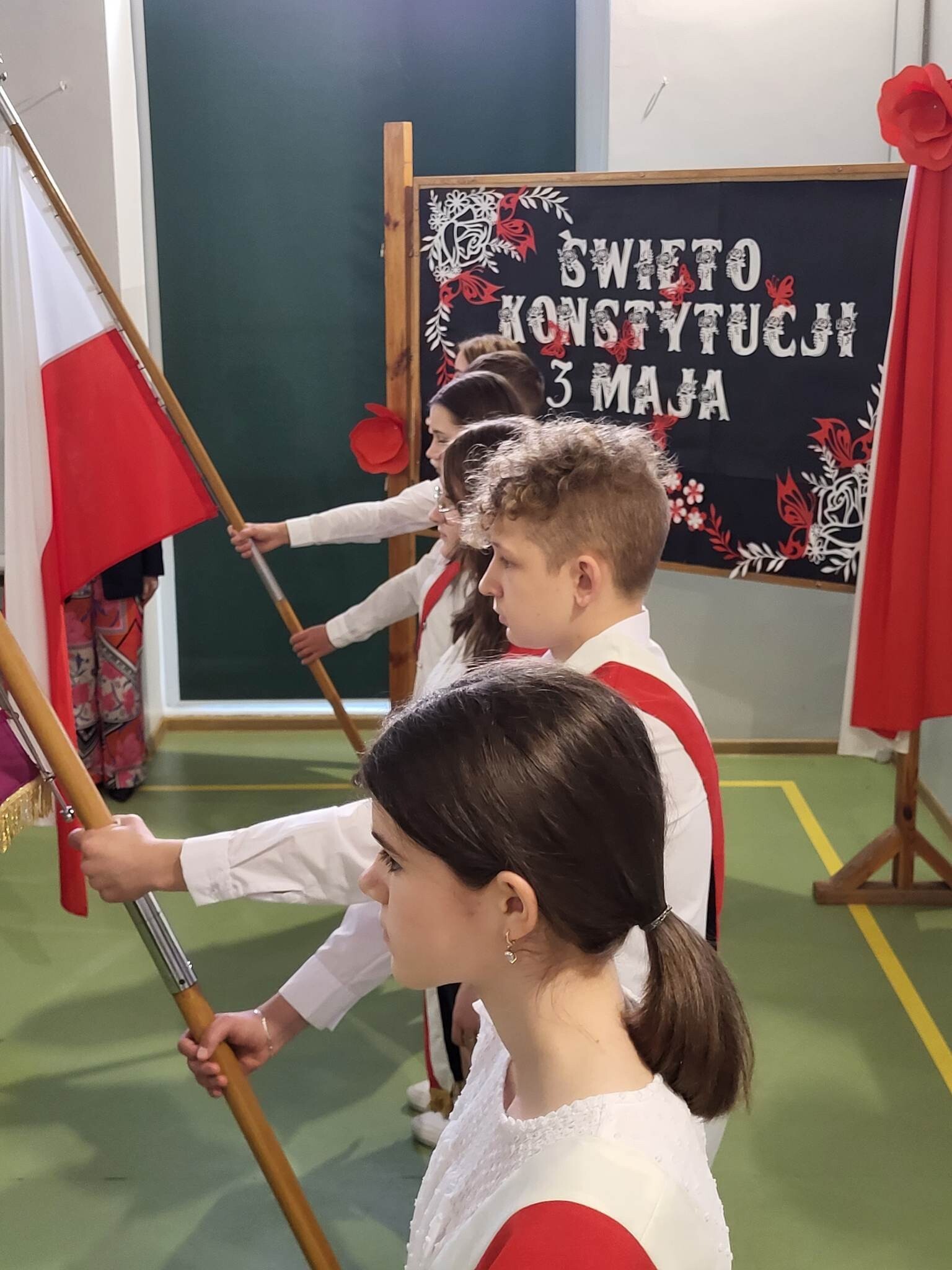 Już w czwartek, 27 kwietnia 2023, w Szkole Podstawowej im. Jana Brzechwy w Wicku odbyły się uroczyste apele z okazji rocznicy Konstytucji Trzeciomajowej 1791 roku. Do występów artystycznych zaangażowali się utalentowani aktorsko i muzycznie uczniowie klas IV-VIII. Odpowiedzialnym za występy był reżyser przedstawienia, Pan Piotr Neumüller, nasz historyk. Dodatkowym atutem tegorocznych apeli konstytucyjnych była piękna oprawa muzyczna, łącząca tradycyjne trzeciomajowe pieśni i melodie ze współczesnymi refleksyjnymi utworami, przygotowana pod kierunkiem naszego nauczyciela muzyki, Pana Piotra Fugiela.
