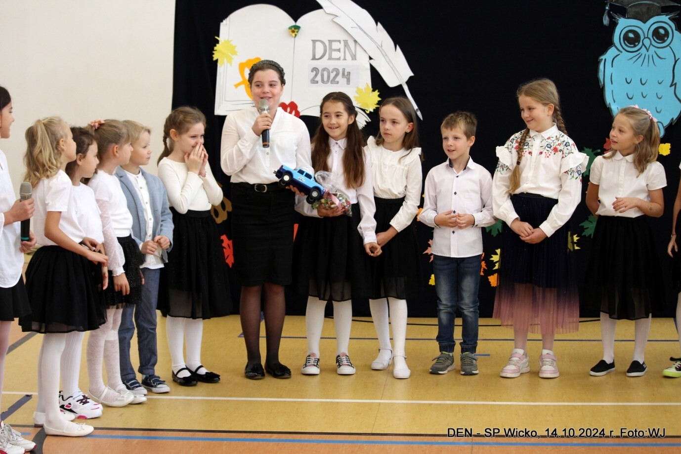 W poniedziałek, 14 października 2024, jak w każdej szkole w naszym kraju w tym czasie, odbyły się uroczyste obchody z okazji Dnia Edukacji Narodowej. W dużej sali gimnastycznej SP Wicko tuż po części oficjalnej odbyła się część artystyczna, podczas której mogliśmy podziwiać niesamowite występy naszych uczniów. Dziękujemy wszystkim zaangażowanym uczniom i nauczycielom za przygotowanie tej wspaniałej uroczystości.
