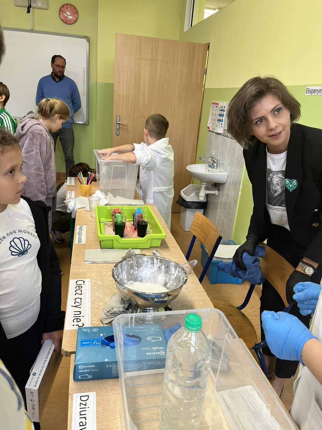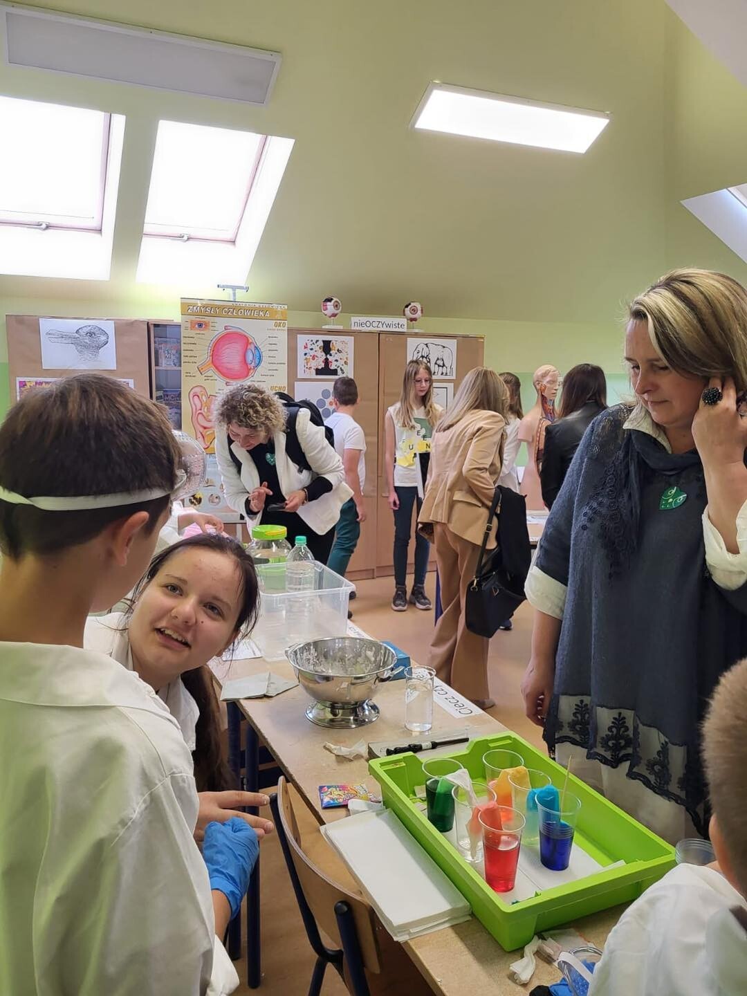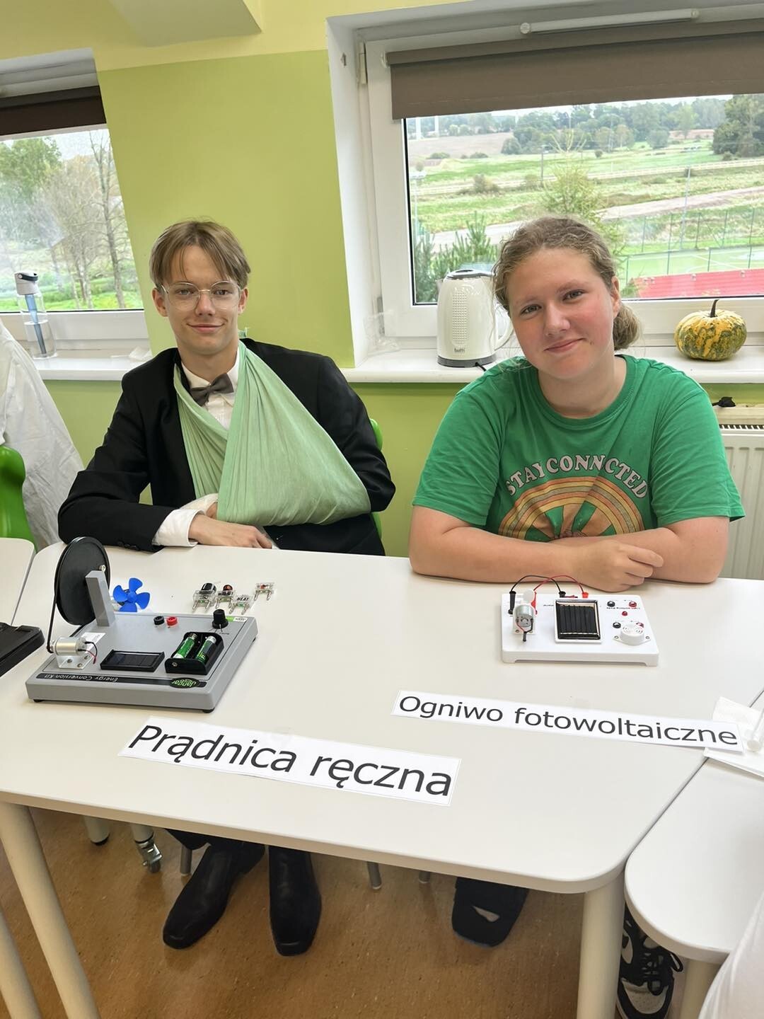 Ale nie tylko w pracowni można było dowiedzieć się czegoś na temat odnawialnych źródeł energii. Na korytarzach szkolnych mogliśmy zobaczyć stanowisko ekologicznych instrumentów z muzyką w tle, makietę biogazowni, fotowoltaiki i farmy wiatrowej, posłuchać o tym, jak wytwarzana jest energia i poeksperymentować z wodą. Uczniowie chętnie brali udział w rozwiązywaniu ekologicznych quizów i zagadek, tworzyli meduzy i korzystali z lasoterapii. A niektórzy nawet pytali, czy jutro też to wszystko będzie otwarte? Jak widać podobało się bardzo. A na koniec dnia, pełni wrażeń "duchowych", mogli zregenerować siły hot- dogami w szkolnej stołówce.