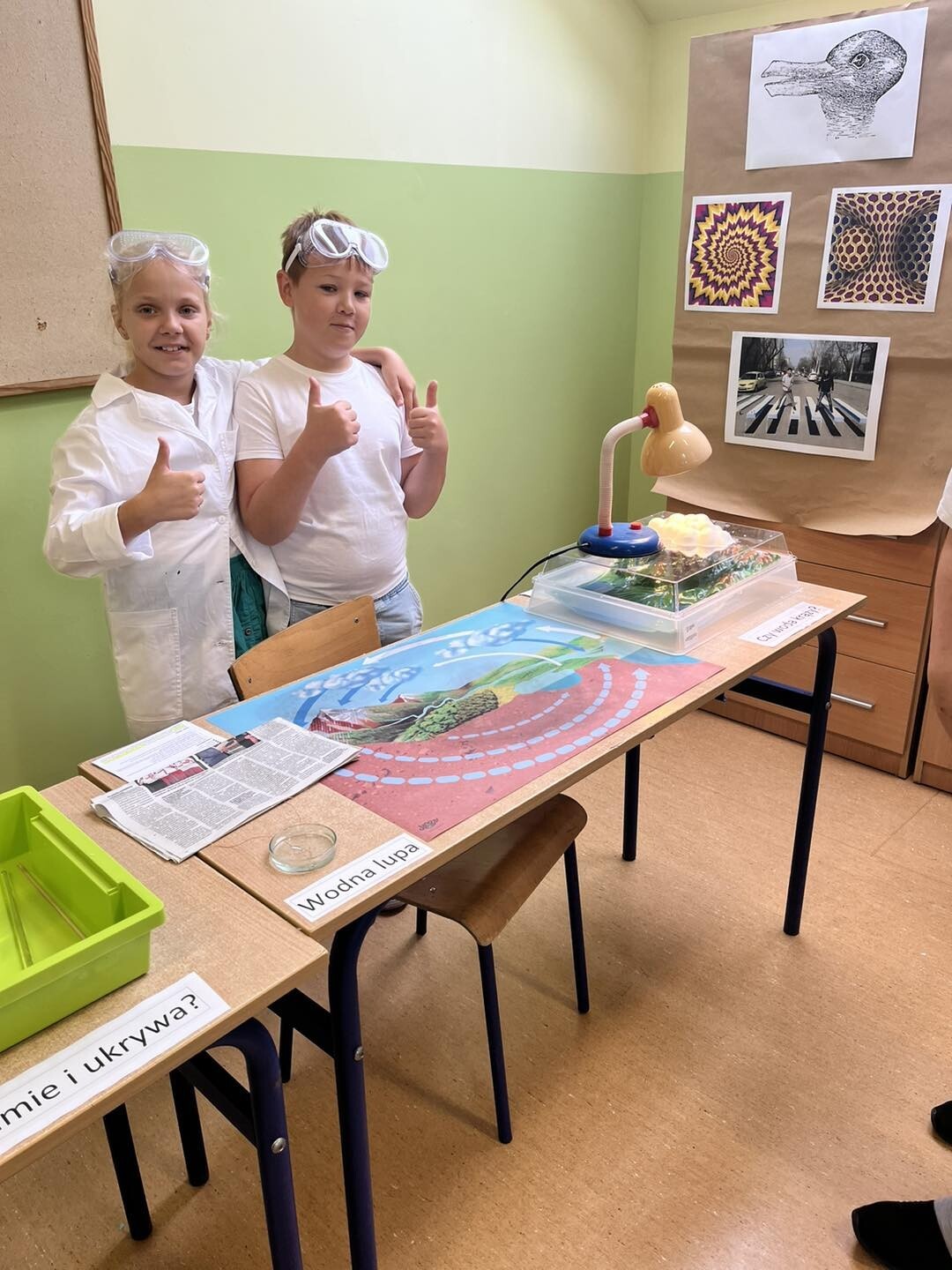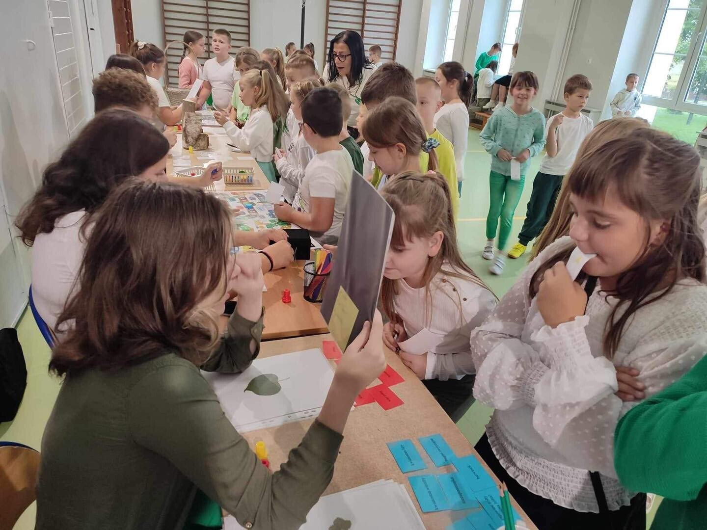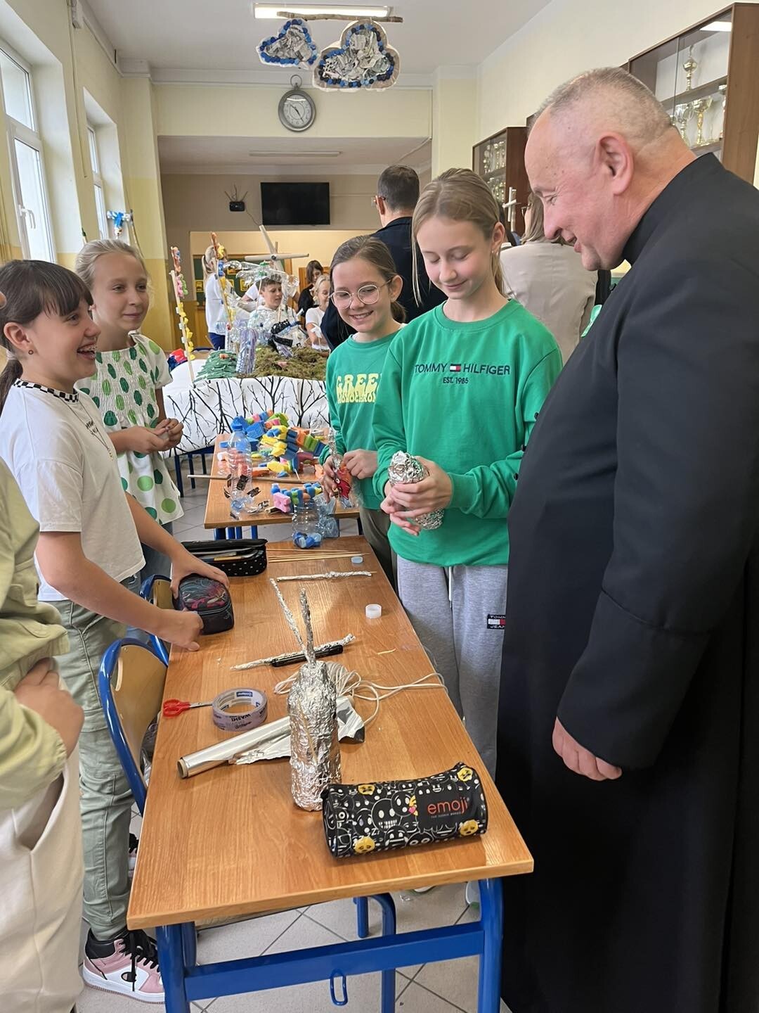 Ale nie tylko w pracowni można było dowiedzieć się czegoś na temat odnawialnych źródeł energii. Na korytarzach szkolnych mogliśmy zobaczyć stanowisko ekologicznych instrumentów z muzyką w tle, makietę biogazowni, fotowoltaiki i farmy wiatrowej, posłuchać o tym, jak wytwarzana jest energia i poeksperymentować z wodą. Uczniowie chętnie brali udział w rozwiązywaniu ekologicznych quizów i zagadek, tworzyli meduzy i korzystali z lasoterapii. A niektórzy nawet pytali, czy jutro też to wszystko będzie otwarte? Jak widać podobało się bardzo. A na koniec dnia, pełni wrażeń "duchowych", mogli zregenerować siły hot- dogami w szkolnej stołówce.