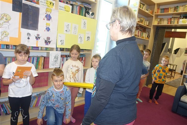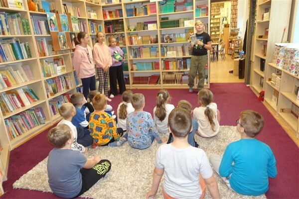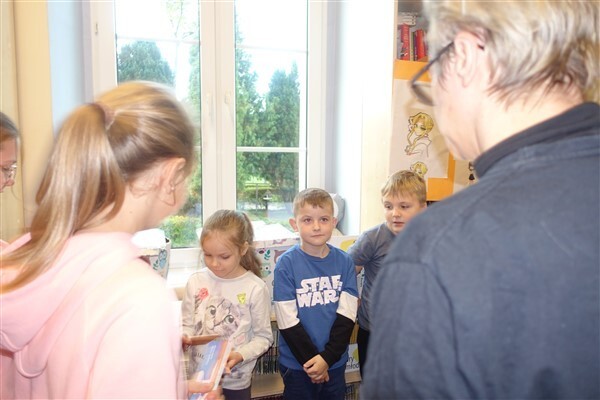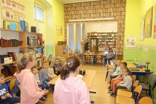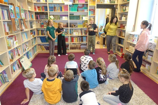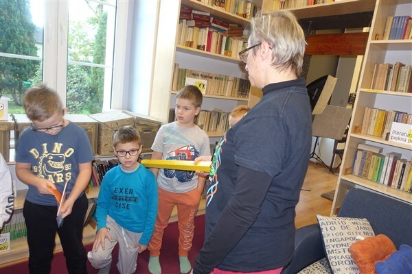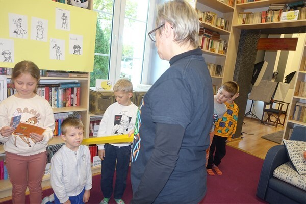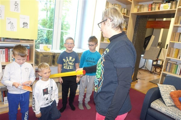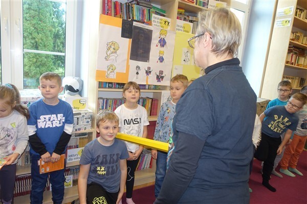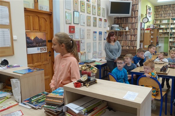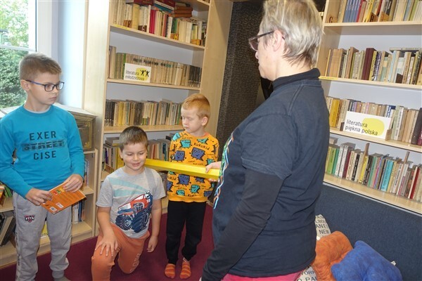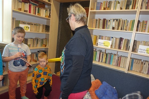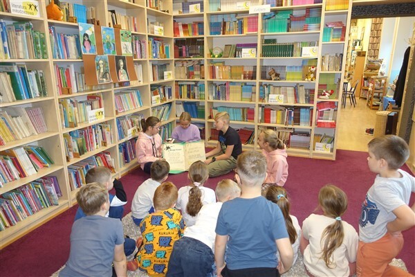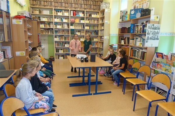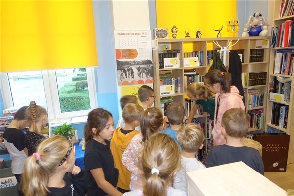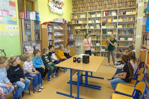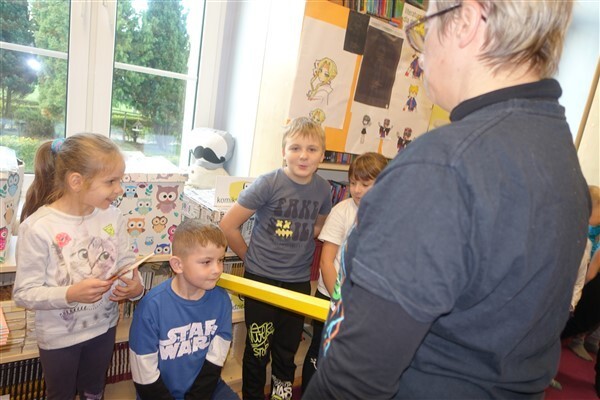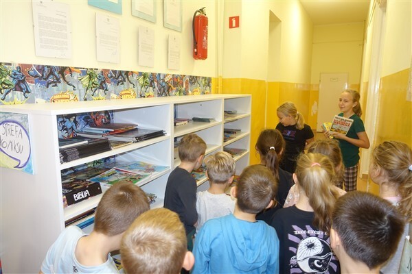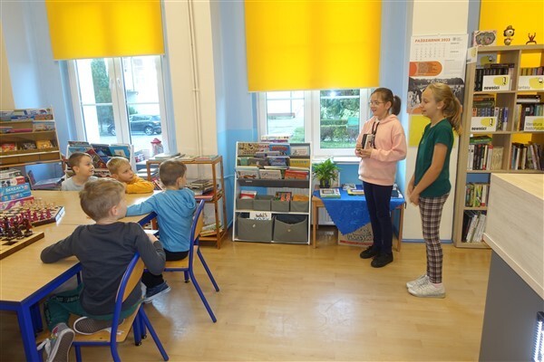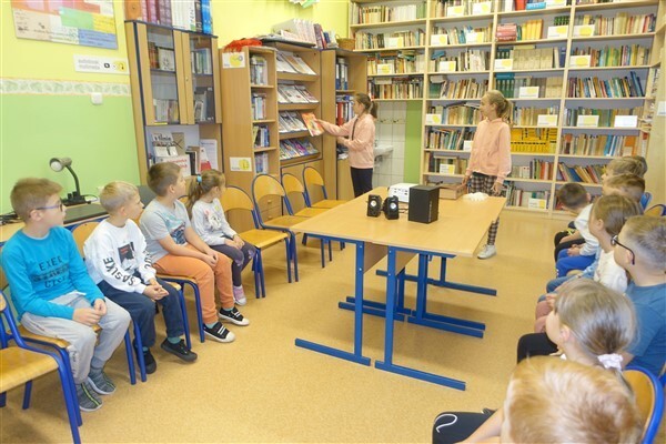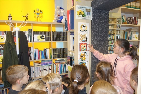Zanim jednak dzieci zostały pasowane na czytelników, musiały przejść szkolenie, jak powinny zachowywać się w bibliotece oraz w jaki sposób prawidłowo mogą samodzielnie korzystać z księgozbioru. A szkolenie czytelnicze przygotowali dla nich starsi uczniowie z kl. VA, należący do aktywu bibliotecznego: Kinga Gołąbowicz, Lena Stojek, Antoni Szyca i Anna Wrońska. Podczas prowadzonych samodzielnie zajęć pokazali pierwszakom krótkie inscenizowane scenki z życia biblioteki, tłumaczyli, jak prawidłowo wypożyczyć i oddać książkę do biblioteki, przestrzegali, co można, a czego nie należy robić w bibliotece, a także jak należy traktować nie tylko wypożyczone książki. Dzieciom w zwiedzaniu przestrzeni bibliotecznej towarzyszyła maskotka biblioteczna Borsuk Tomik.