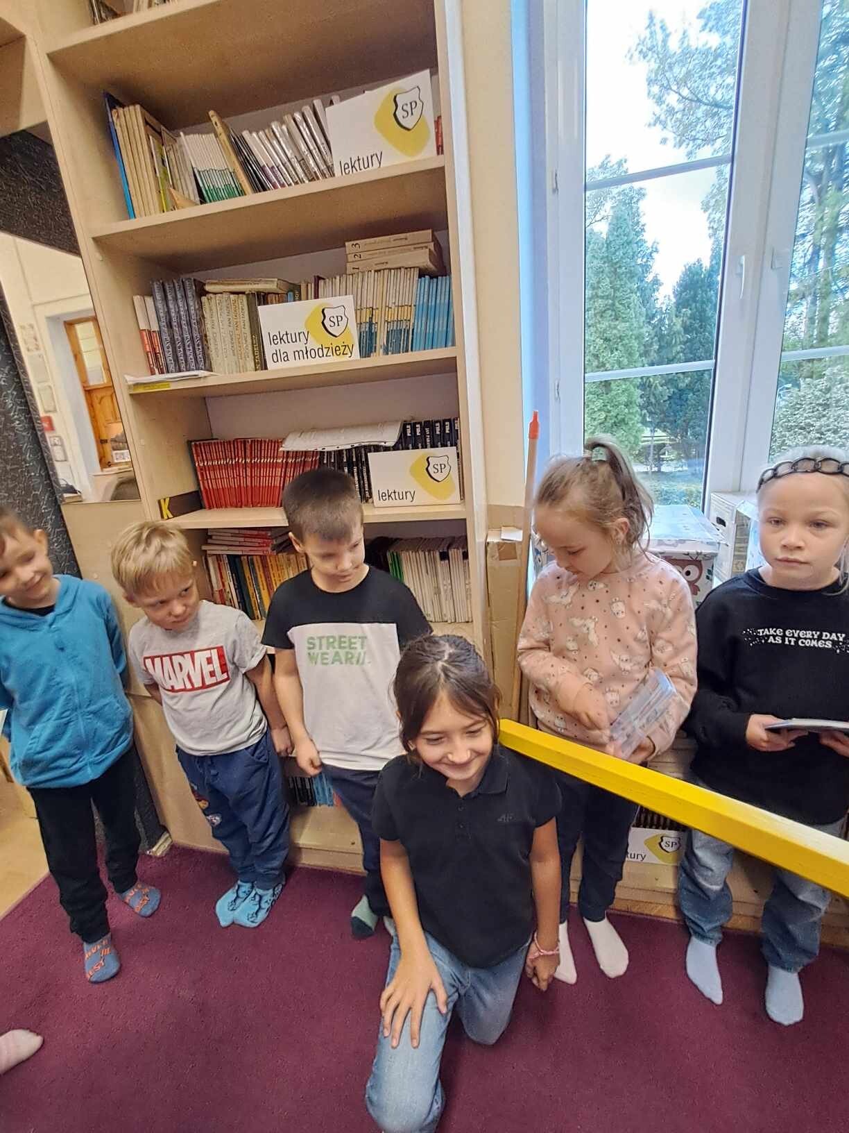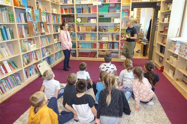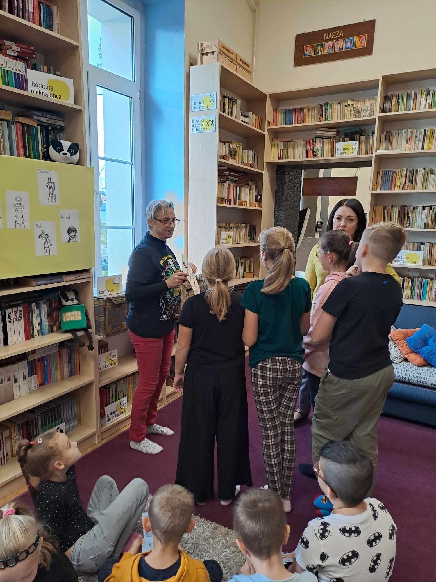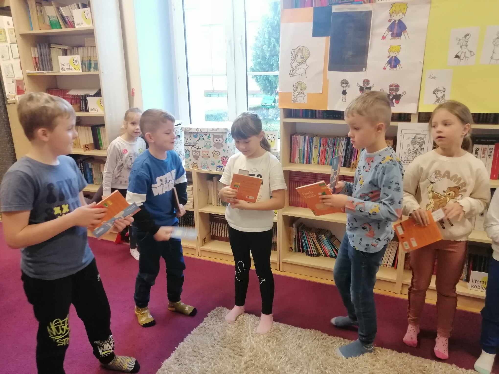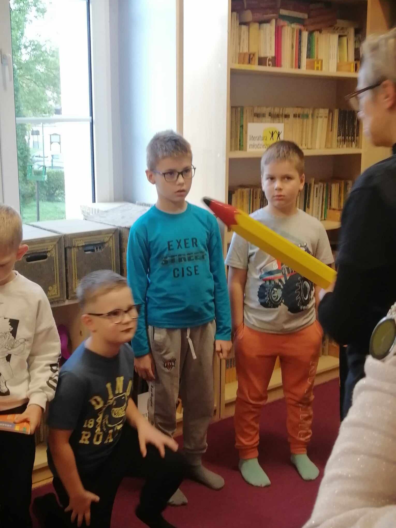 Zanim jednak dzieci zostały pasowane na czytelników, musiały przejść szkolenie, jak powinny zachowywać się w bibliotece oraz w jaki sposób prawidłowo mogą samodzielnie korzystać z księgozbioru. A szkolenie czytelnicze przygotowali dla nich starsi uczniowie z kl. VA, należący do aktywu bibliotecznego: Kinga Gołąbowicz, Lena Stojek, Antoni Szyca i Anna Wrońska. Podczas prowadzonych samodzielnie zajęć pokazali pierwszakom krótkie inscenizowane scenki z życia biblioteki, tłumaczyli, jak prawidłowo wypożyczyć i oddać książkę do biblioteki, przestrzegali, co można, a czego nie należy robić w bibliotece, a także jak należy traktować nie tylko wypożyczone książki. Dzieciom w zwiedzaniu przestrzeni bibliotecznej towarzyszyła maskotka biblioteczna Borsuk Tomik.
