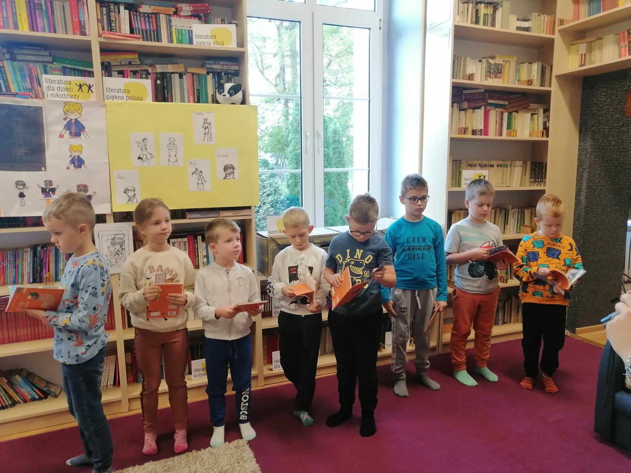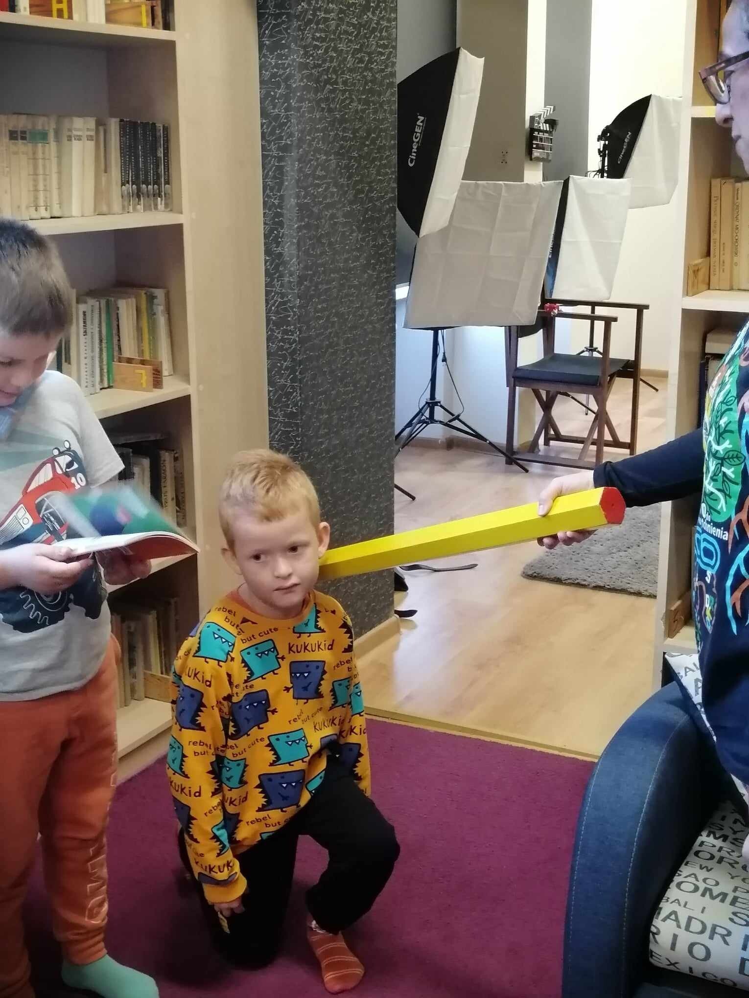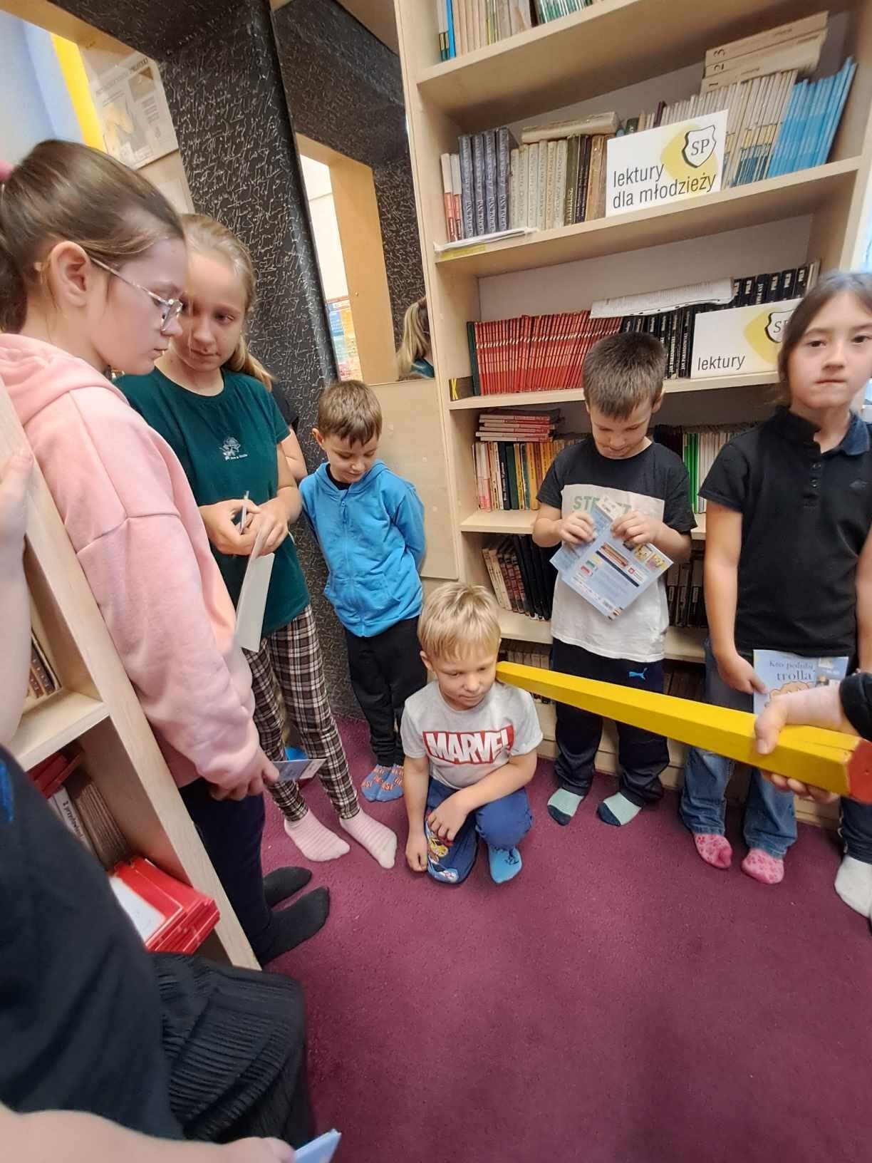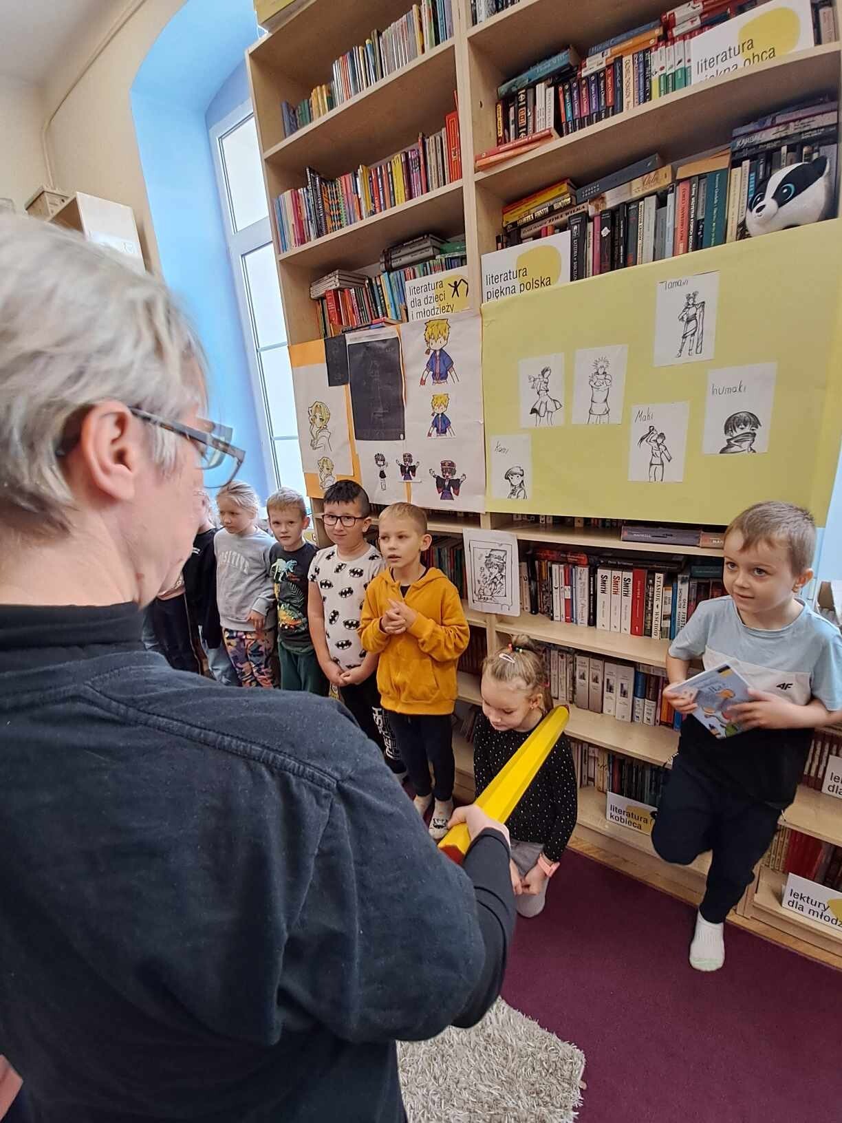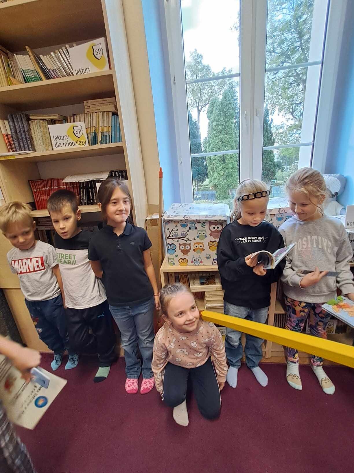 Zanim jednak dzieci zostały pasowane na czytelników, musiały przejść szkolenie, jak powinny zachowywać się w bibliotece oraz w jaki sposób prawidłowo mogą samodzielnie korzystać z księgozbioru. A szkolenie czytelnicze przygotowali dla nich starsi uczniowie z kl. VA, należący do aktywu bibliotecznego: Kinga Gołąbowicz, Lena Stojek, Antoni Szyca i Anna Wrońska. Podczas prowadzonych samodzielnie zajęć pokazali pierwszakom krótkie inscenizowane scenki z życia biblioteki, tłumaczyli, jak prawidłowo wypożyczyć i oddać książkę do biblioteki, przestrzegali, co można, a czego nie należy robić w bibliotece, a także jak należy traktować nie tylko wypożyczone książki. Dzieciom w zwiedzaniu przestrzeni bibliotecznej towarzyszyła maskotka biblioteczna Borsuk Tomik.