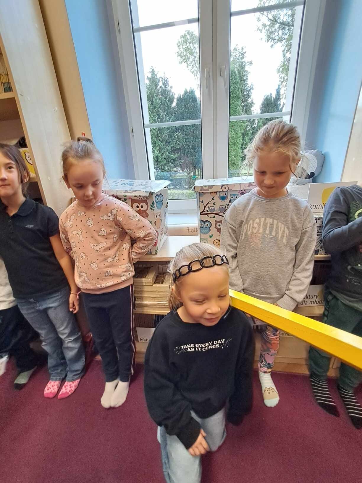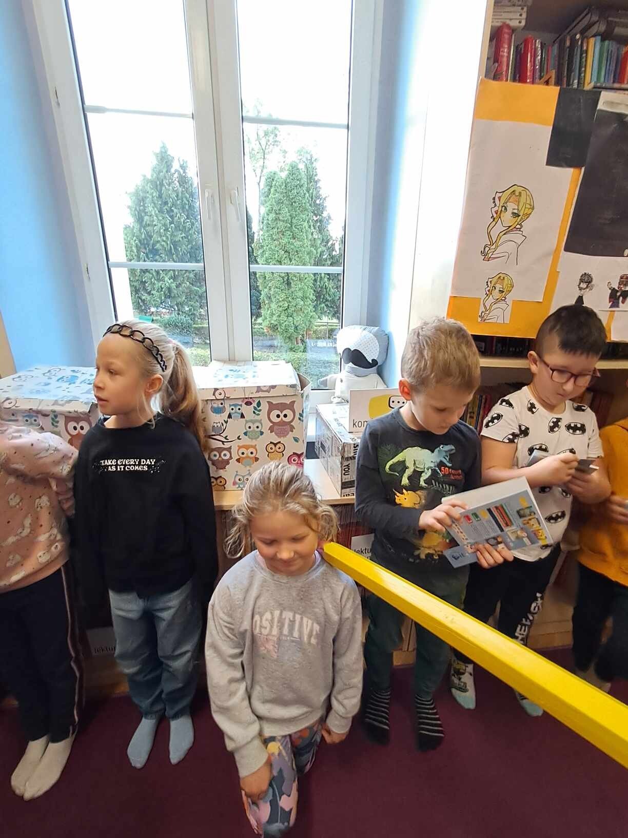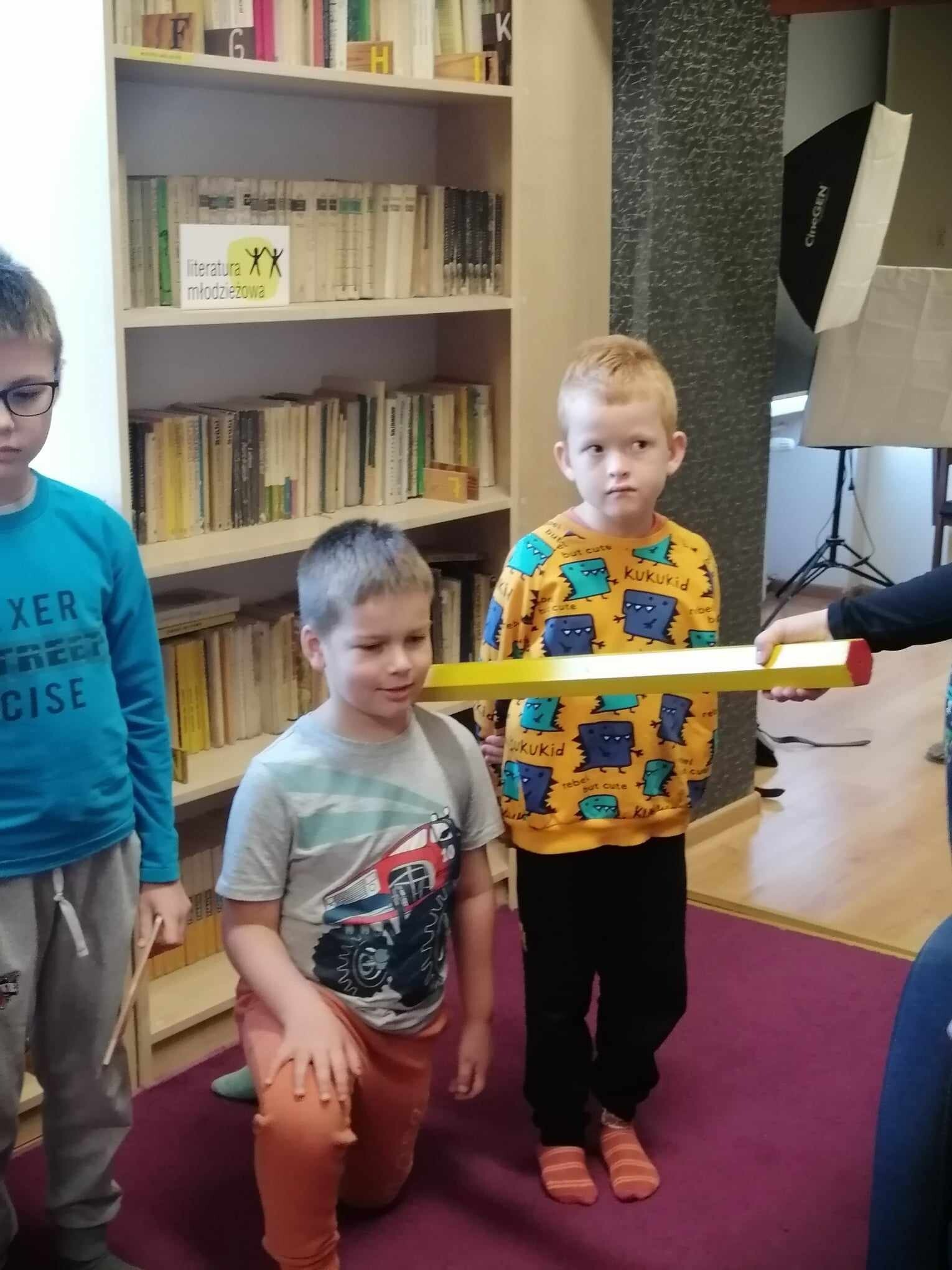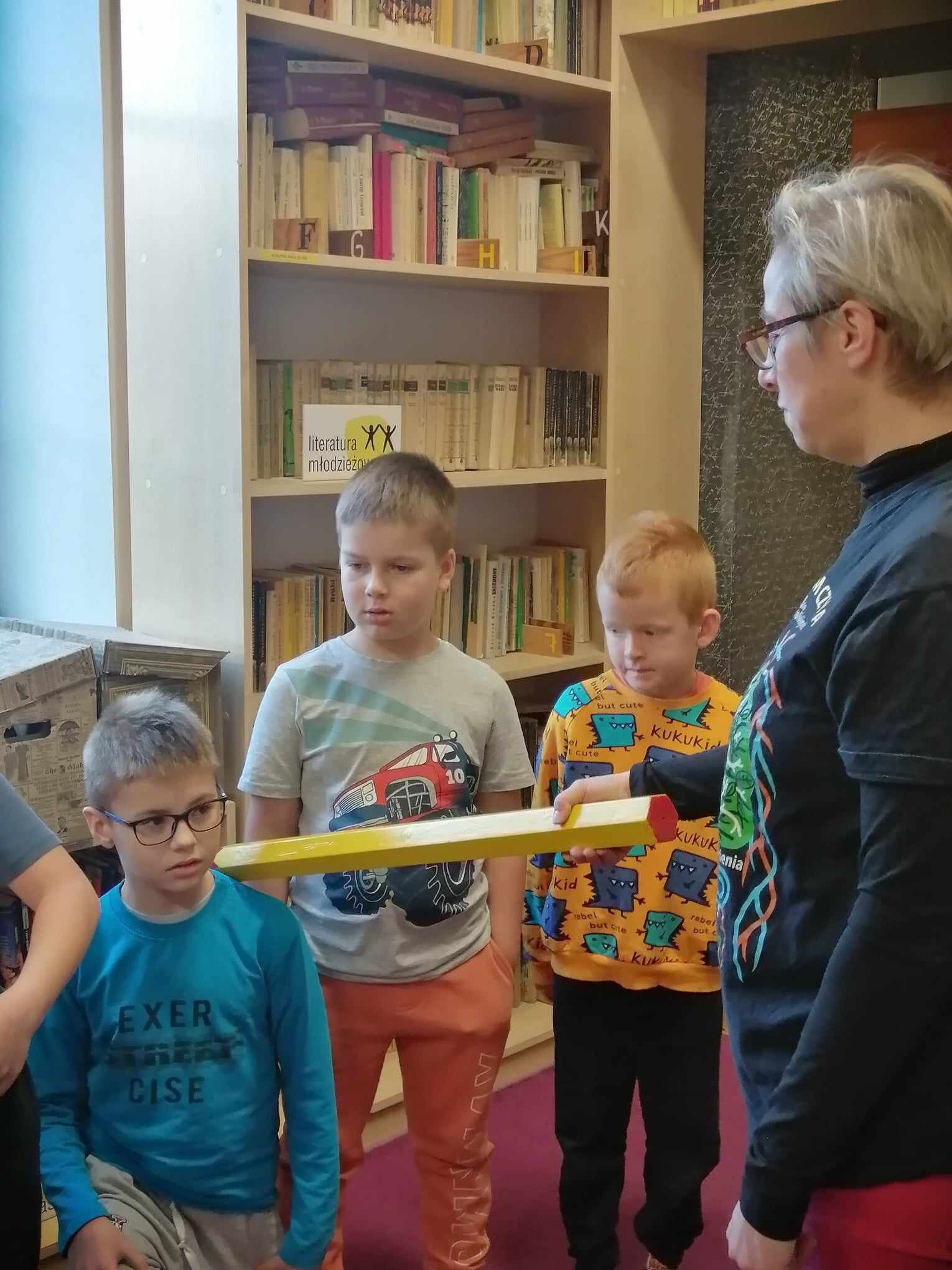 Zanim jednak dzieci zostały pasowane na czytelników, musiały przejść szkolenie, jak powinny zachowywać się w bibliotece oraz w jaki sposób prawidłowo mogą samodzielnie korzystać z księgozbioru. A szkolenie czytelnicze przygotowali dla nich starsi uczniowie z kl. VA, należący do aktywu bibliotecznego: Kinga Gołąbowicz, Lena Stojek, Antoni Szyca i Anna Wrońska. Podczas prowadzonych samodzielnie zajęć pokazali pierwszakom krótkie inscenizowane scenki z życia biblioteki, tłumaczyli, jak prawidłowo wypożyczyć i oddać książkę do biblioteki, przestrzegali, co można, a czego nie należy robić w bibliotece, a także jak należy traktować nie tylko wypożyczone książki. Dzieciom w zwiedzaniu przestrzeni bibliotecznej towarzyszyła maskotka biblioteczna Borsuk Tomik.