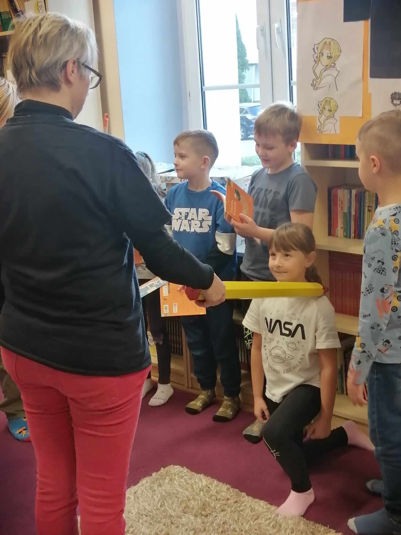 W poniedziałek, 16 października 2023 - tradycyjnie podczas Międzynarodowego Miesiąca Bibliotek Szkolnych - w Bibliotece Szkolnej w Wicku odbyła się uroczystość pasowania uczniów klas pierwszych SP Wicko na czytelników naszej biblioteki.
