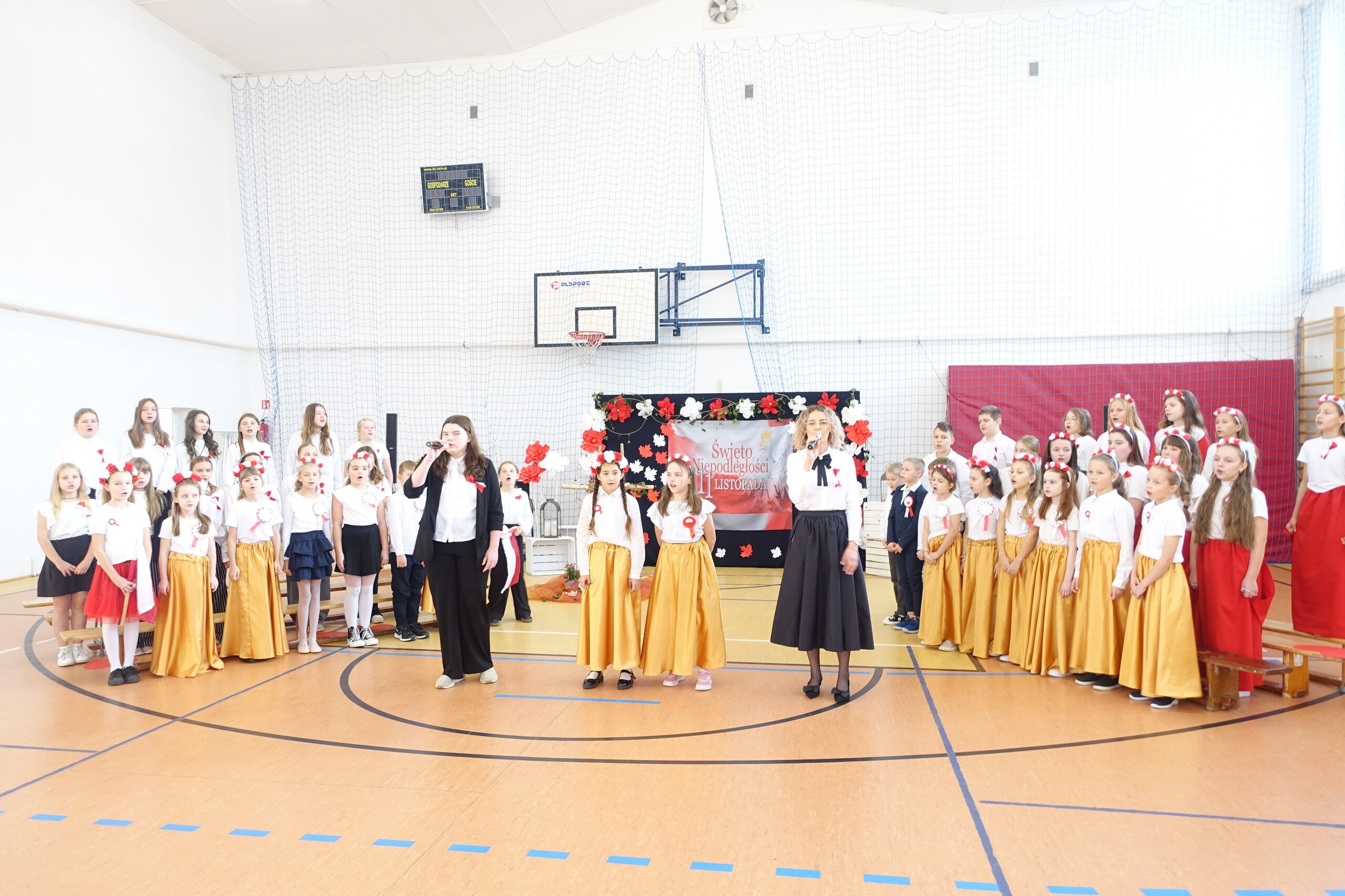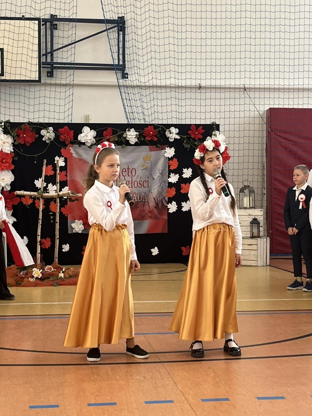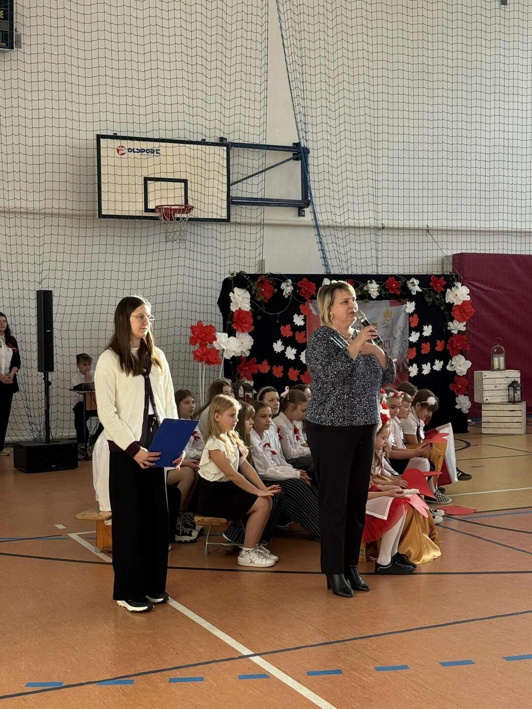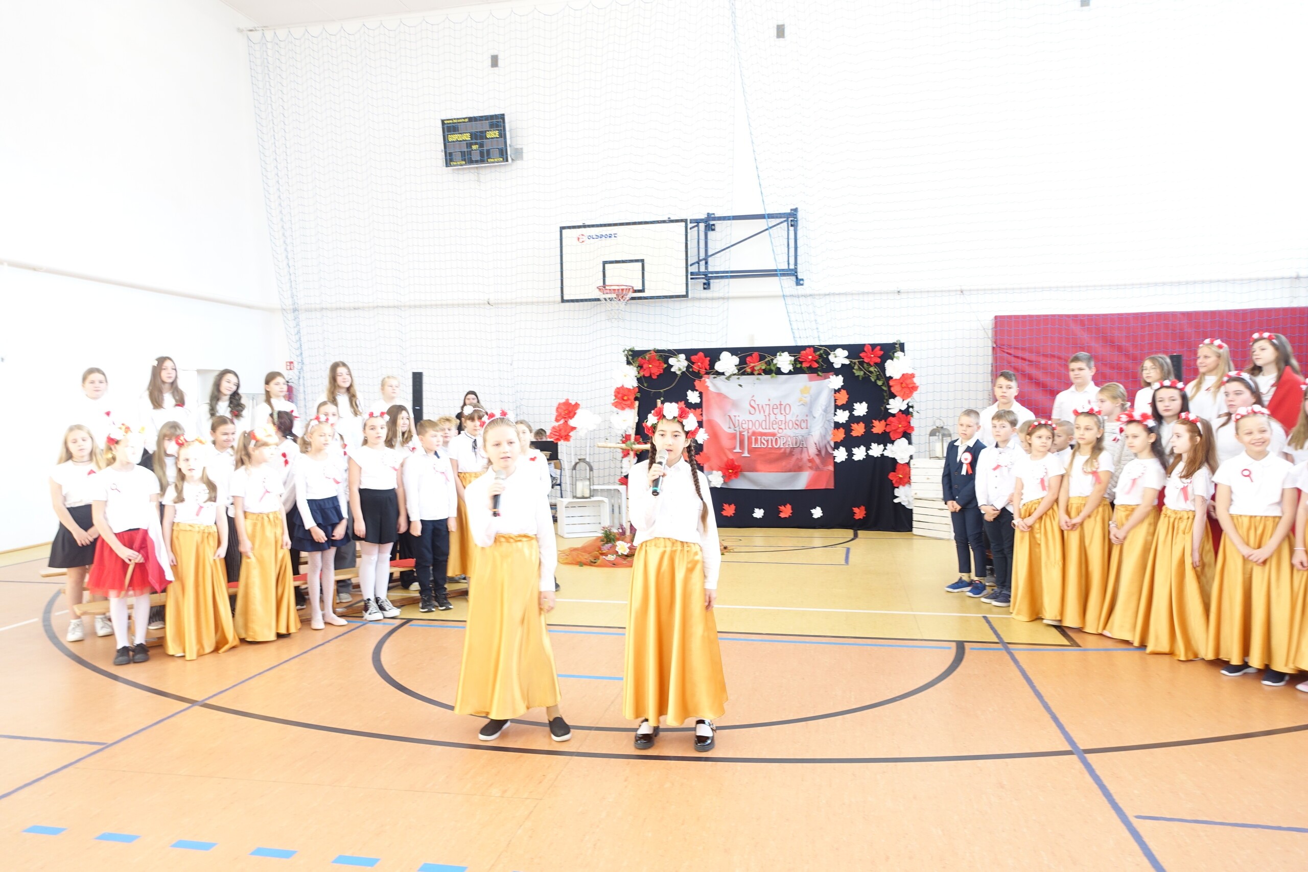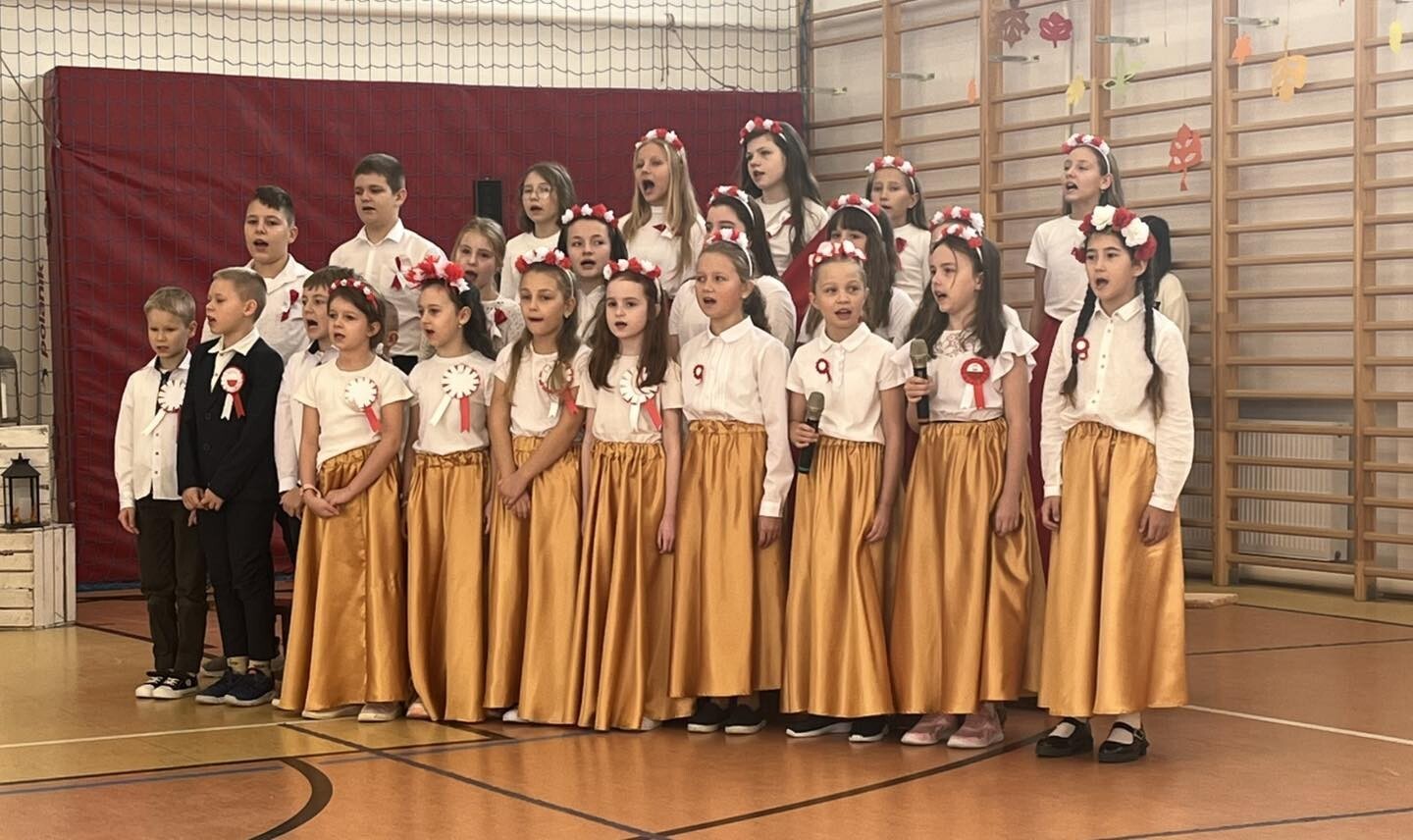 Uroczy występ przygotowały również Lena Drzazgowska i Hania Ptak wraz z chórem, śpiewając piosenkę „Co to jest niepodległość”, która szczególnie poruszyła młodszych uczniów.