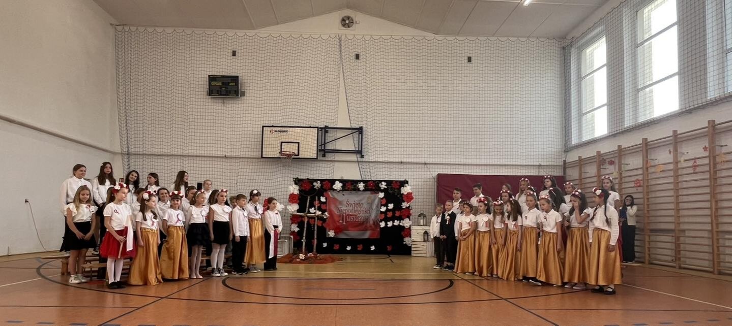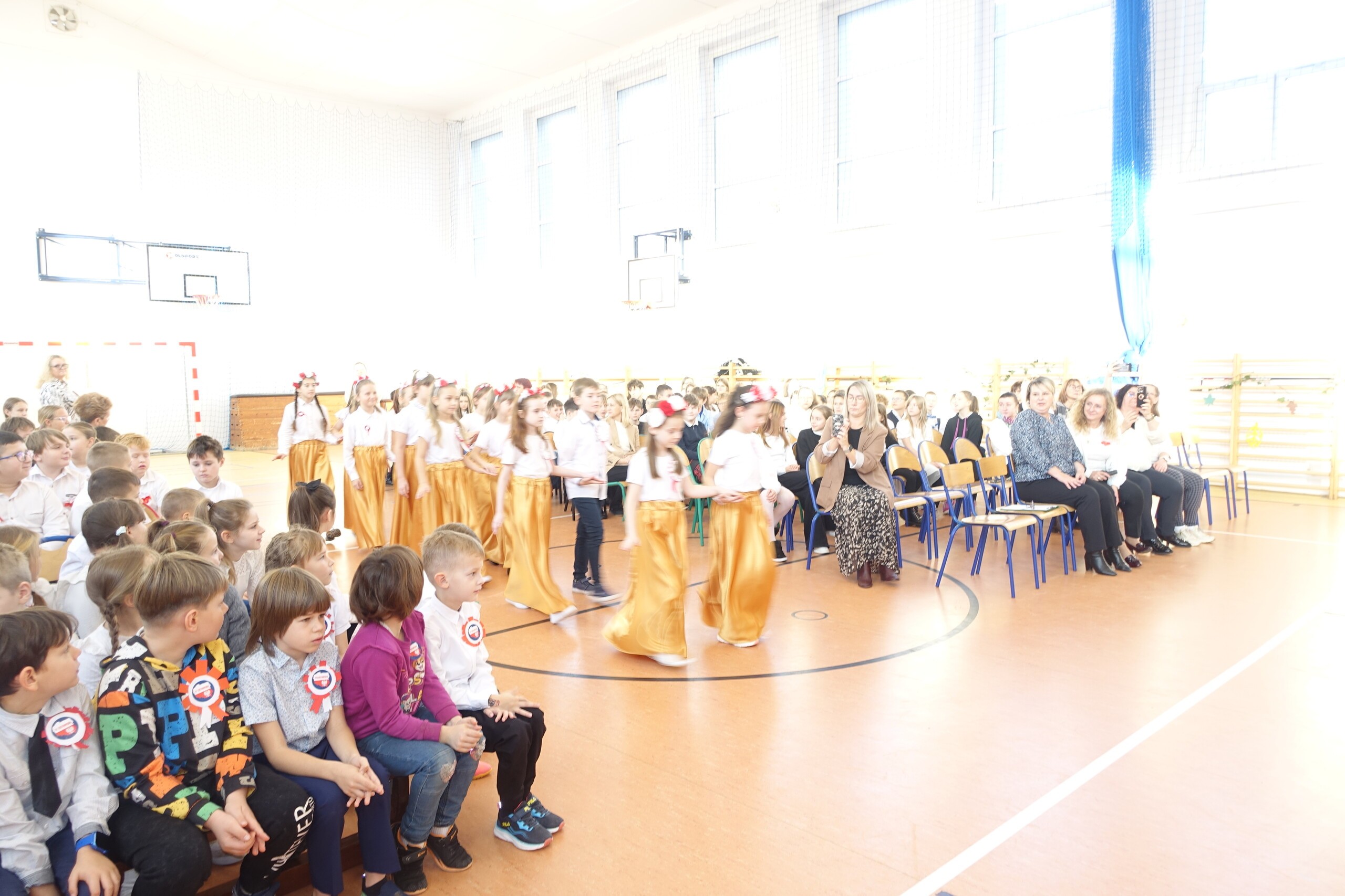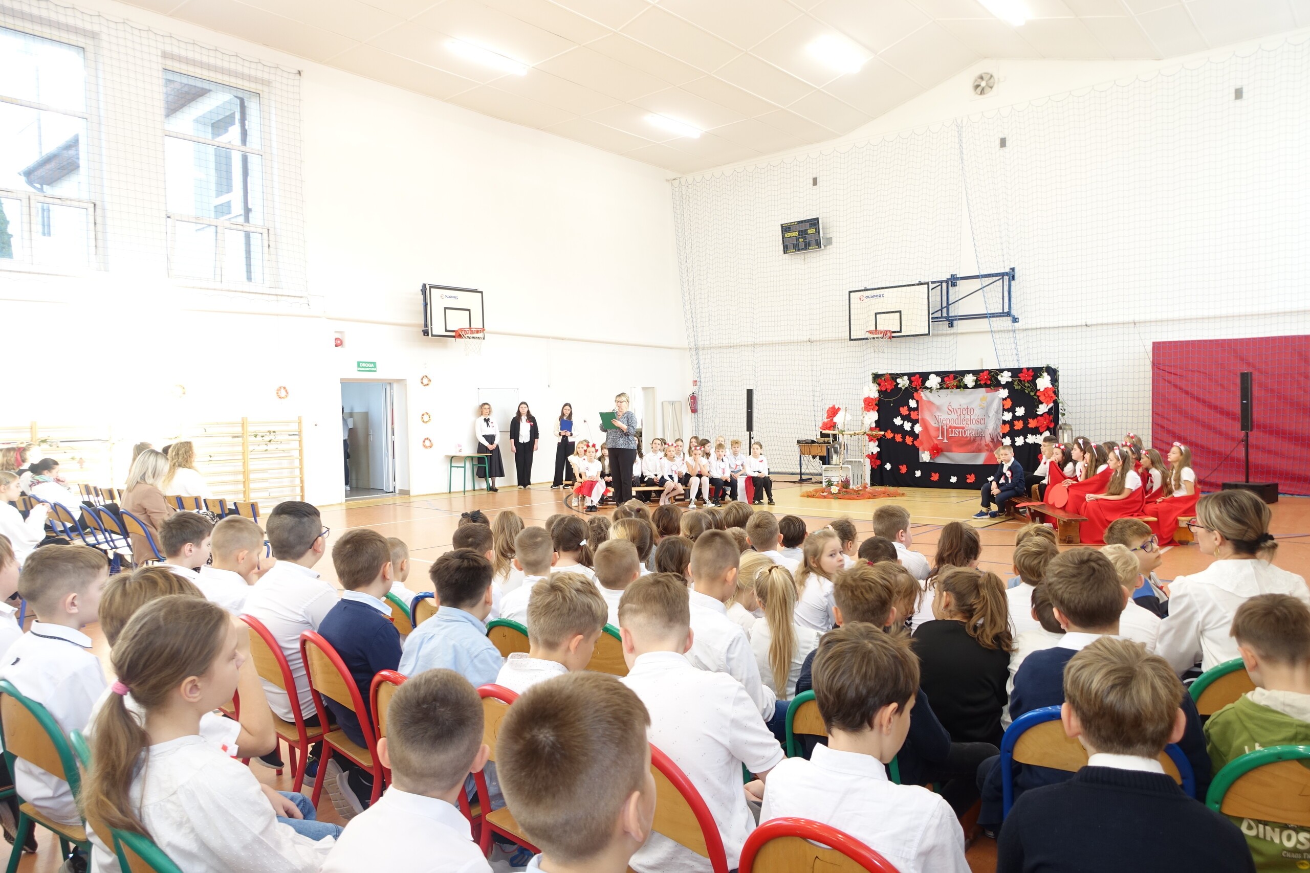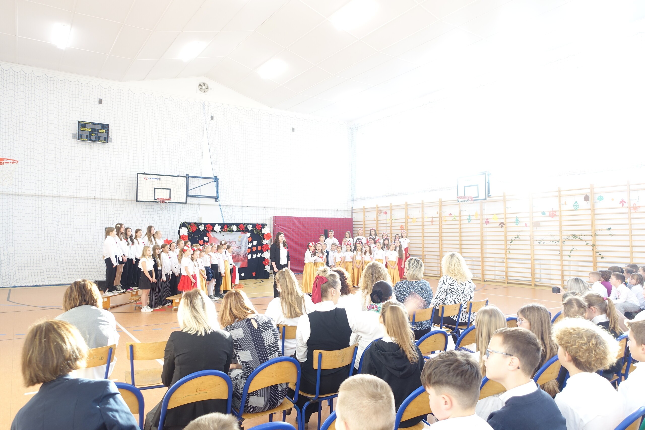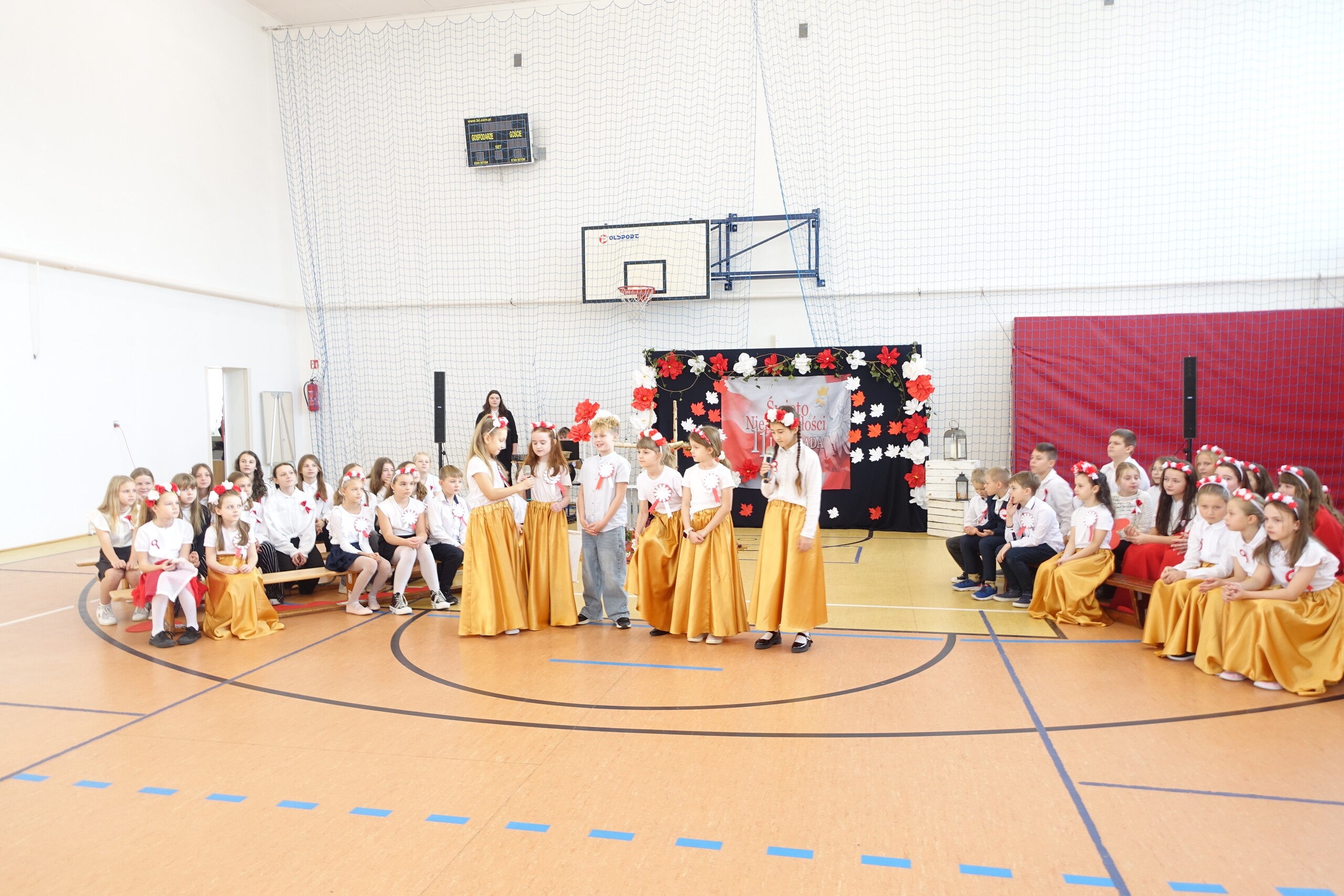 Uroczy występ przygotowały również Lena Drzazgowska i Hania Ptak wraz z chórem, śpiewając piosenkę „Co to jest niepodległość”, która szczególnie poruszyła młodszych uczniów.