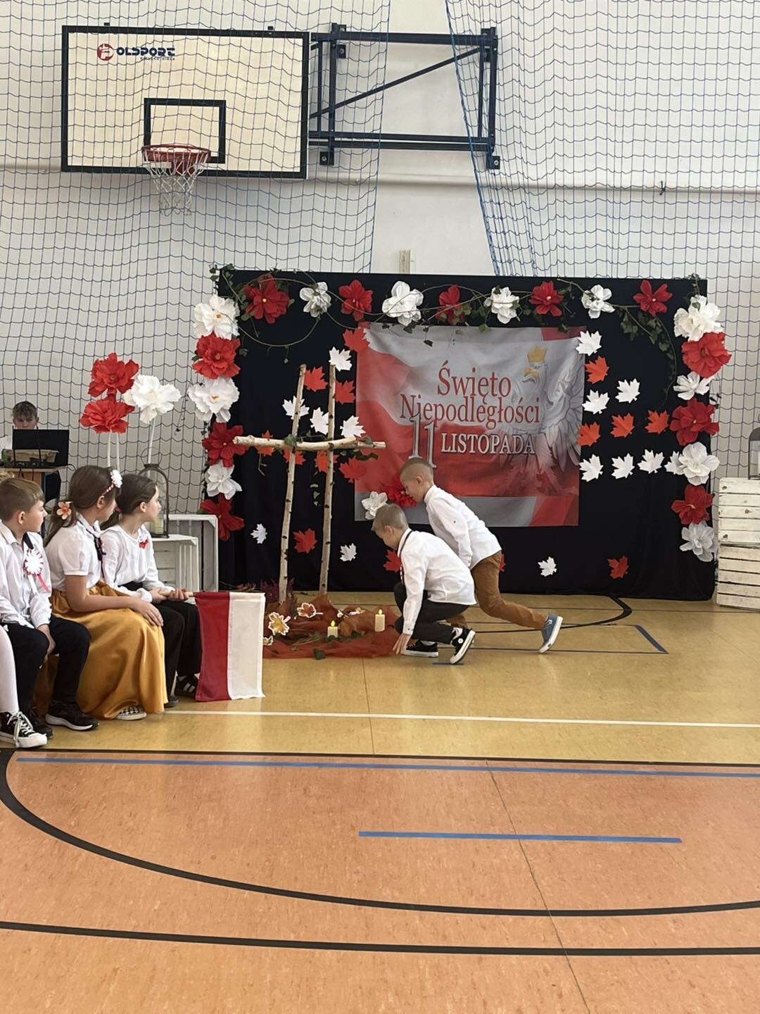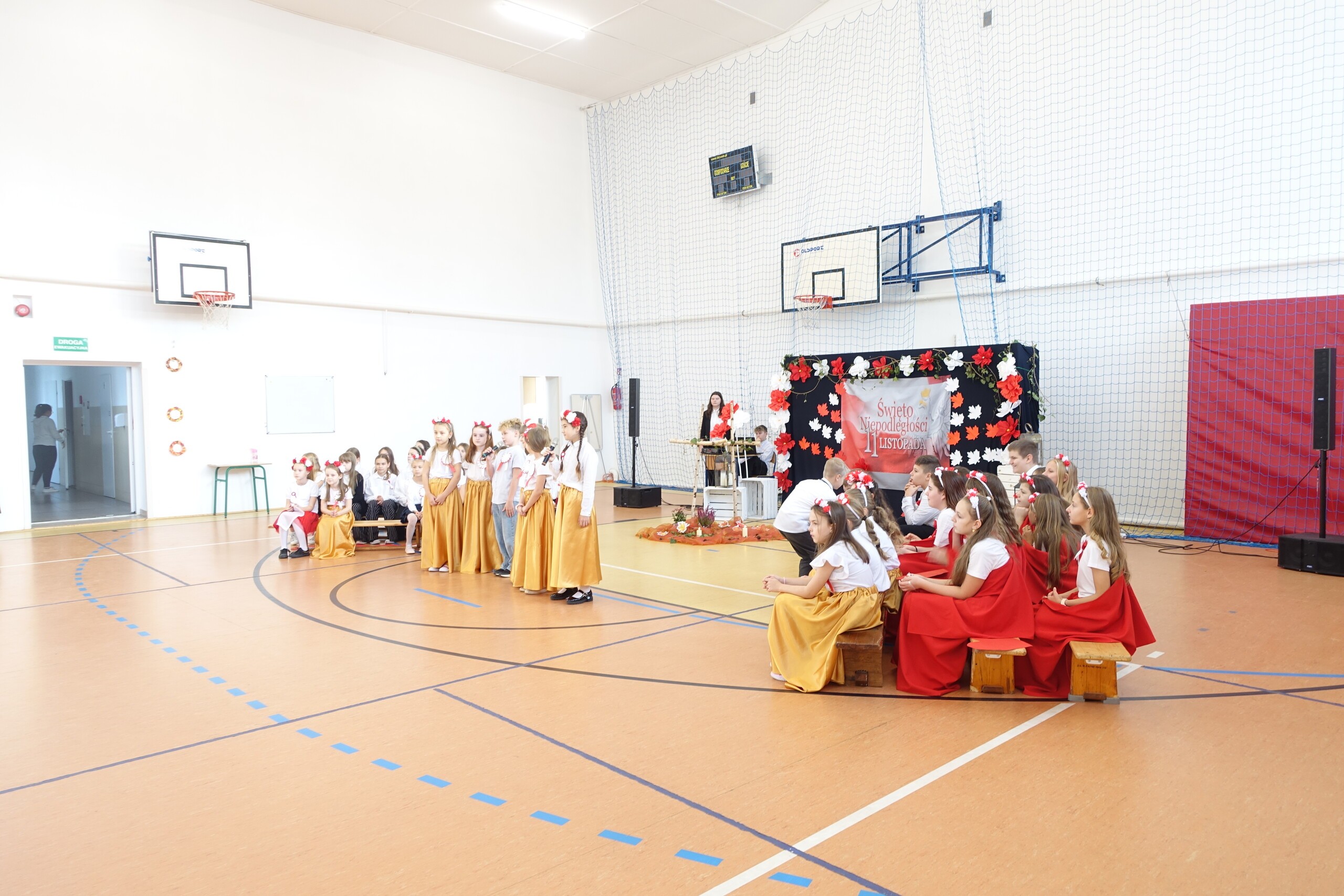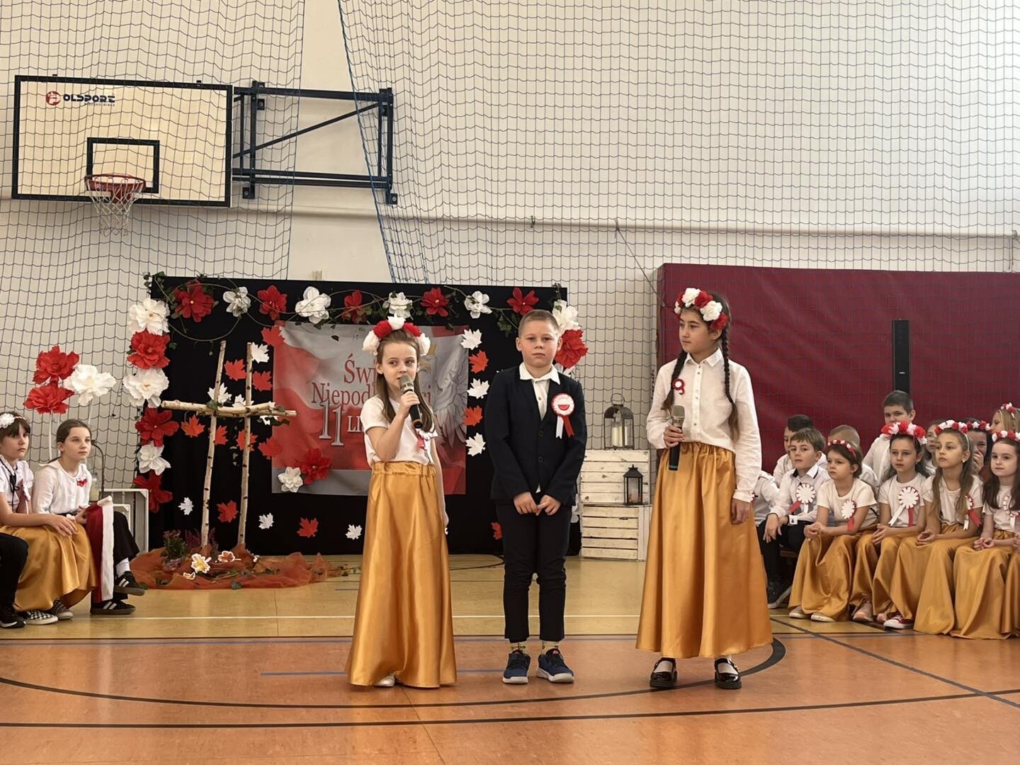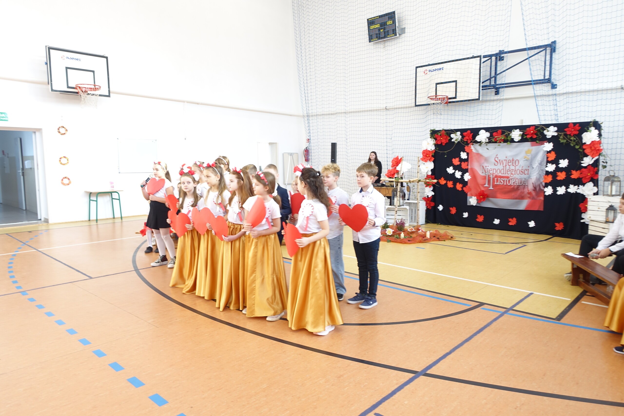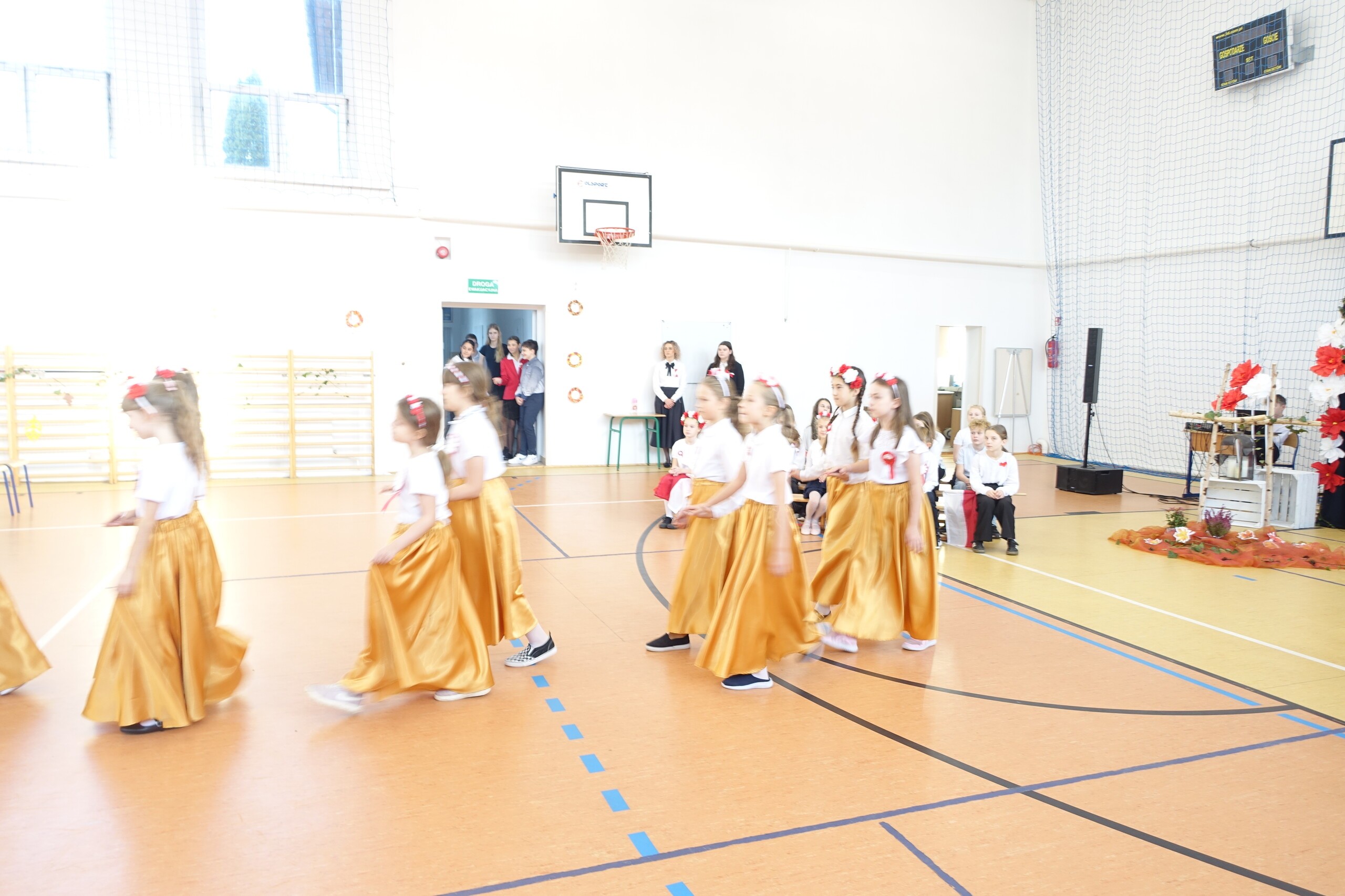 Uroczy występ przygotowały również Lena Drzazgowska i Hania Ptak wraz z chórem, śpiewając piosenkę „Co to jest niepodległość”, która szczególnie poruszyła młodszych uczniów.