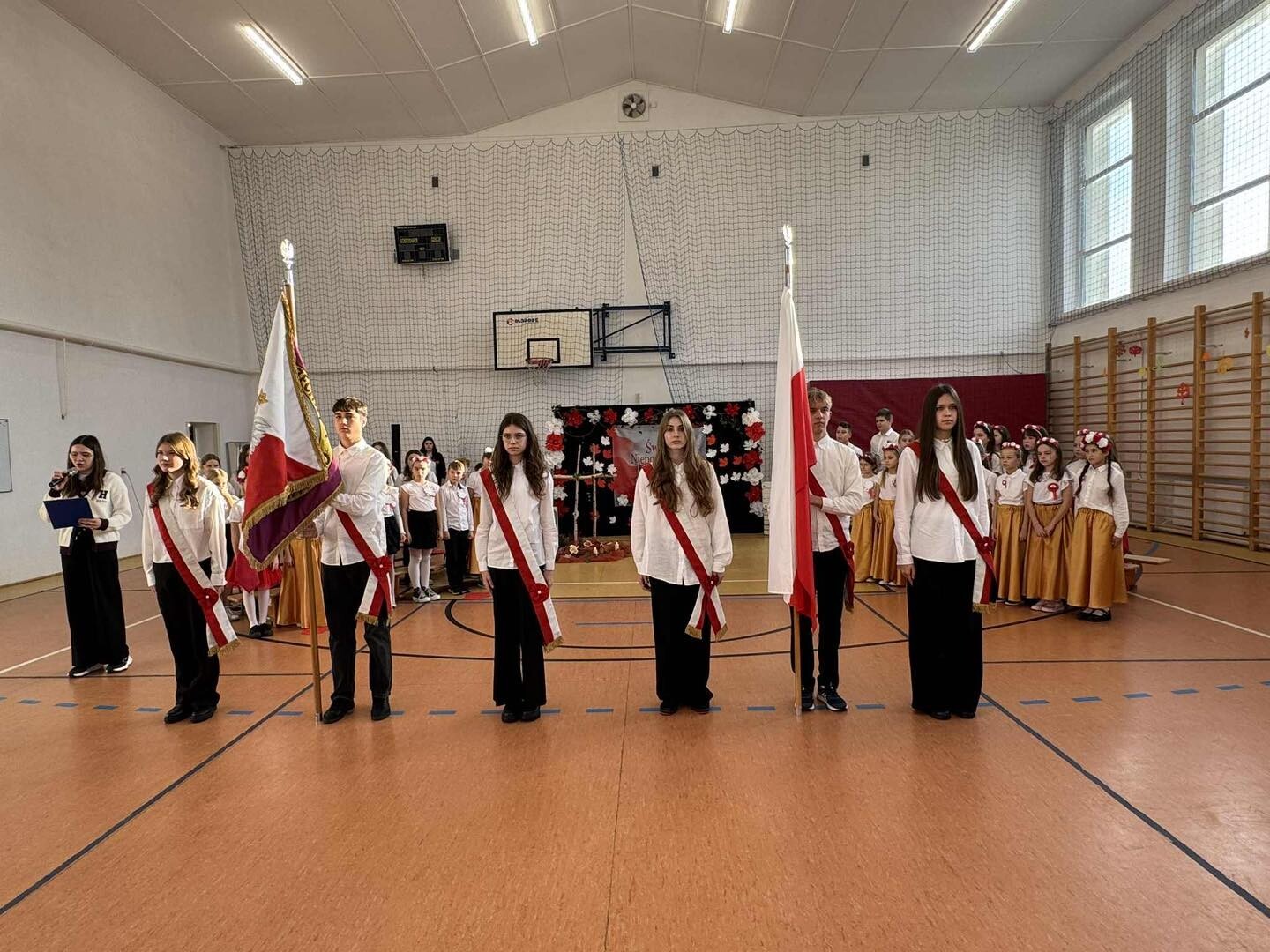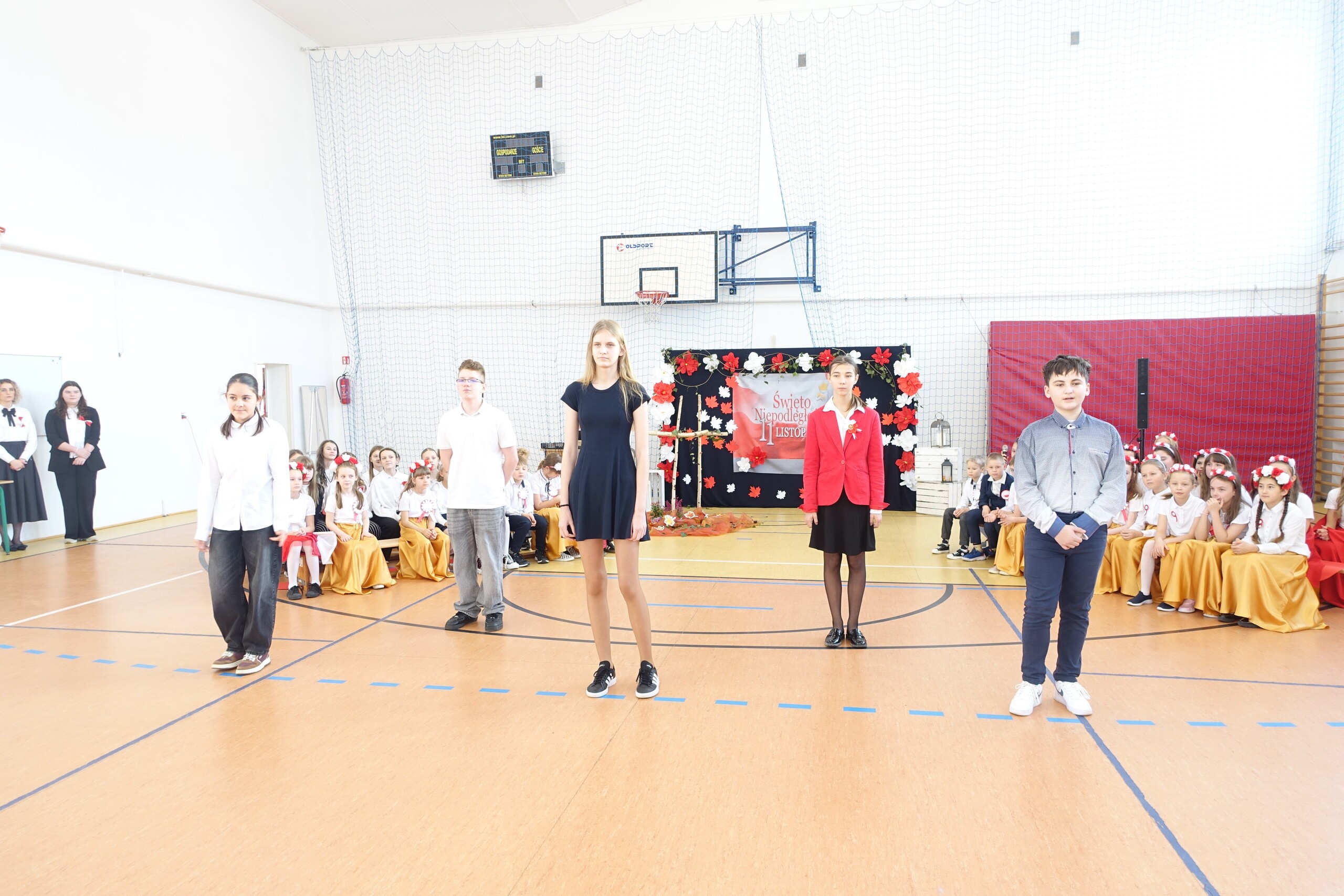 Całość uzupełnił rys historyczny w wykonaniu uczniów klasy IIa, IIIa i Va, który przypomniał nam drogę Polaków do wolności.