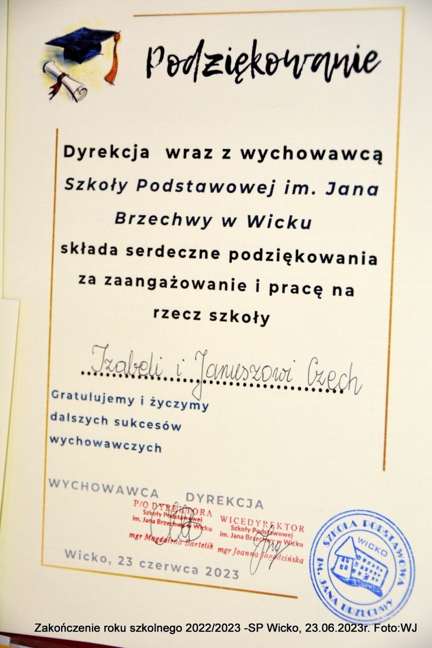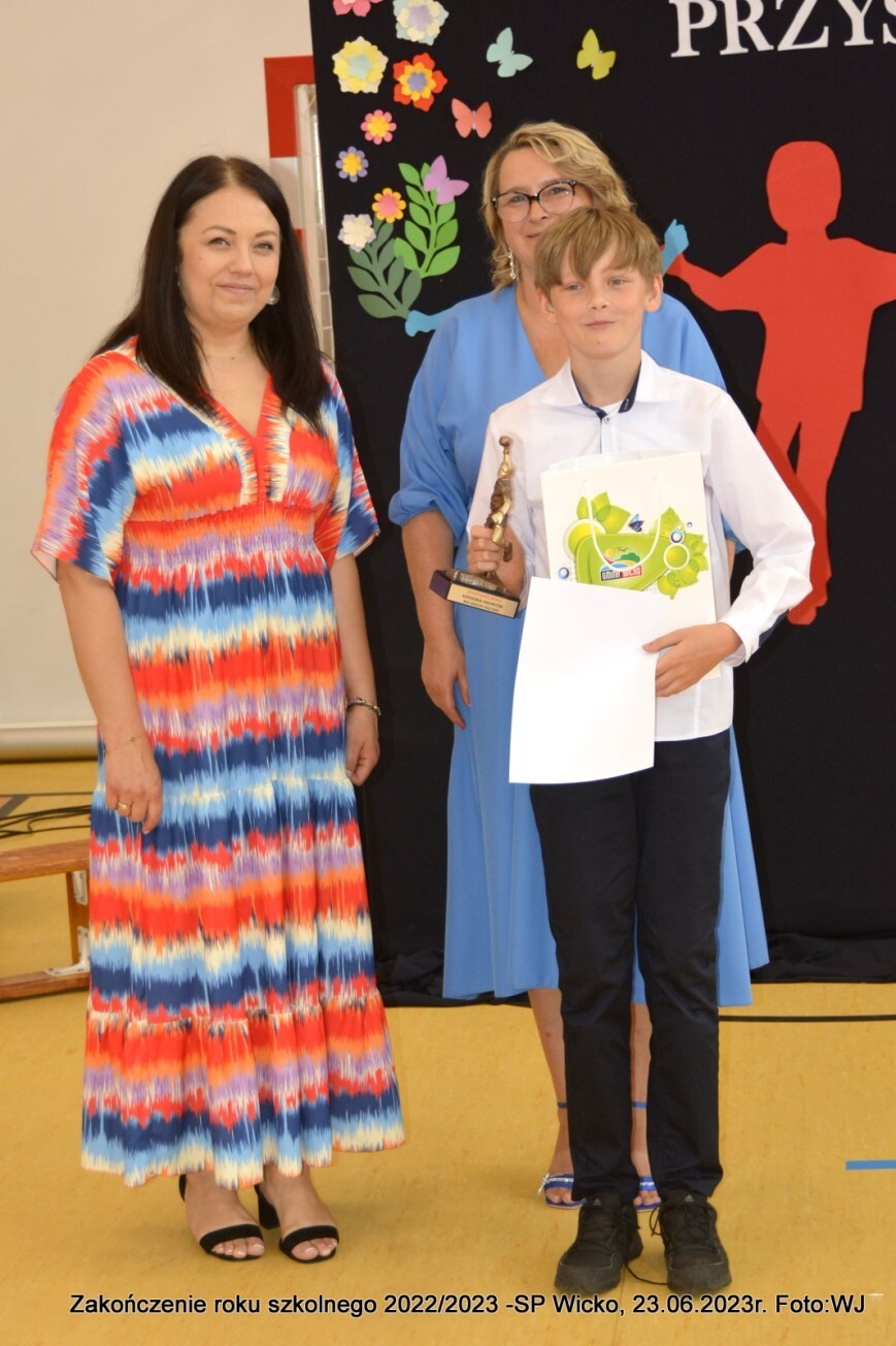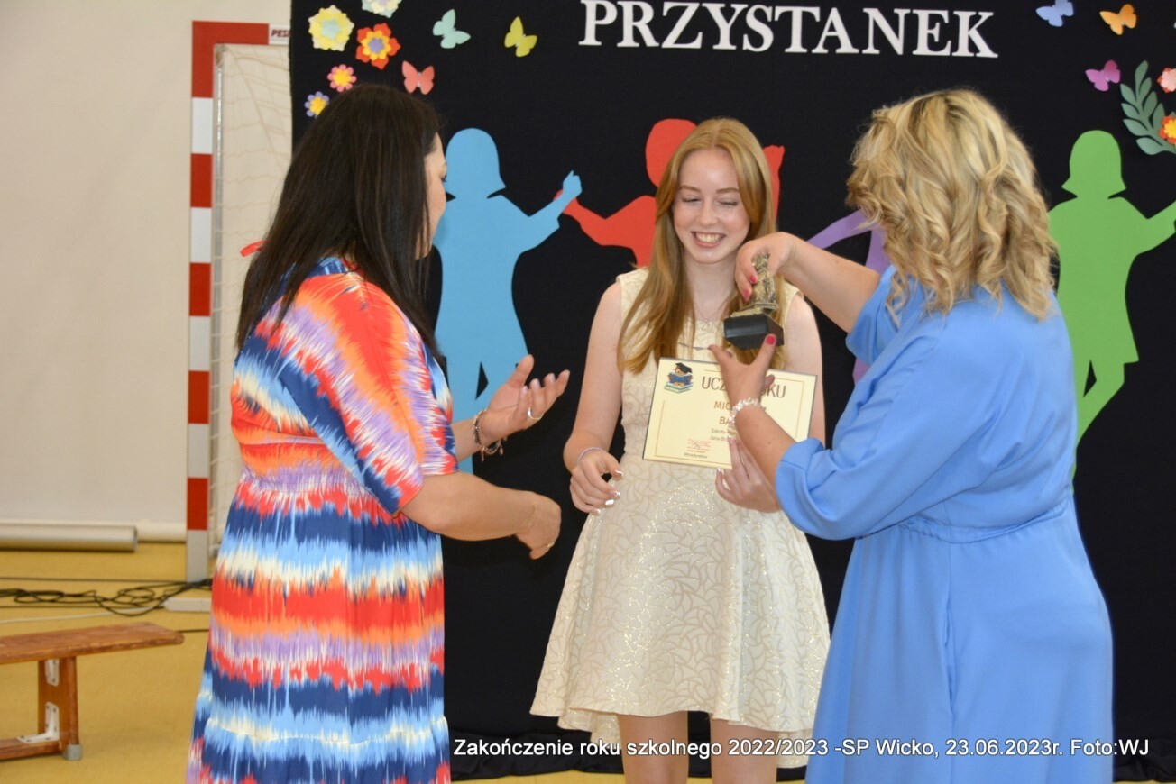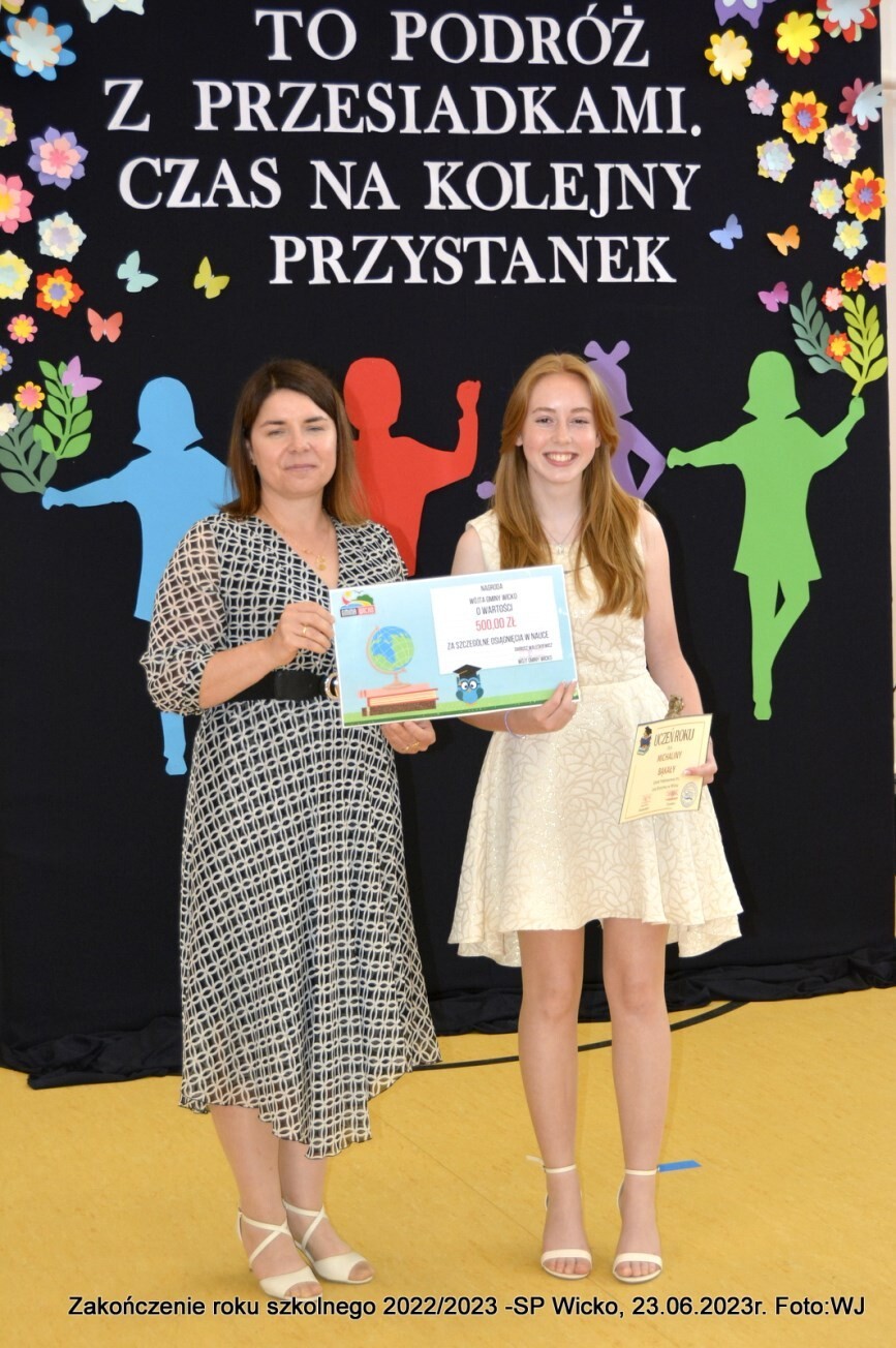 Podczas uroczystości, prócz tradycyjnego nagradzania najlepszych uczniów, dowiedzieliśmy się, kto w tym roku uzyskał tytuł najlepszego absolwenta, ucznia i sportowca. Pierwsze dwa zaszczytne tytuły - absolwenta i ucznia - przypadł w udziale uczennicy klasy VIIIC, Michalinie Bąkale. Natomiast najlepszym sportowcem okazał się Mateusz Waleśkiewicz z VA, a wśród dziewcząt - Aleksandra Grzegorczyk z VIIIB. Gratulujemy! Wszystkim naszym uczniom życzymy pięknych wakacji, a klasom I-VII mówimy: "do zobaczenia we wrześniu!".
