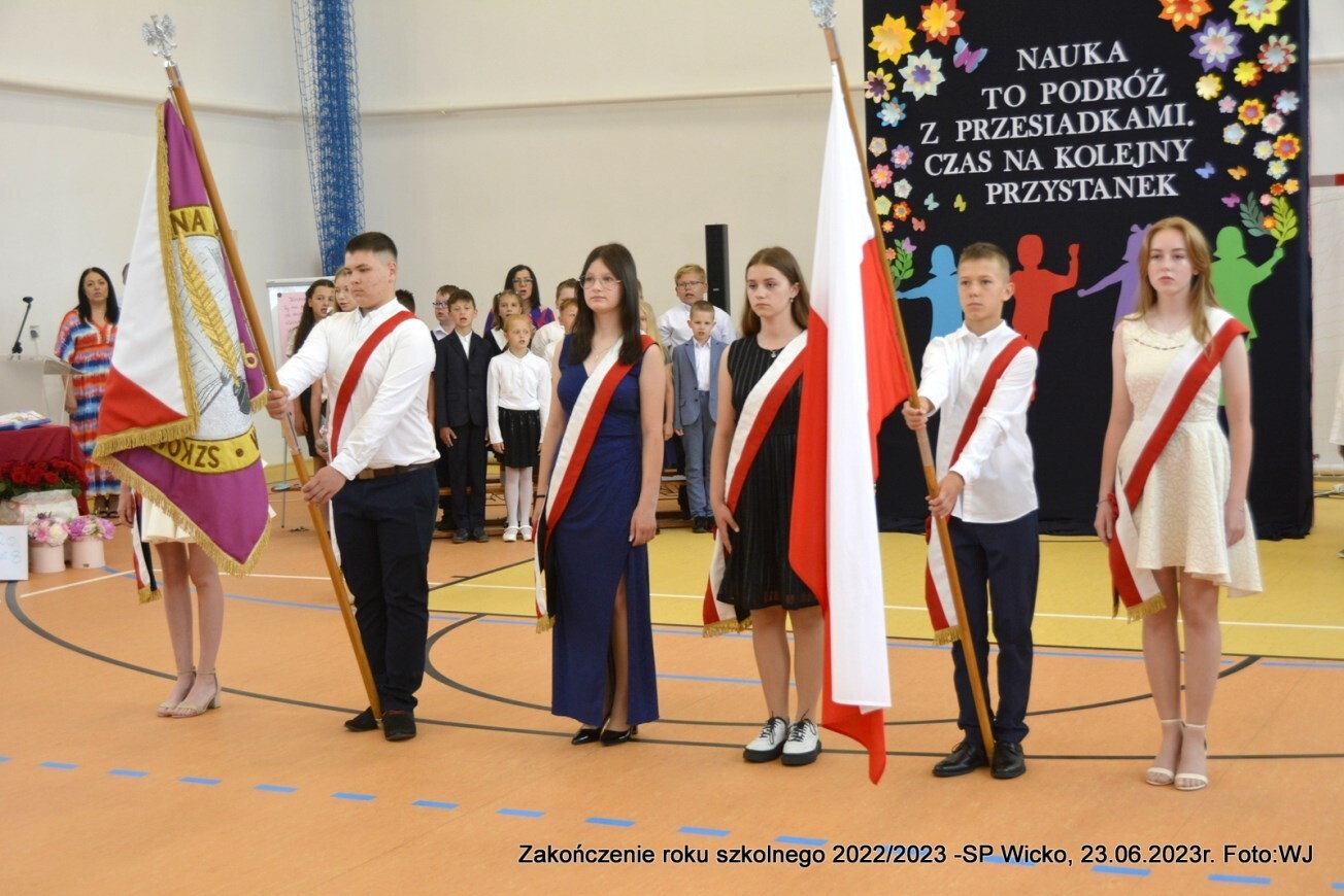"Nauka to podróż. Czas na kolejny przystanek" - pod takim hasłem pożegnaliśmy podczas uroczystego apelu naszych absolwentów oraz pozostałych uczniów w kończącym się właśnie roku szkolnym 2022/2023. Był czas na uśmiech podczas radosnego występu klas I-III, ale też było wzruszająco, gdy żegnaliśmy się z naszymi tegorocznymi absolwentami.
