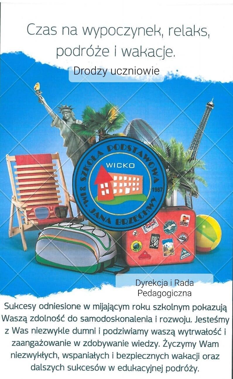 - Wakacyjne życzenia od Dyrekcji i Grona Pedagogicznego SP Wicko