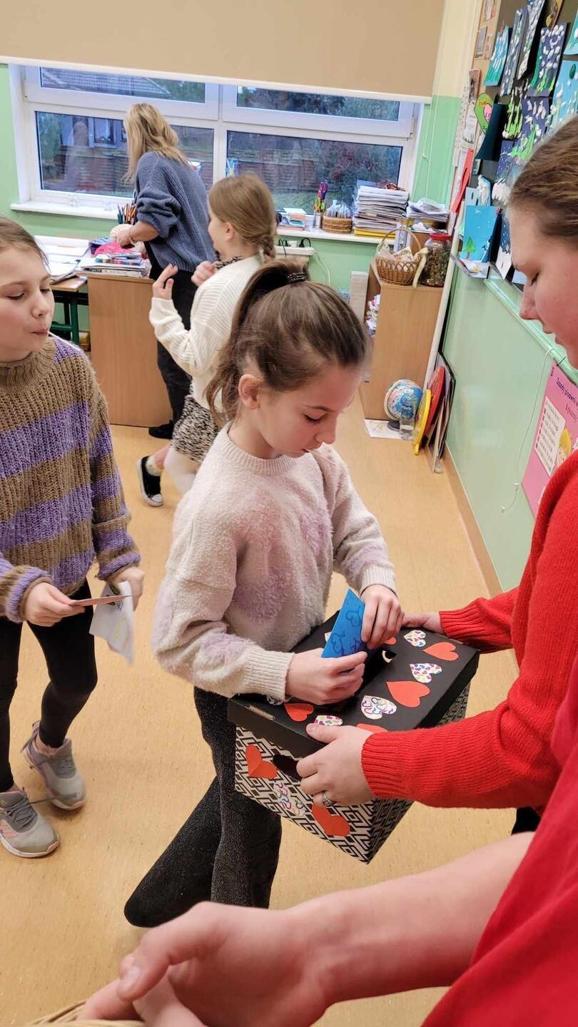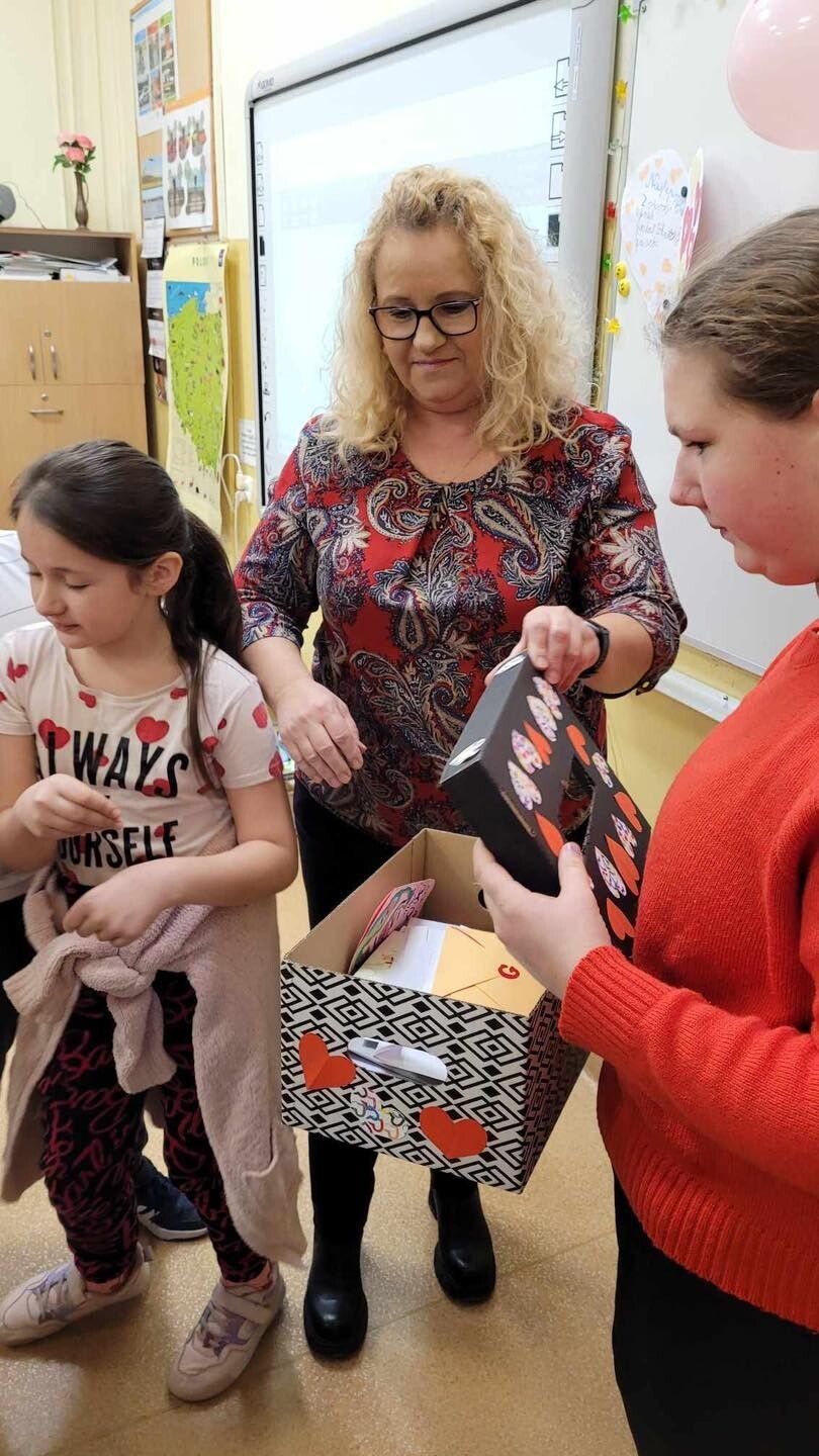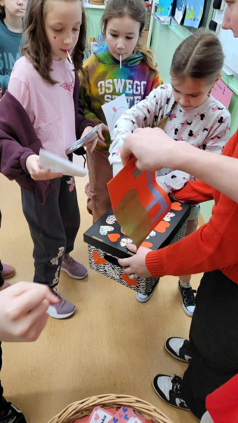 Każdy mógł wysłać kartkę walentynkową do swojej sympatii, koleżanki czy kolegi. Skrzynka pocztowa była pełna, więc uśmiech pojawił się na niejednej twarzy .