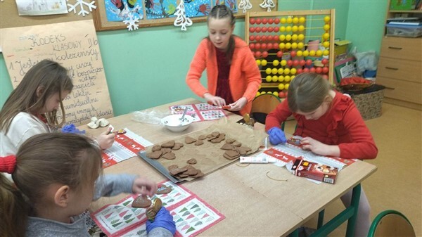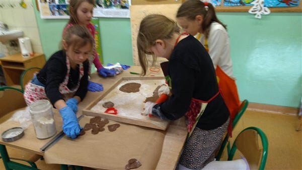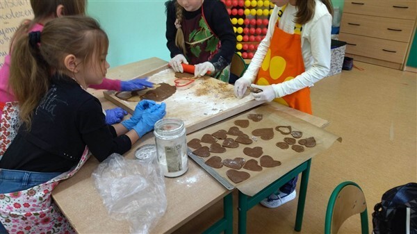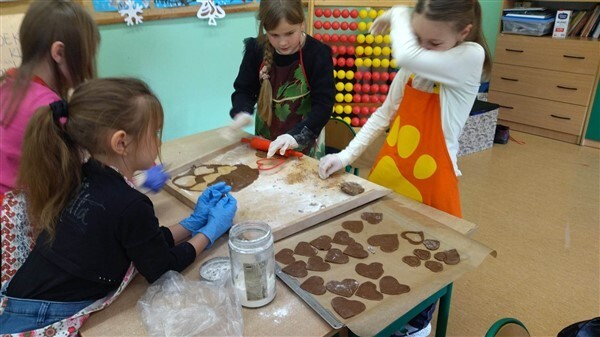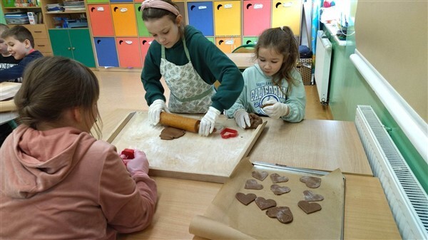 Uczniowie klasa IIB postanowili w Dniu Świętego Walentego przygotować pierniczki w kształcie serduszek. Z wielką radością wałkowały przygotowane wcześniej przez rodziców ciasto, wycinały foremkami różnej wielkości serduszka. Upieczone pierniczki dekorowały, mając do dyspozycji mnóstwo jadalnych ozdób i lukru. Nie obyło się bez zjedzenia choćby jednego ciasteczka, gdyż wspaniałe pierniczki swoim wyglądem i smakiem nęciły wszystkich. Pieczenie sprawiło dzieciom wielką radość.