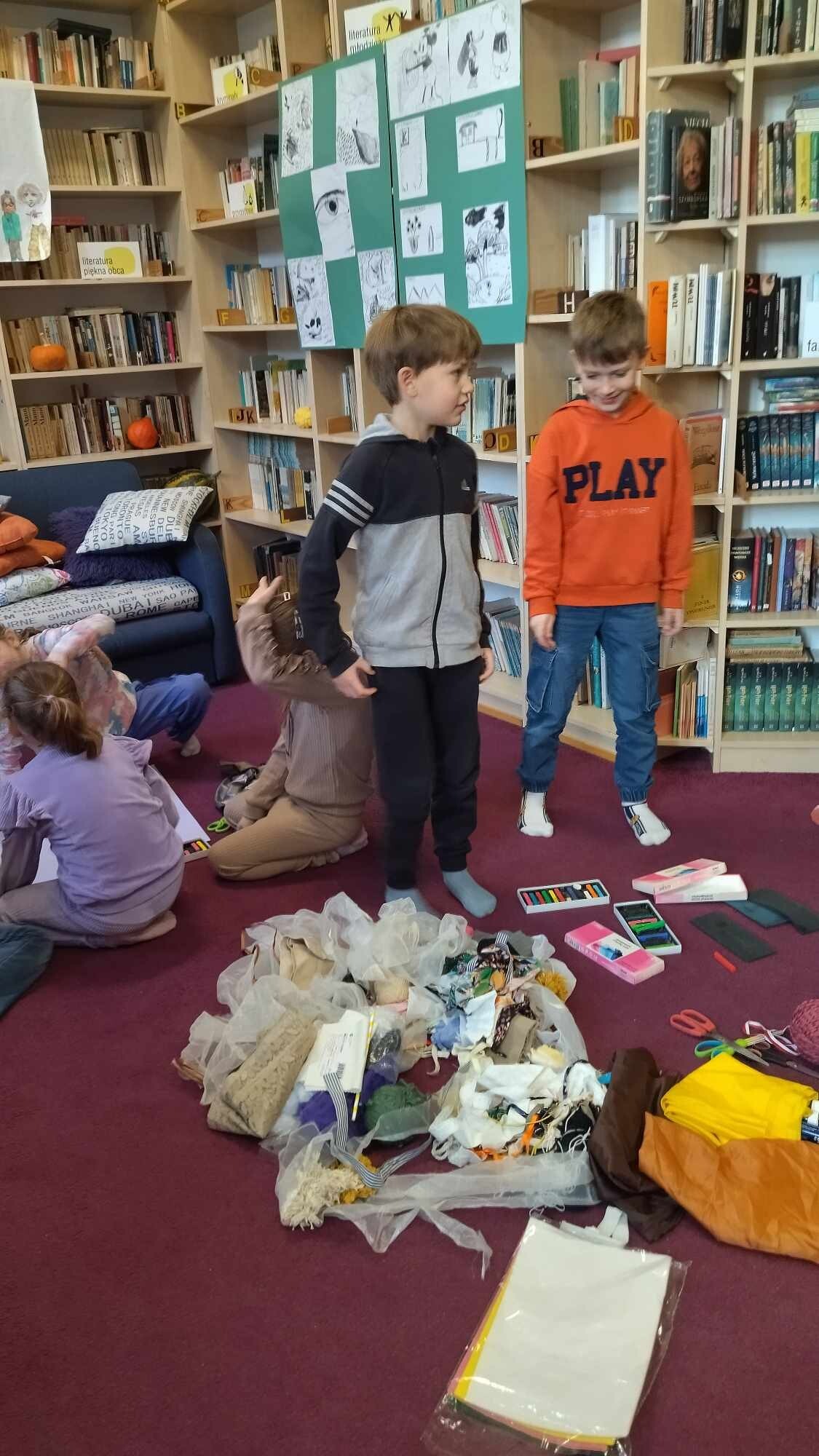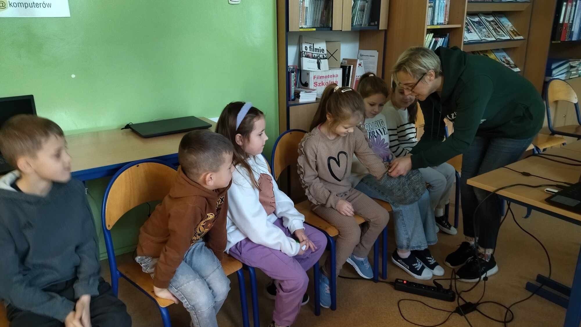 Dziś (15.11.2024) pierwszaki z klasy B kontynuowały swoje zajęcia w bibliotece szkolnej, poświęcone twórczości Joanny Porazińskiej. Już wcześniej uczestniczyły w Zaduszkach Literackich. Piątkowe warsztaty utrwalały w działaniu ich wiedzę o autorce "Pamiętnika Czarnego Noska". Dzieci, podzielone na dwie drużyny, wspólnie tworzyły dwa portrety głównych bohaterek "Baśni o dwunastu miesiącach": Zuzi o dobrym sercu oraz jej złej siostry Rózi. Uczniowie wykazali się wielką kreatywnością w tworzeniu pozytywnych i negatywnych wizerunków baśniowych, potrafili również trafnie określić główne cechy charakteru baśniowych postaci, a także dokonać porównania ich zachowania. Powstały oryginalne prace plastyczne z najróżniejszych materiałów: kolorowego papieru, pasteli, ścinków materiałowych, koralików, włóczki, nitek, watoliny i guzików. Warte podkreślenia jest to, że podczas tworzenia prac warsztatowych dzieci potrafiły zgodnie współpracować, wzajemnie się wspierając i wspólnie podejmując decyzje o tworzeniu baśniowych wizerunków. Warsztaty literackie w Bibliotece Szkolnej w Wicku przygotowały Mirosława Mordaszewska, wychowawczyni kl. IB, wraz z bibliotekarką szkolną, Magdaleną Kubiak.