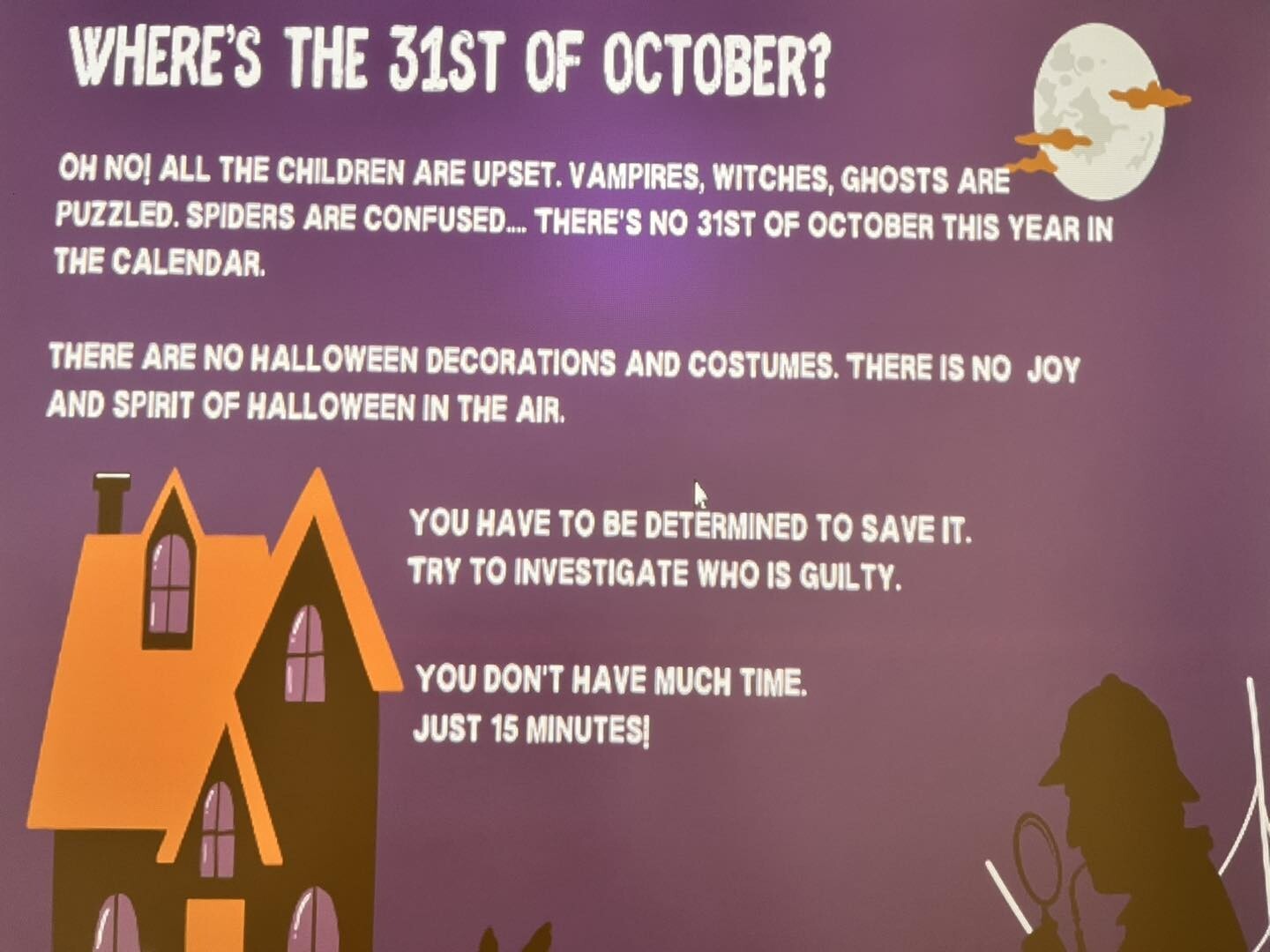 Z okazji Halloween zadaniem uczniów na lekcjach języka angielskiego było uratowanie dnia 31 października, ponieważ ktoś ukradł ten dzień z kalendarza.