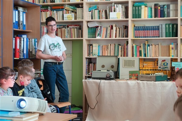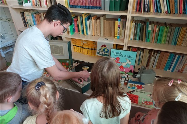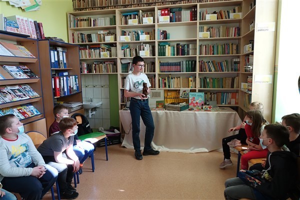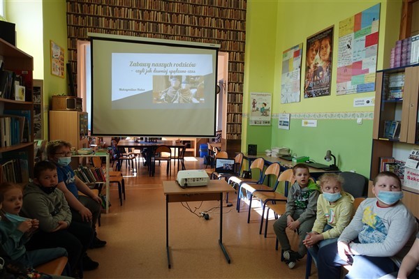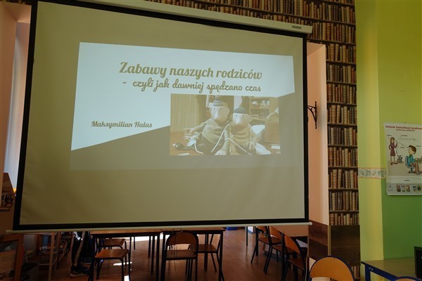 Tym razem zaproponowanym przez naszego ósmoklasistę tematem piątkowych zajęć w Bibliotece Szkolnej w Wicku były zabawki i sposoby na rekreację pradziadków, dziadków i rodziców dzisiejszych uczniów szkoły podstawowej, czyli tych pokoleń, których dzieciństwo przypadło na czasy wojenne i powojenne XX wieku.