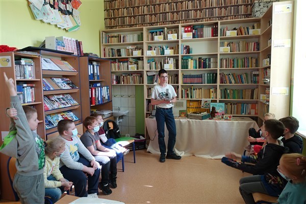 W piątek, 25 marca 2022 roku, Maksymilian Halas, uczeń klasy VIIIA, przeprowadził autorskie zajęcia historyczne z elementami edukacji muzycznej dla drugoklasistów kl. A i B SP Wicko. To już tradycja, że młody historyk przygotował zajęcia dla młodszych klas. W I semestrze tego roku były to klasy trzecie, teraz przyszedł czas na uczniów kl. II. Dużą wartością edukacyjną i historyczną tych zajęć jest możliwość skorzystania z eksponatów z domowych zbiorów Maksymiliana, który niestrudzenie tropi zagadki i ślady przodków nie tylko ziemi lęborskiej.
