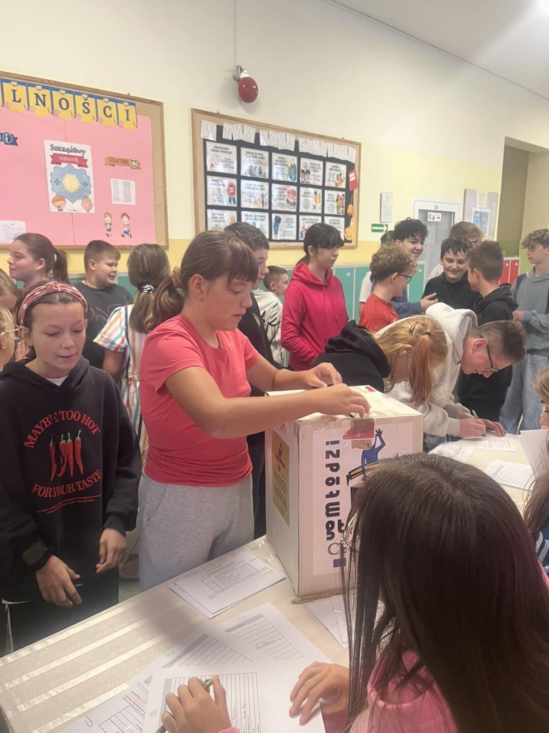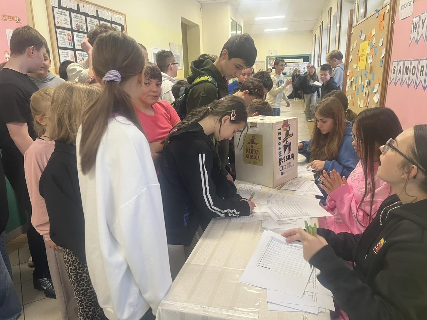 Dziś (30.09.2025) uczniowie klas IV-VIII wybierali zarząd Samorządu Uczniowskiego oraz jego opiekunów. Wybory były - jak zawsze w naszej szkole - powszechne, równe i tajne, a frekwencja, jak widać na zdjęciach, była wysoka, bo wiemy, że każdy głos ma znaczenie!