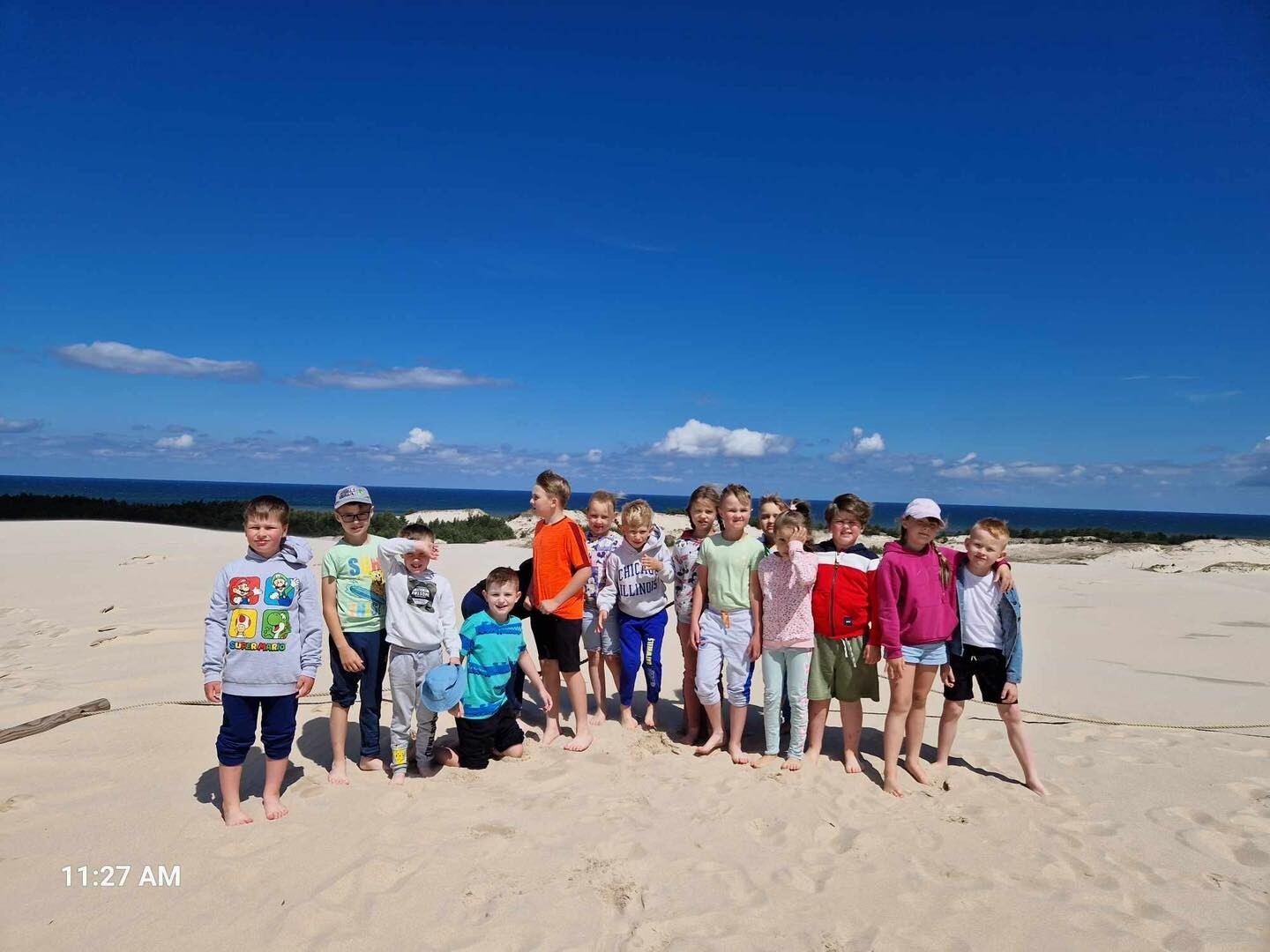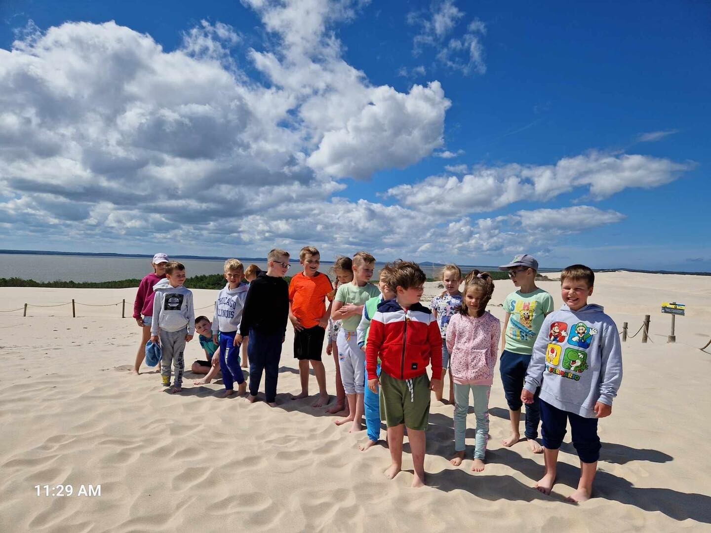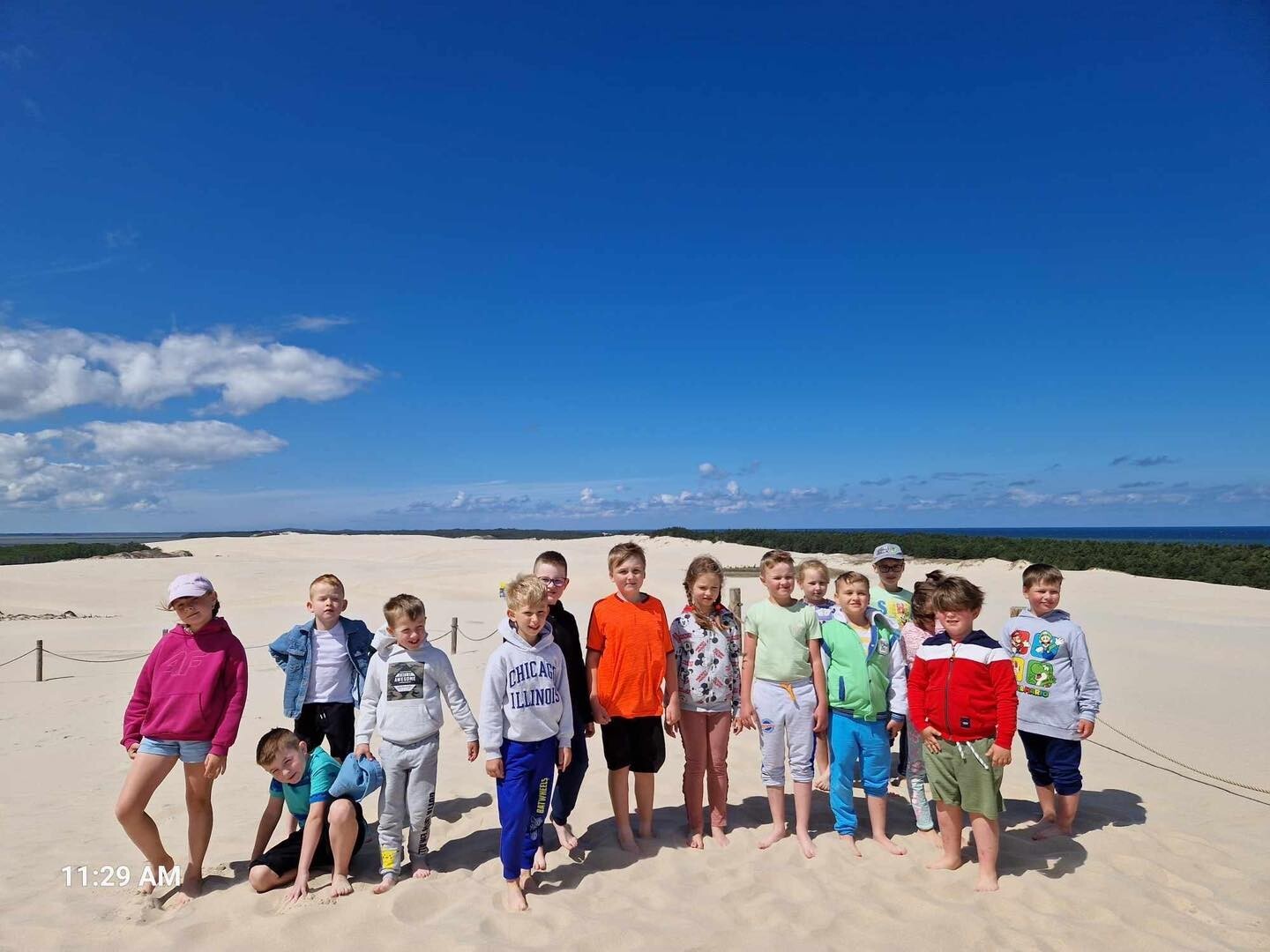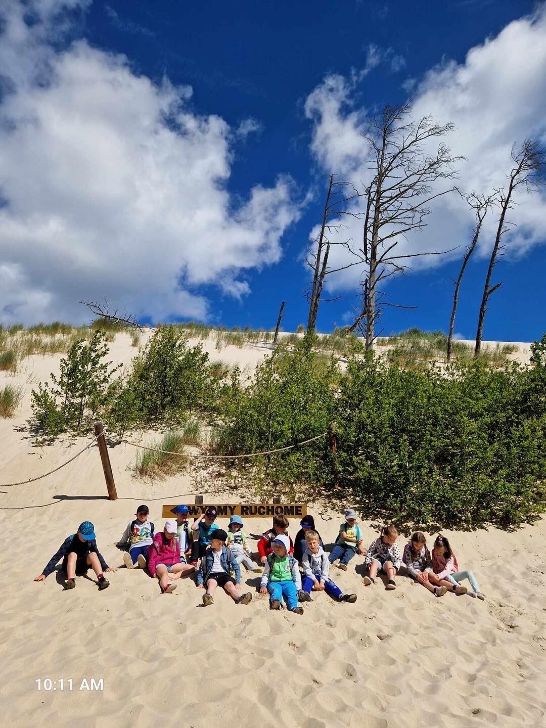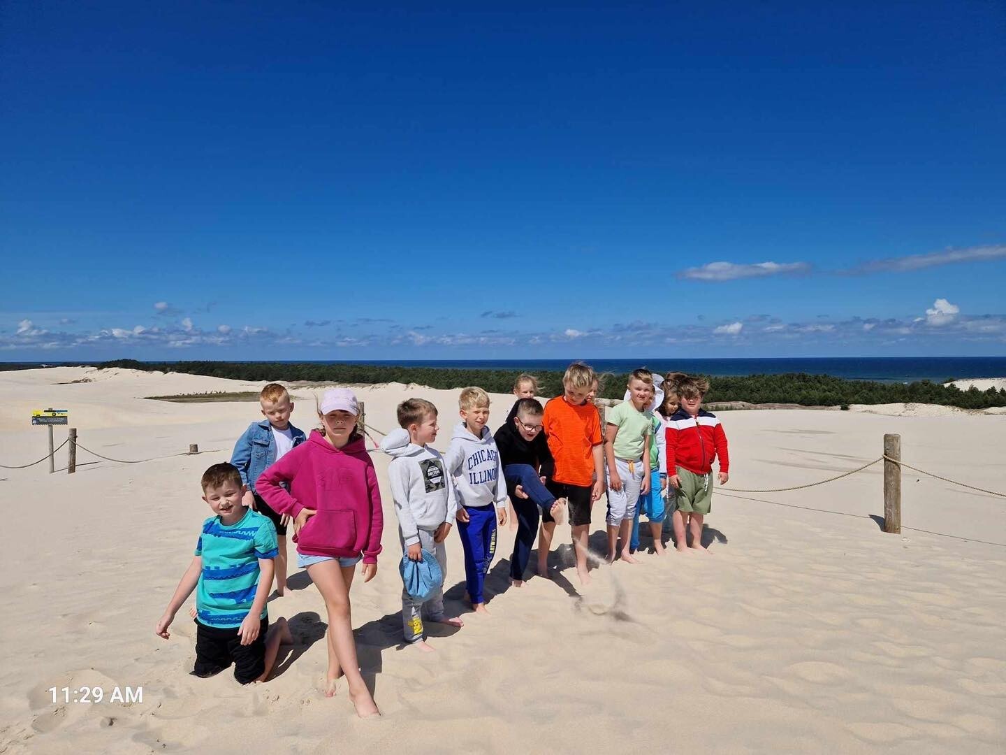 Uczniowie klasy Ib wybrali się w poniedziałek, 10 czerwca 2024, na swoją wyczekaną wycieczkę klasową. Pojechaliśmy do Rąbki, by z bliska zobaczyć Wydmę Łącką. Naszą wiedzę pogłębiliśmy, słuchając opowieści przewodnika, którym podczas naszej wyprawy był Pan Stanisław Redzik. Mieliśmy okazję posłuchać opowieści historycznych, przyrodniczych, a także śmiesznych historii. Pobawiliśmy się na plaży, poturlaliśmy się z góry i zrobilibyśmy piękne zdjęcia.