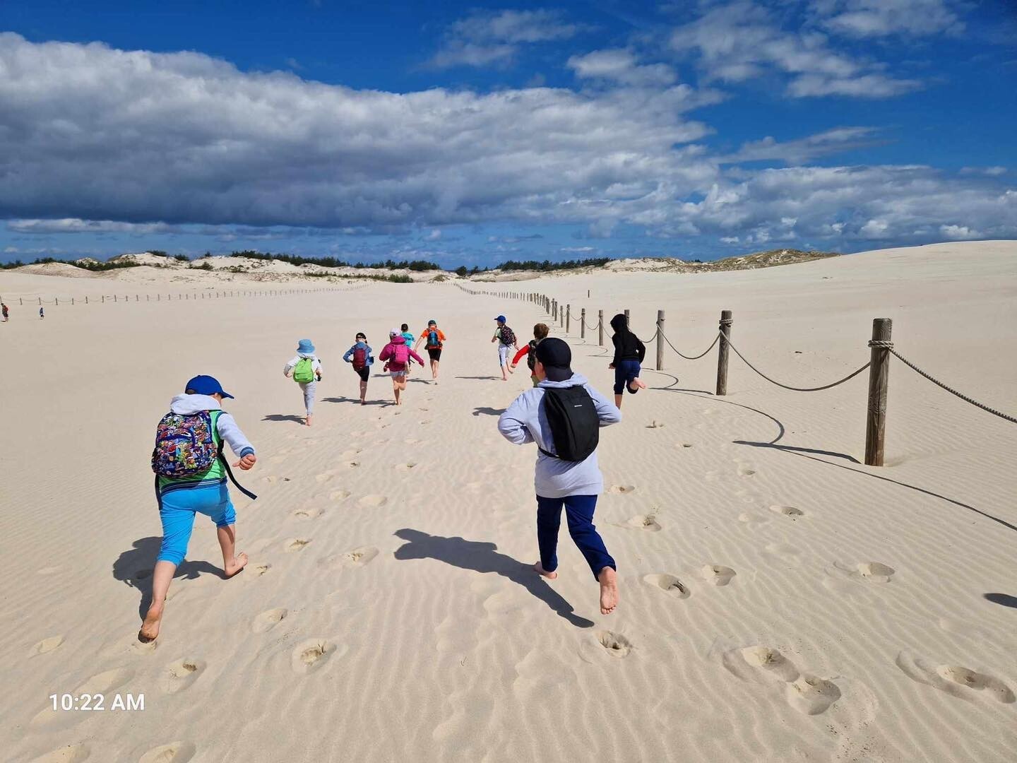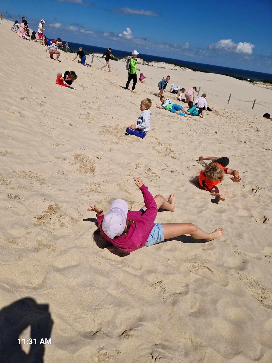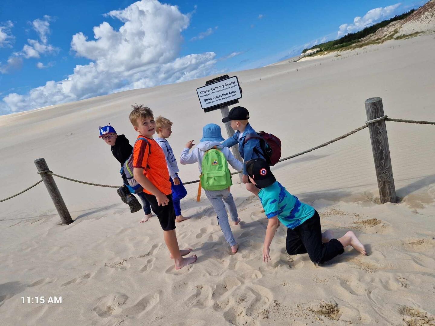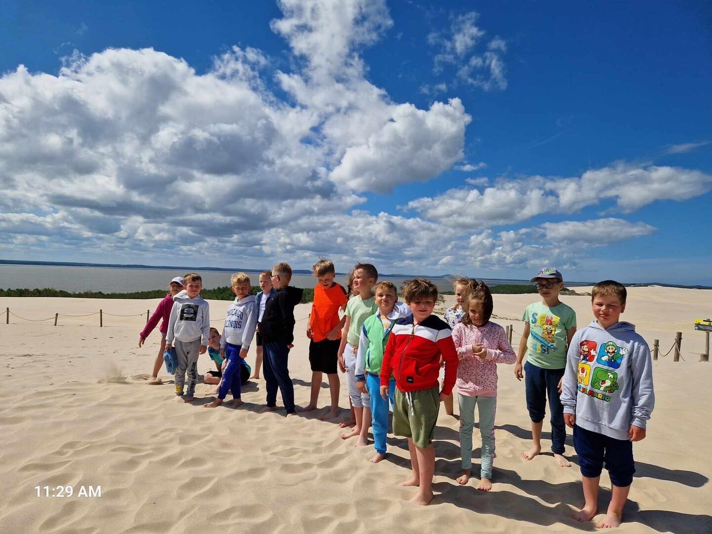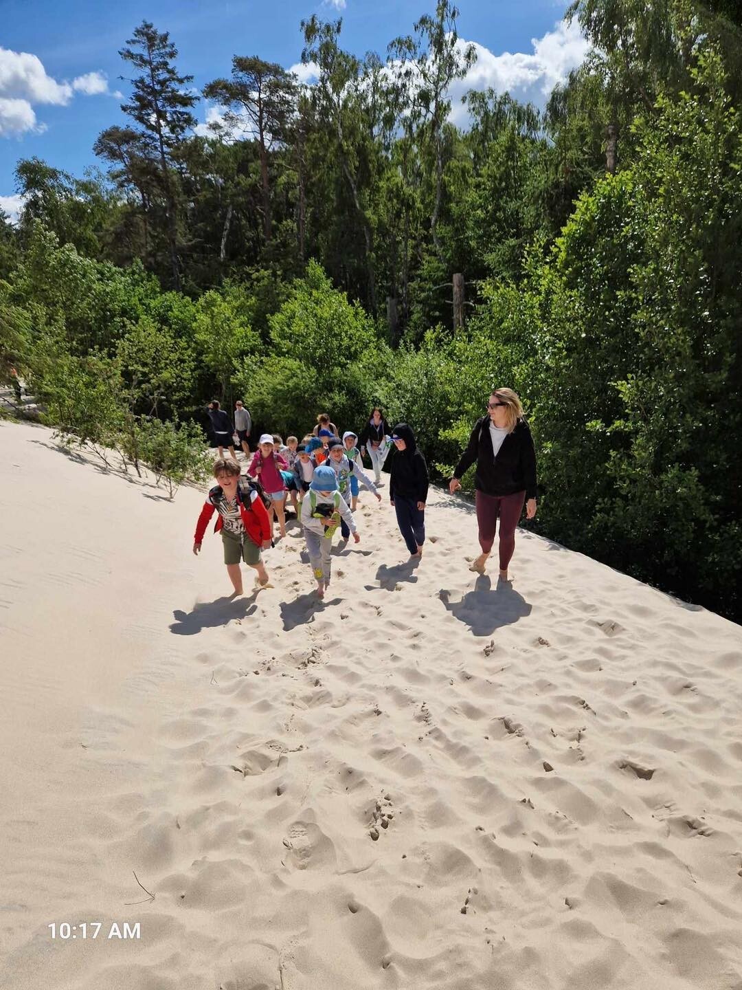 Uczniowie klasy Ib wybrali się w poniedziałek, 10 czerwca 2024, na swoją wyczekaną wycieczkę klasową. Pojechaliśmy do Rąbki, by z bliska zobaczyć Wydmę Łącką. Naszą wiedzę pogłębiliśmy, słuchając opowieści przewodnika, którym podczas naszej wyprawy był Pan Stanisław Redzik. Mieliśmy okazję posłuchać opowieści historycznych, przyrodniczych, a także śmiesznych historii. Pobawiliśmy się na plaży, poturlaliśmy się z góry i zrobilibyśmy piękne zdjęcia.