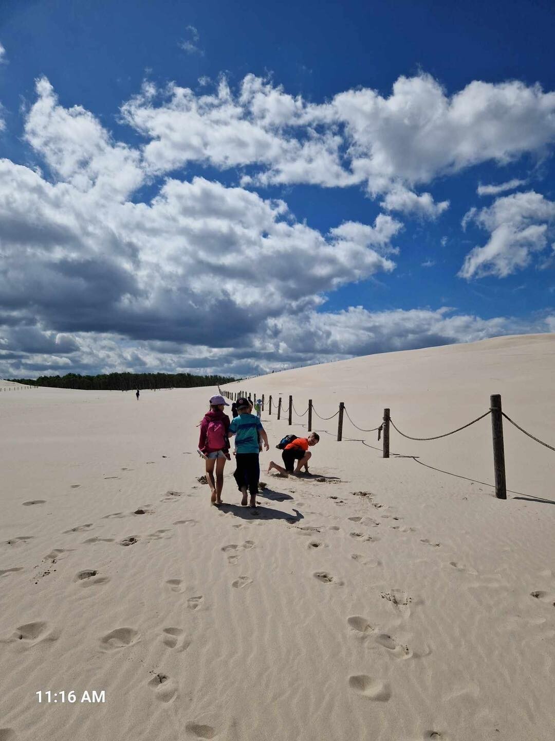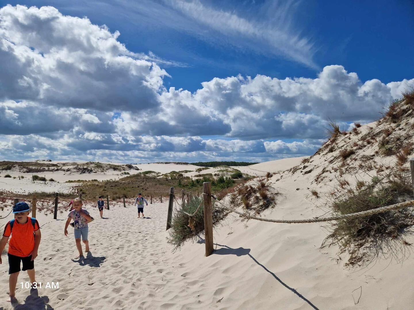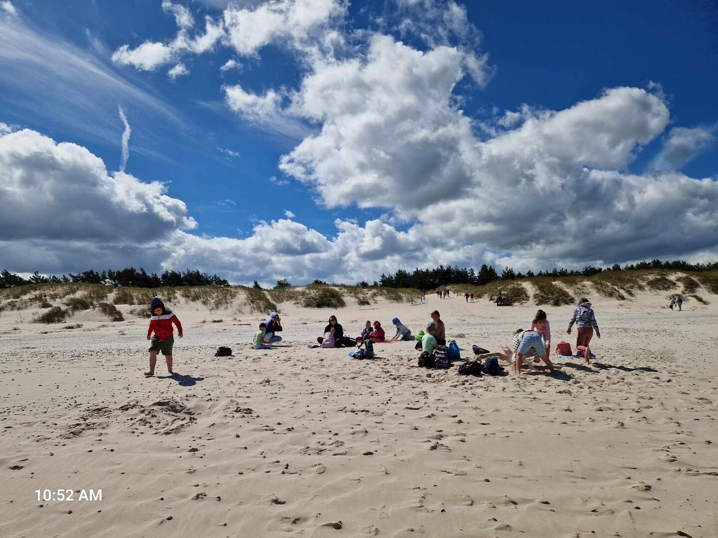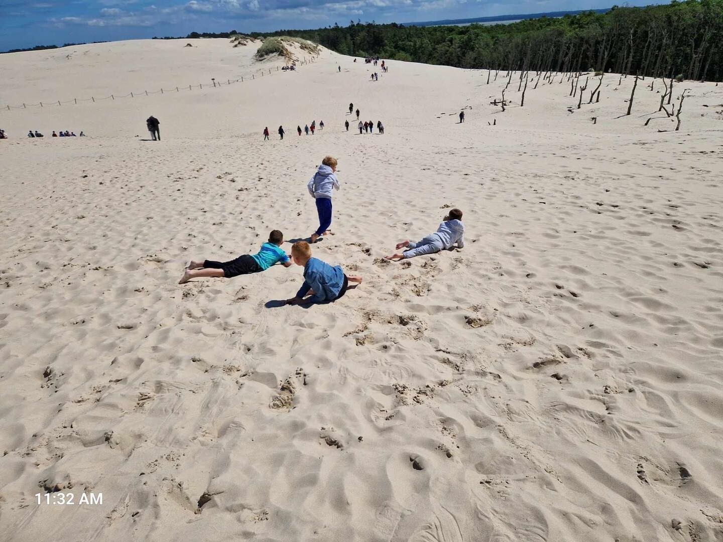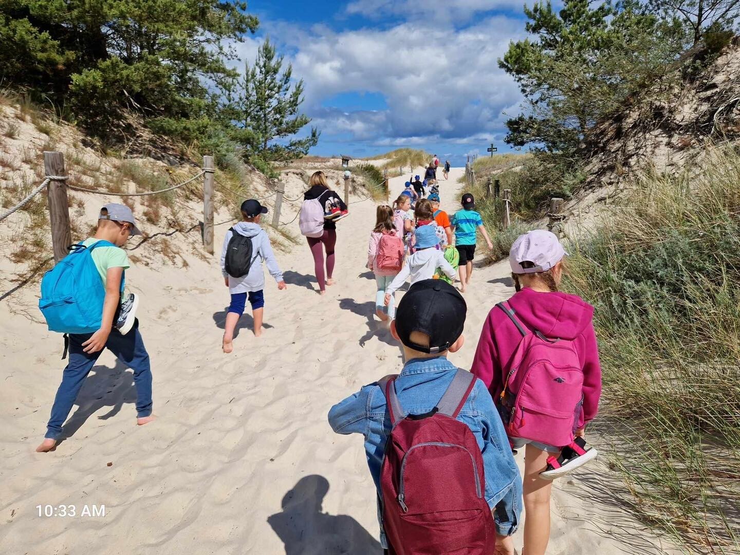 Uczniowie klasy Ib wybrali się w poniedziałek, 10 czerwca 2024, na swoją wyczekaną wycieczkę klasową. Pojechaliśmy do Rąbki, by z bliska zobaczyć Wydmę Łącką. Naszą wiedzę pogłębiliśmy, słuchając opowieści przewodnika, którym podczas naszej wyprawy był Pan Stanisław Redzik. Mieliśmy okazję posłuchać opowieści historycznych, przyrodniczych, a także śmiesznych historii. Pobawiliśmy się na plaży, poturlaliśmy się z góry i zrobilibyśmy piękne zdjęcia.