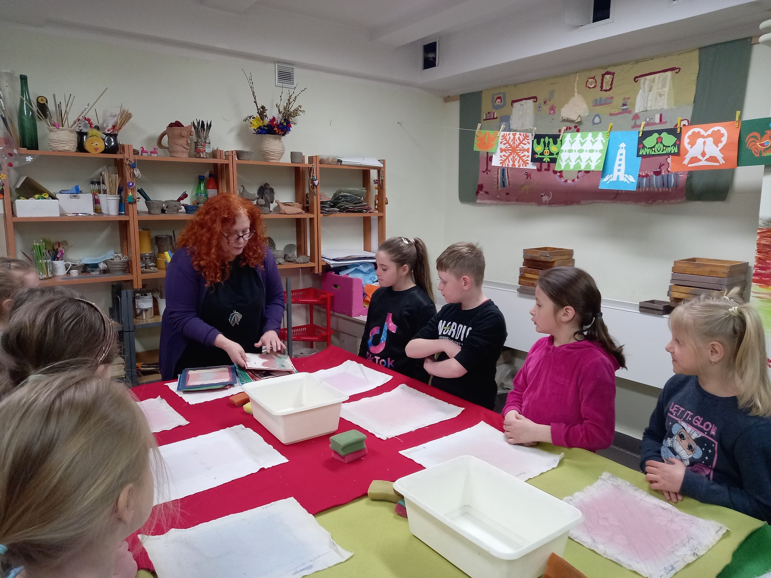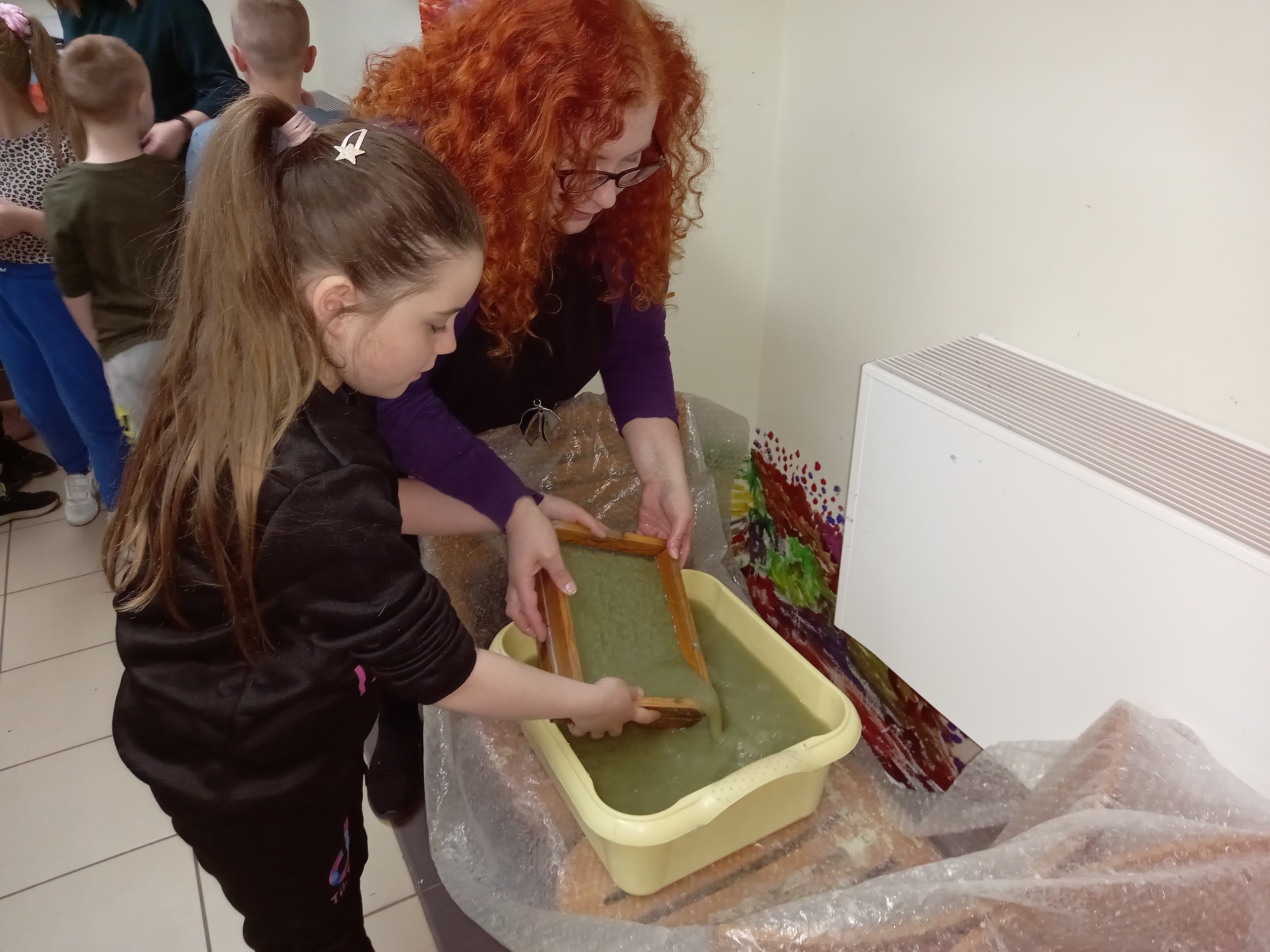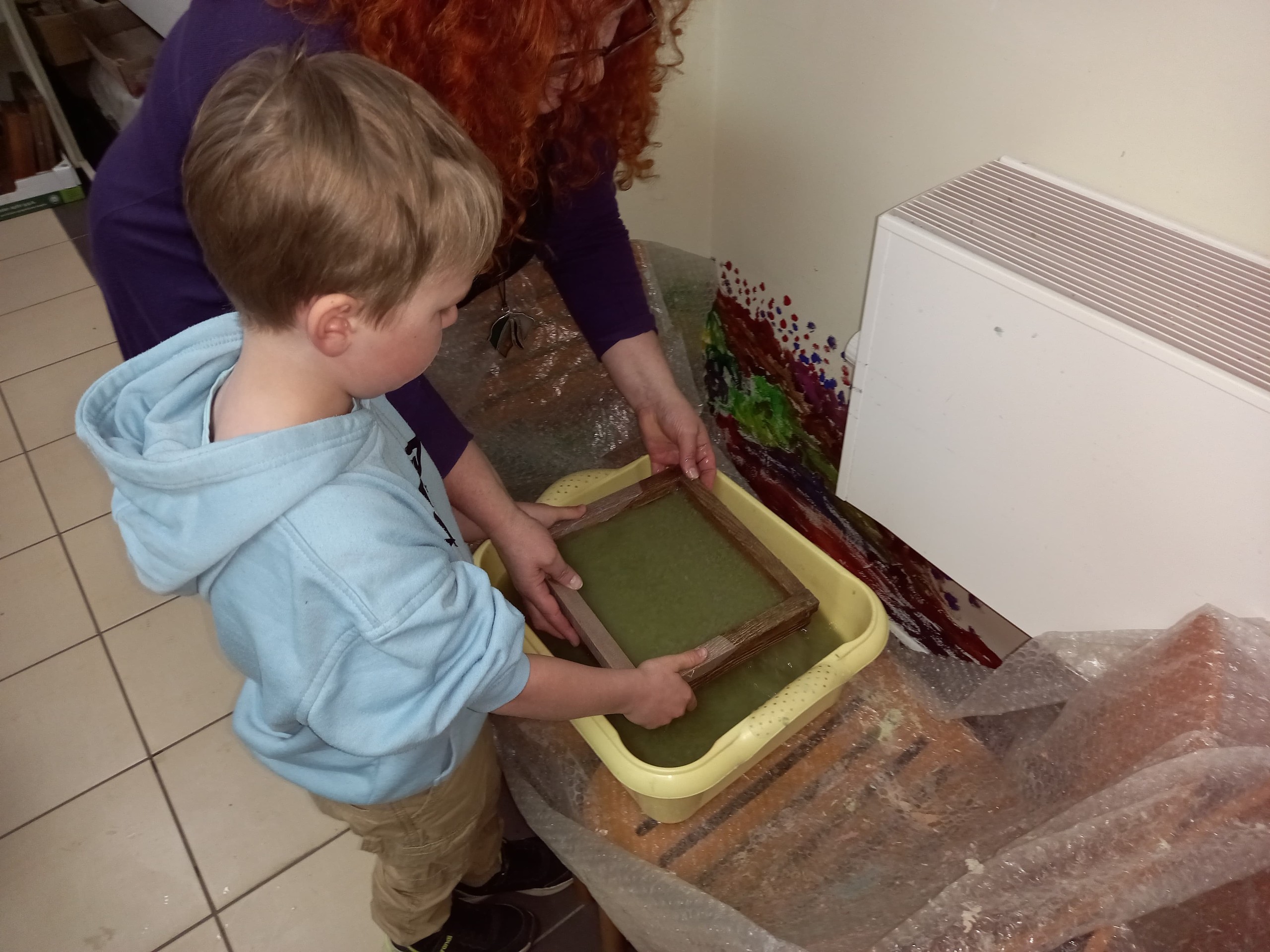 Uczniowie klasy Ia wybrali się w środę (27.04.2022) na wycieczkę do Lęborka. Pierwszym punktem naszego programu były warsztaty czerpania papieru w Muzeum. Warsztaty miały na celu przybliżenie dzieciom historii papiernictwa w połączeniu z dobrą zabawą. Efektem pracy dzieci były piękne kartki ozdobione pomysłowymi wzorami, często florystycznymi.