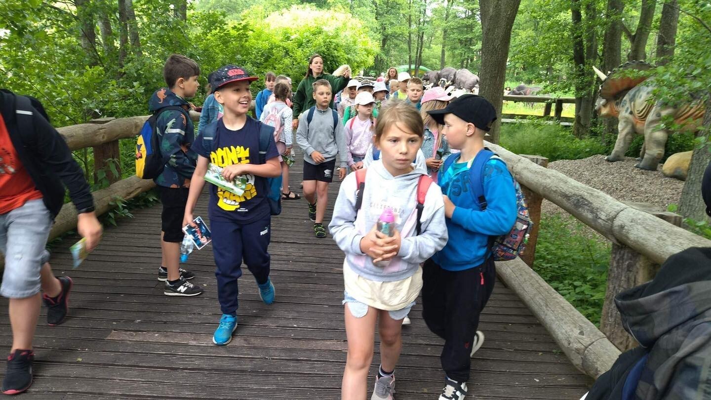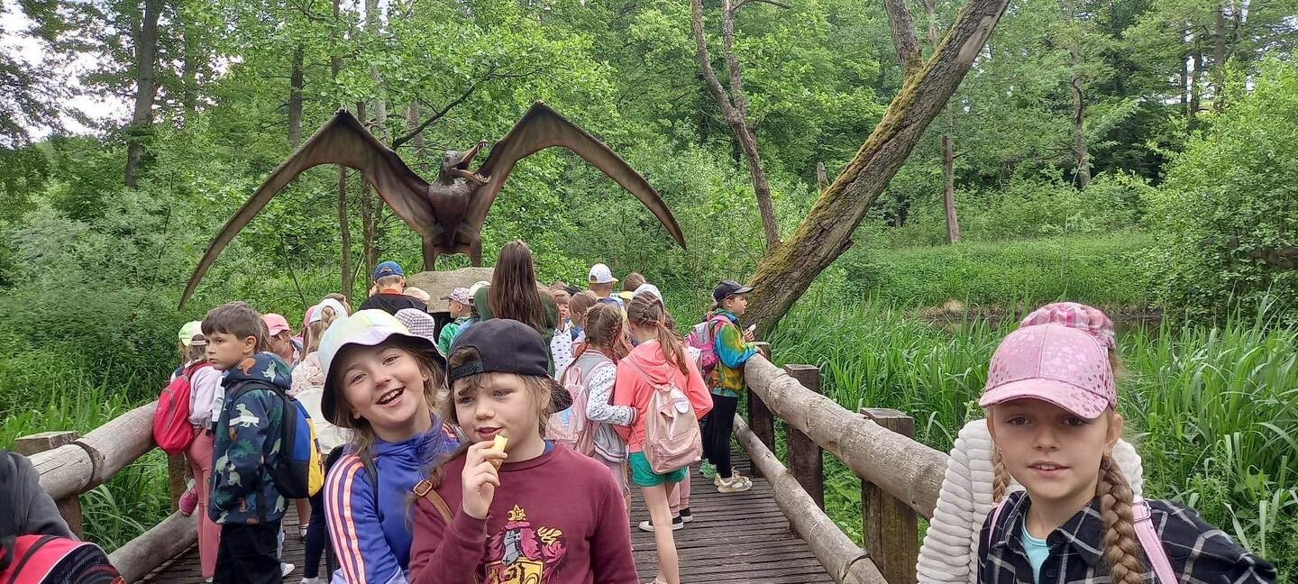 We wtorek, 13 czerwca 2023, uczniowie klas drugich odbyli wycieczkę do Parku Ewolucji w Sławotówku. Dzięki wizycie w Parku dzieci przeniosły się miliony lat wstecz, do początków istnienia na ziemi, do czasów człowieka pierwotnego czy do Starożytnego Egiptu. Odbyły również podwodną podróż wirtualnym batyskafem, która dostarczyła mnóstwo emocji. Dzień był pełen wrażeń i wspaniałej wspólnej zabawy.