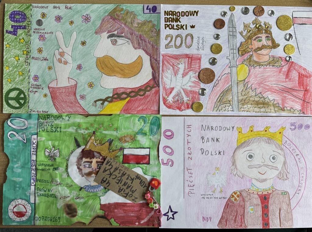 Z okazji 1000-lecia koronacji Bolesława Chrobrego zorganizowaliśmy szkolny konkurs plastyczny na projekt nowoczesnego banknotu z wizerunkiem naszego pierwszego króla. Uczniowie wykazali się ogromną kreatywnością i wyobraźnią – dziękujemy za każdą pracę!
