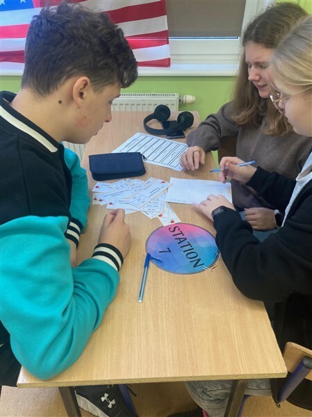 W klasach starszych lekcje były prowadzone także metodą stacji. Jednak tutaj zadania były trudniejsze i polegały m. in. na sprawdzeniu znajomosci funkcji językowych, odszyfrowaniu słów, znalezieniu błędów w tekstach czy wybraniu poprawnej gramatycznie odpowiedzi.