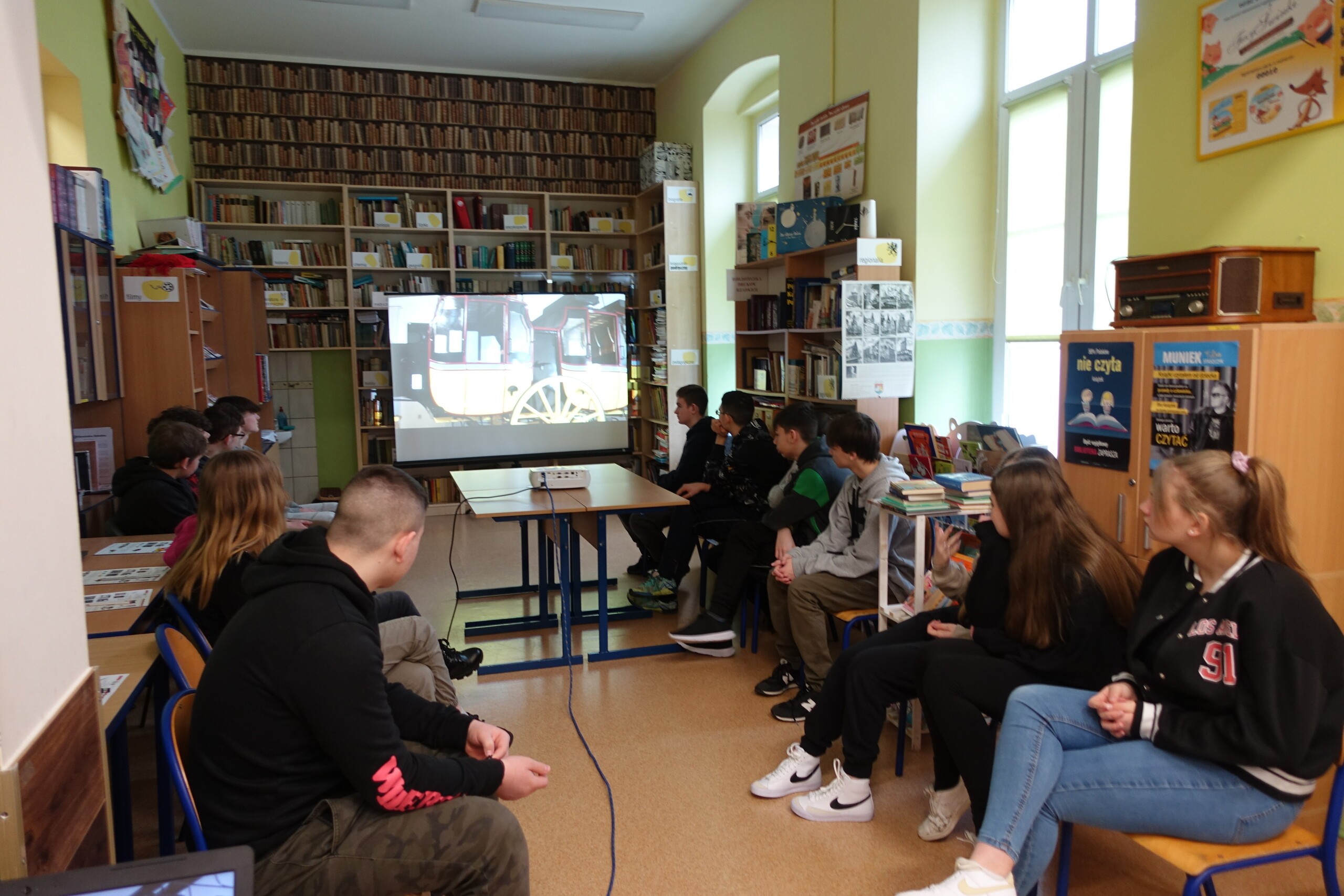 W czwartek, 2 marca 2023, klasa VIIIA po raz pierwszy miała okazję wziąć udział w zajęciach bibliotecznych w wyremontowanym wnętrzu Mediateki Biblioteki Szkolnej w Wicku. Głównym celem zajęć było zdobycie przez naszą młodzież wiedzy z historii poczty oraz poznanie wiadomości na temat przekazywania informacji na odległość w wiekach ubiegłych.