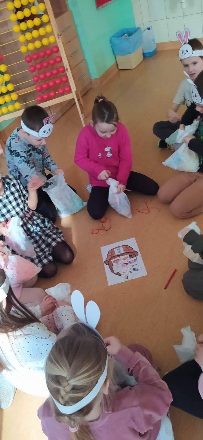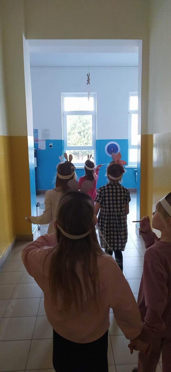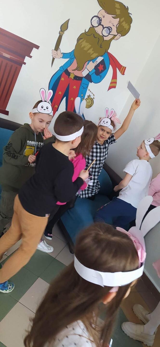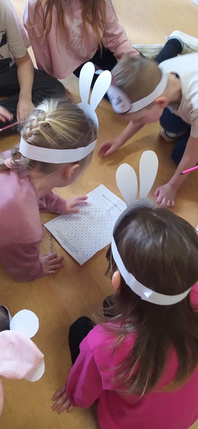 Pierwszaki w ostatni dzień przed świętami stanęły przed ciekawym zadaniem. Schował się przed nimi zajączek Gigi i ukrył świąteczne upominki. Dzieci musiały odwiedzić kilka miejsc w szkole i rozwiązać przygotowane zagadki, które na koniec doprowadziły ich do wielkanocnych upominków. Było mnóstwo emocji i radości.