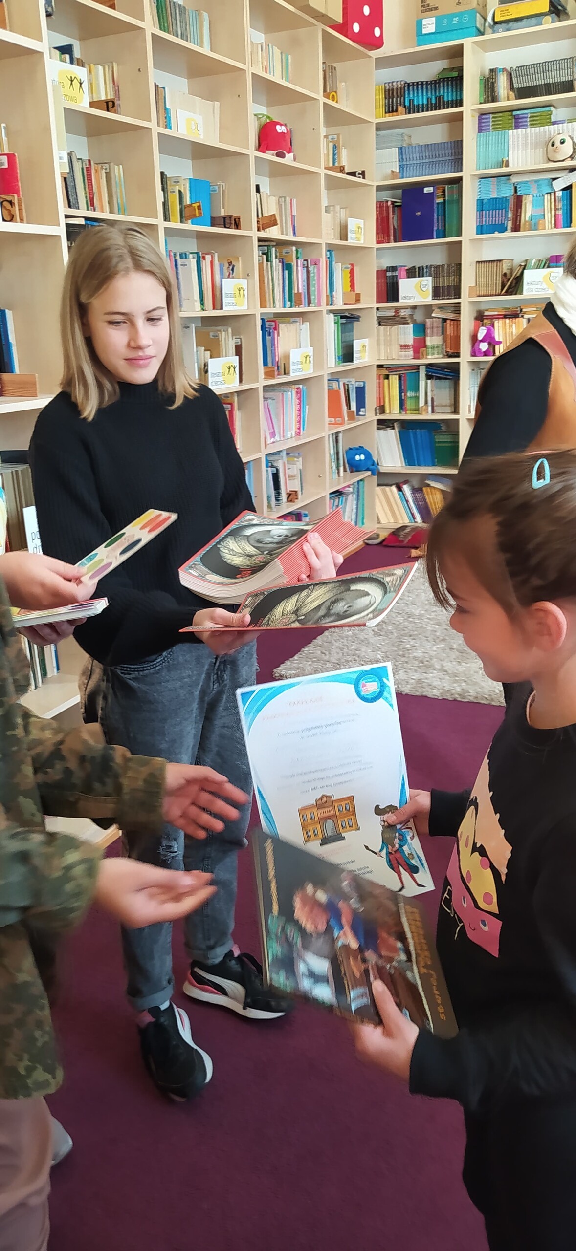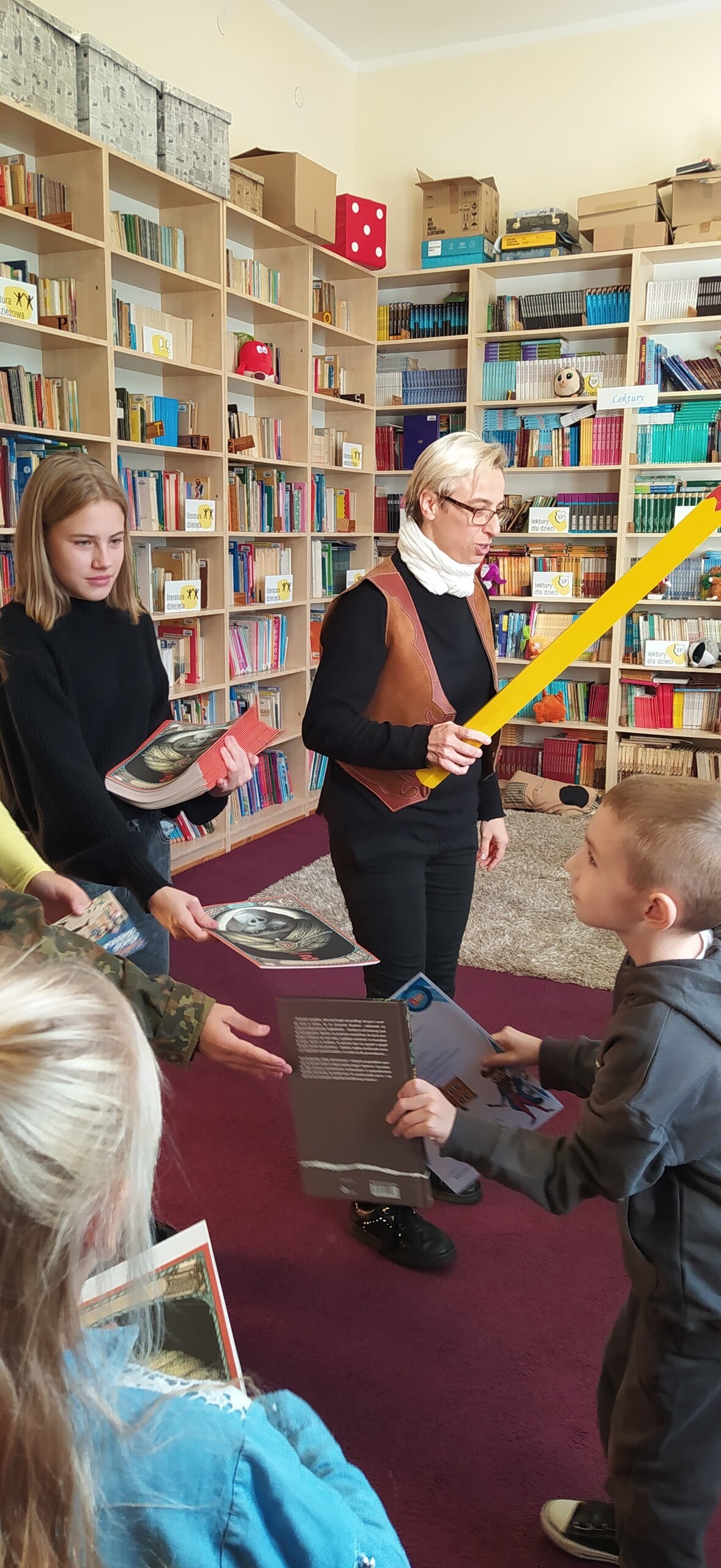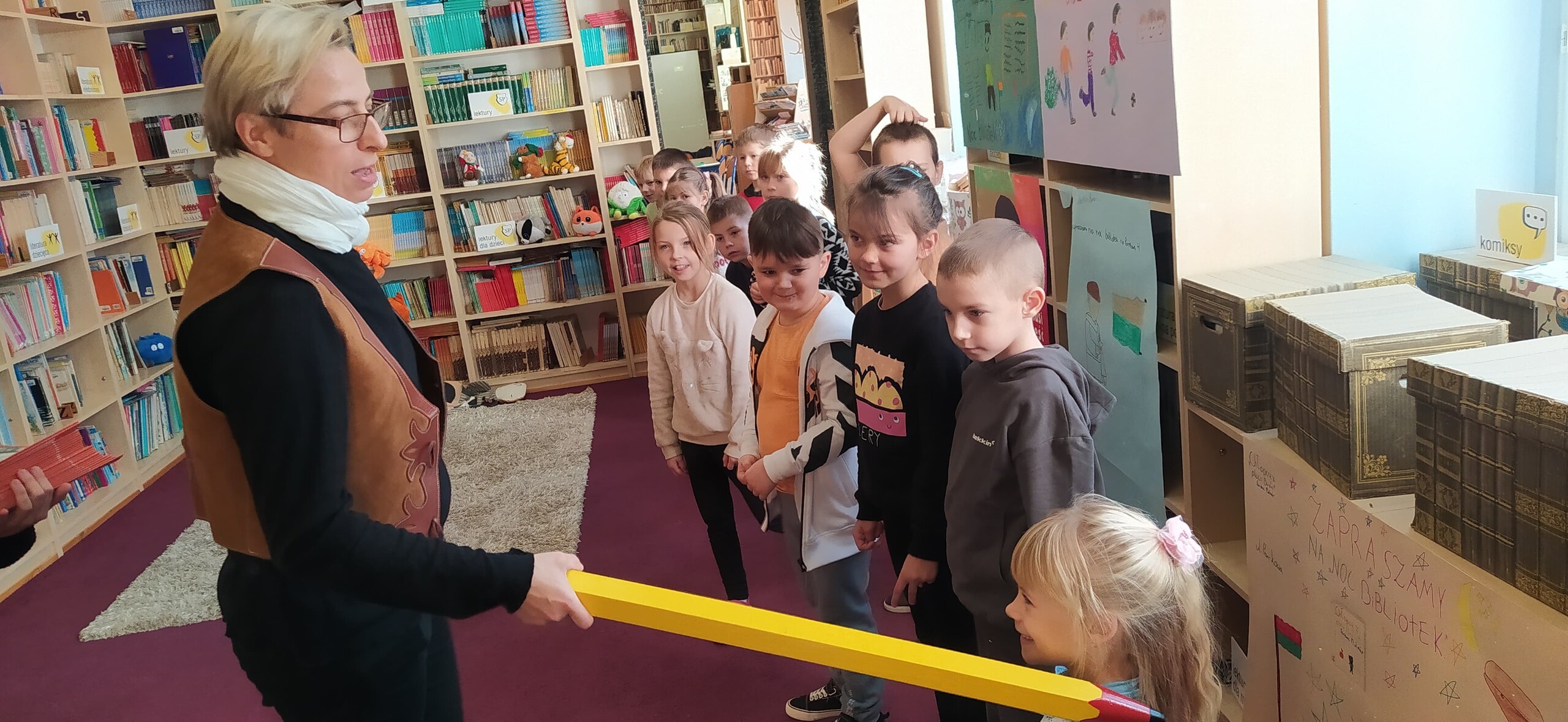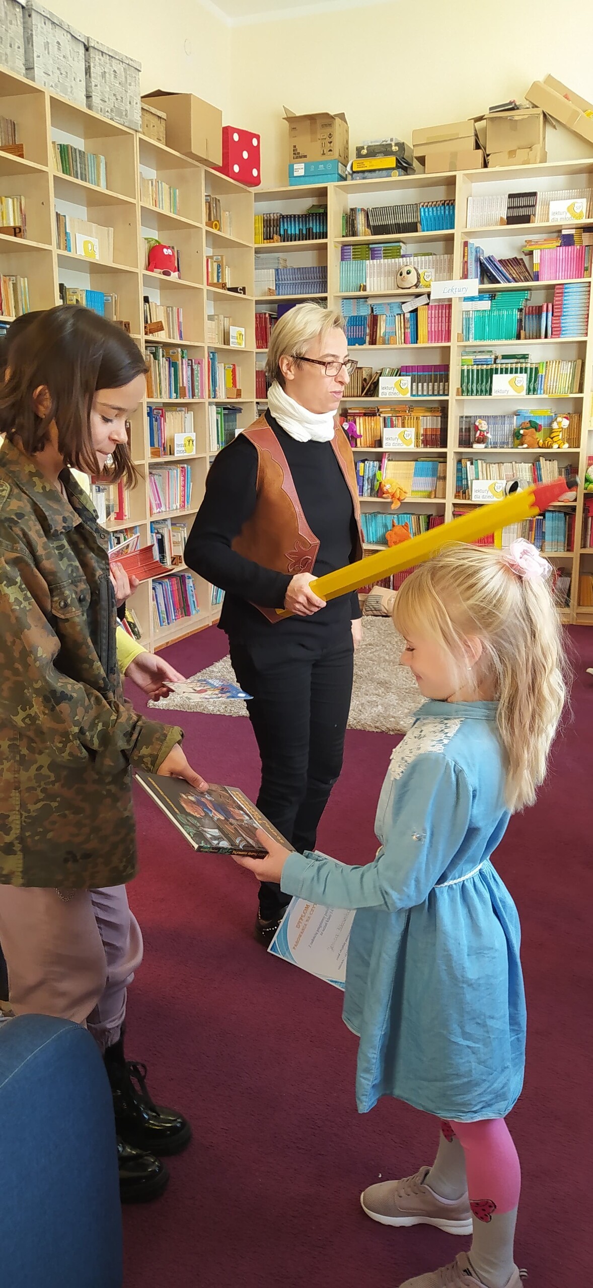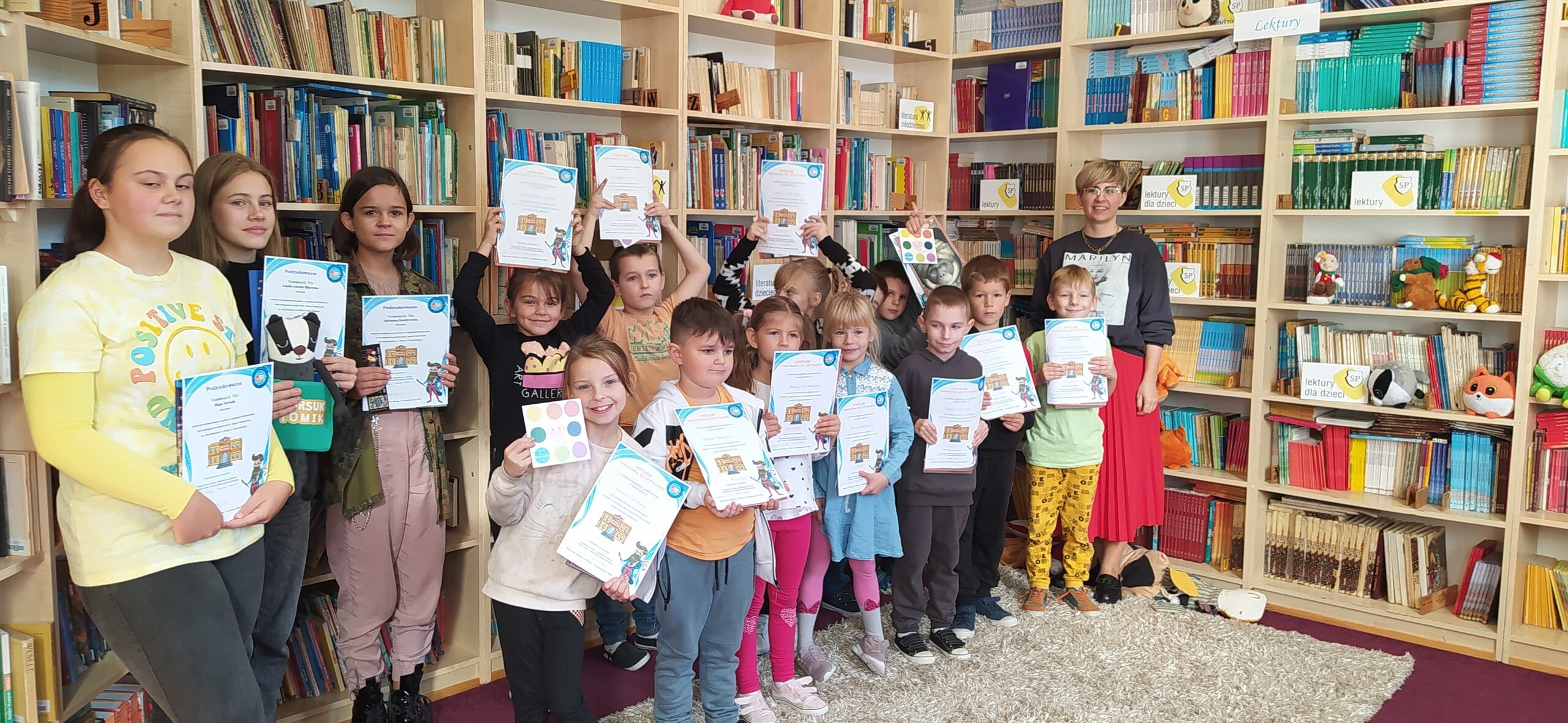 Pierwsze zajęcia biblioteczne dla kl. IA Szkoły Podstawowej im. Jana Brzechwy w Wicku zakończone zostały uroczystością pasowania dzieci na oficjalnych i pełnoprawnych czytelników szkolnej biblioteki. Na pamiątkę otrzymały one książki, dyplomy, foldery i zakładki do książek, a prowadzące zajęcia starsze uczennice komiksy fantasy dla nastolatków oraz dyplomy z podziękowaniami. Gorąco dziękujemy naszym fundatorom nagród: