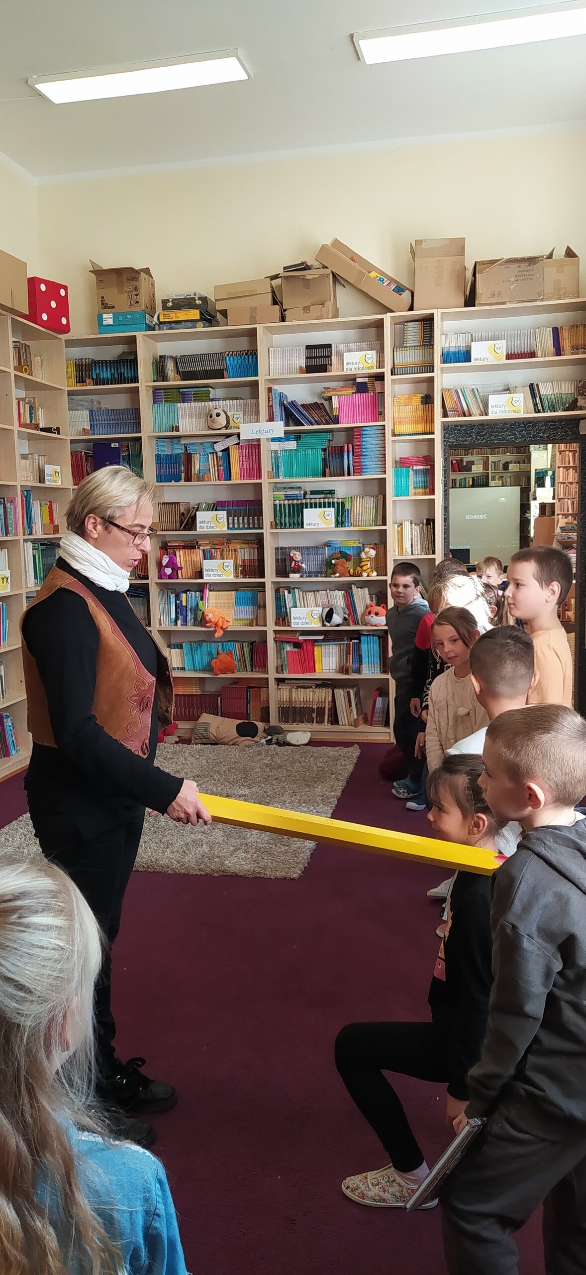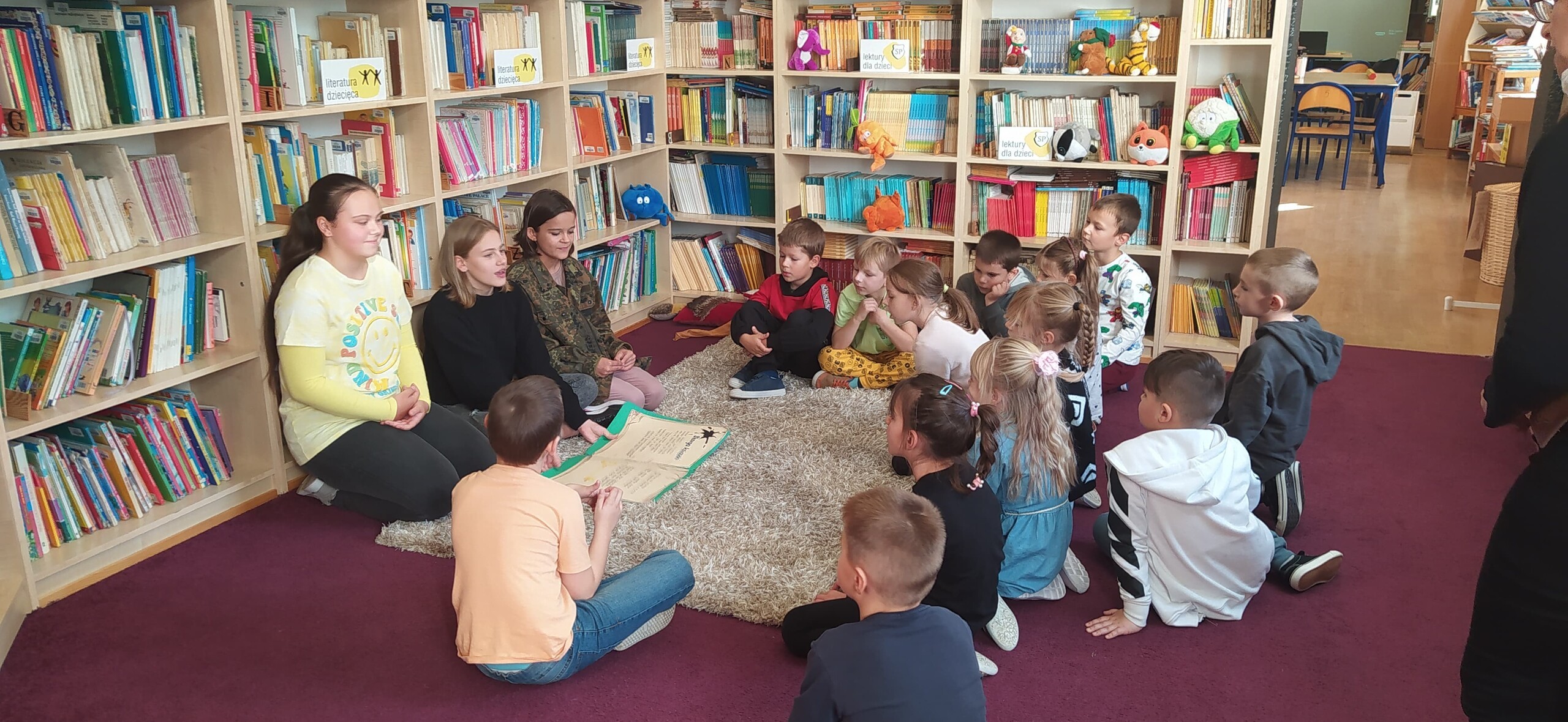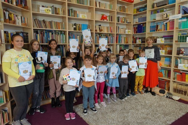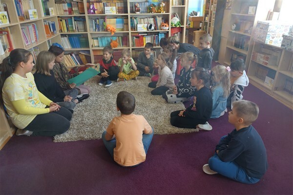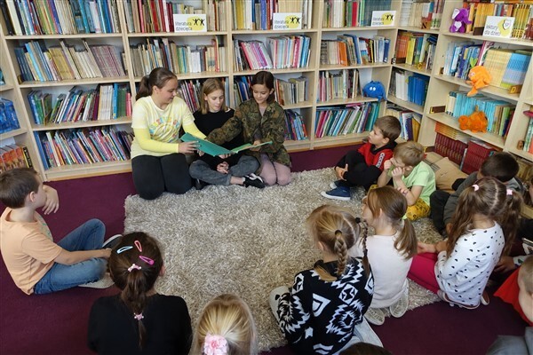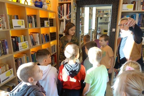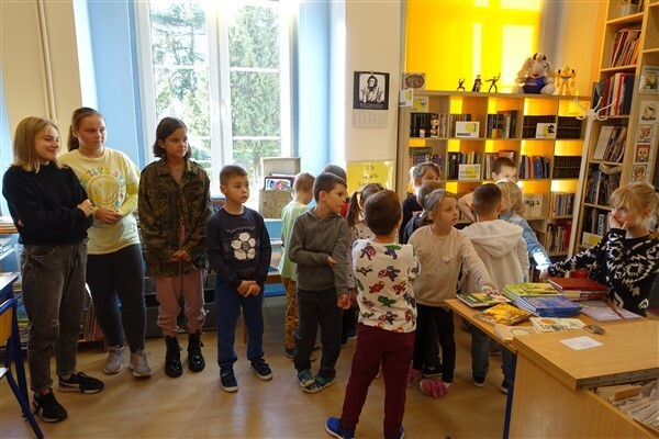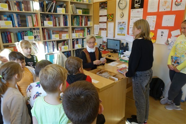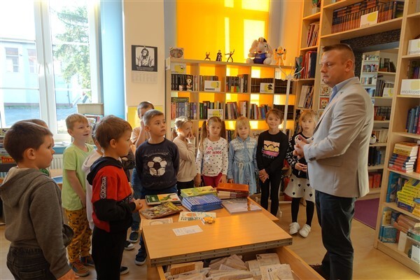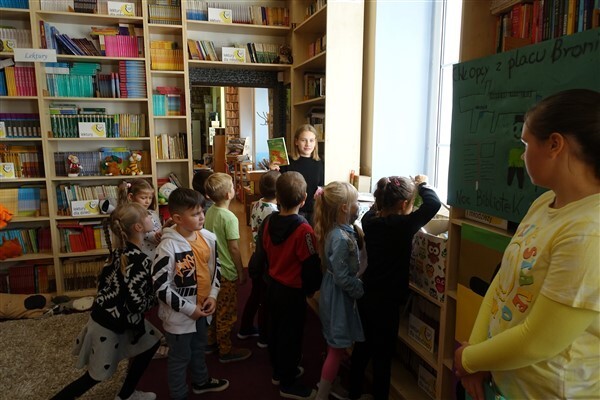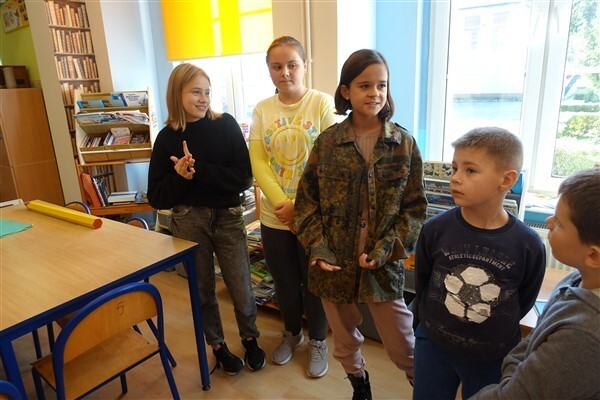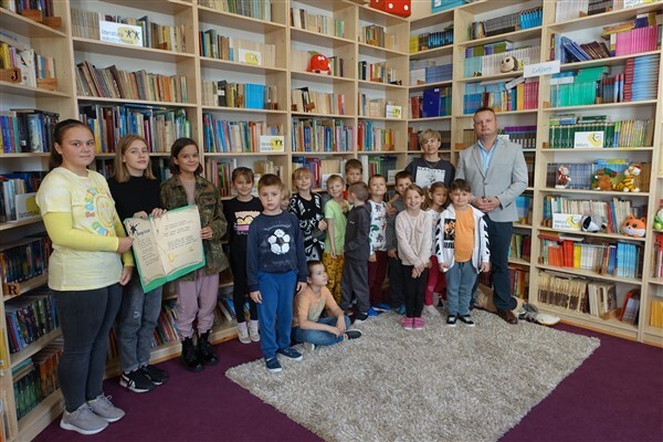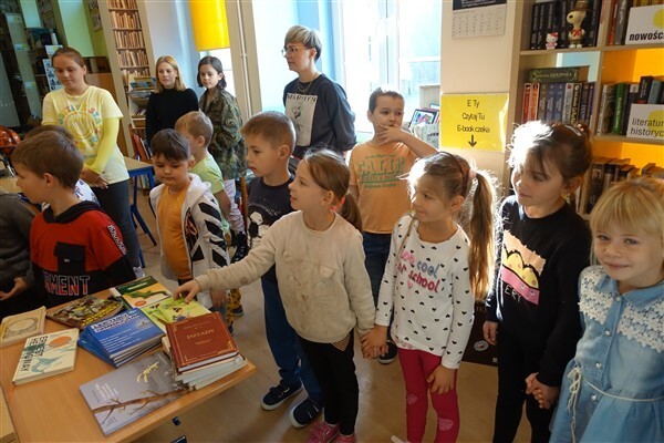 Sezon jesiennego czytania w pełni, więc w ramach Międzynarodowego Miesiąca Bibliotek Szkolnych w piątek, 7 października 2022, przygotowaliśmy dla naszych pierwszaków pierwszą biblioteczną uroczystość. Już tradycyjnie w październiku zapraszamy kl. I SP Wicko do wzięcia udziału w ich pierwszych zajęciach bibliotecznych, zakończonych uroczystym pasowaniem pierwszoklasistów na czytelników Biblioteki Szkolnej w Wicku. Tym razem pomocnikami w zajęciach czytelniczych dla najmłodszych uczniów były szóstoklasistki SP Wicko: Maja Szweda, Amelia Aurelia Bikowska i Adrianna Kozdrowska, które przygotowywały się do tych zajęć pod kierunkiem swojej wychowawczyni, Pani Doroty Halas. Dziewczyny wystąpiły w roli przewodników dzieci po świecie biblioteki. Pierwszaki w towarzystwie pluszowego borsuka Tomika zwiedzały wszystkie pomieszczenia biblioteczne i dowiadywały się, do czego służą te miejsca i co można w nich robić. Poznały zasady dobrego zachowania się w bibliotece, nauczyły się, jak prawidłowo samemu wypożyczyć książkę i które części księgozbioru są przeznaczone dla młodszych czytelników. Wysłuchały też „Skargi książki” – humorystycznego wiersza Jana Huszczy w wykonaniu naszych szóstoklasistek, a potem wypowiadały się, jak należy dbać o książki.
